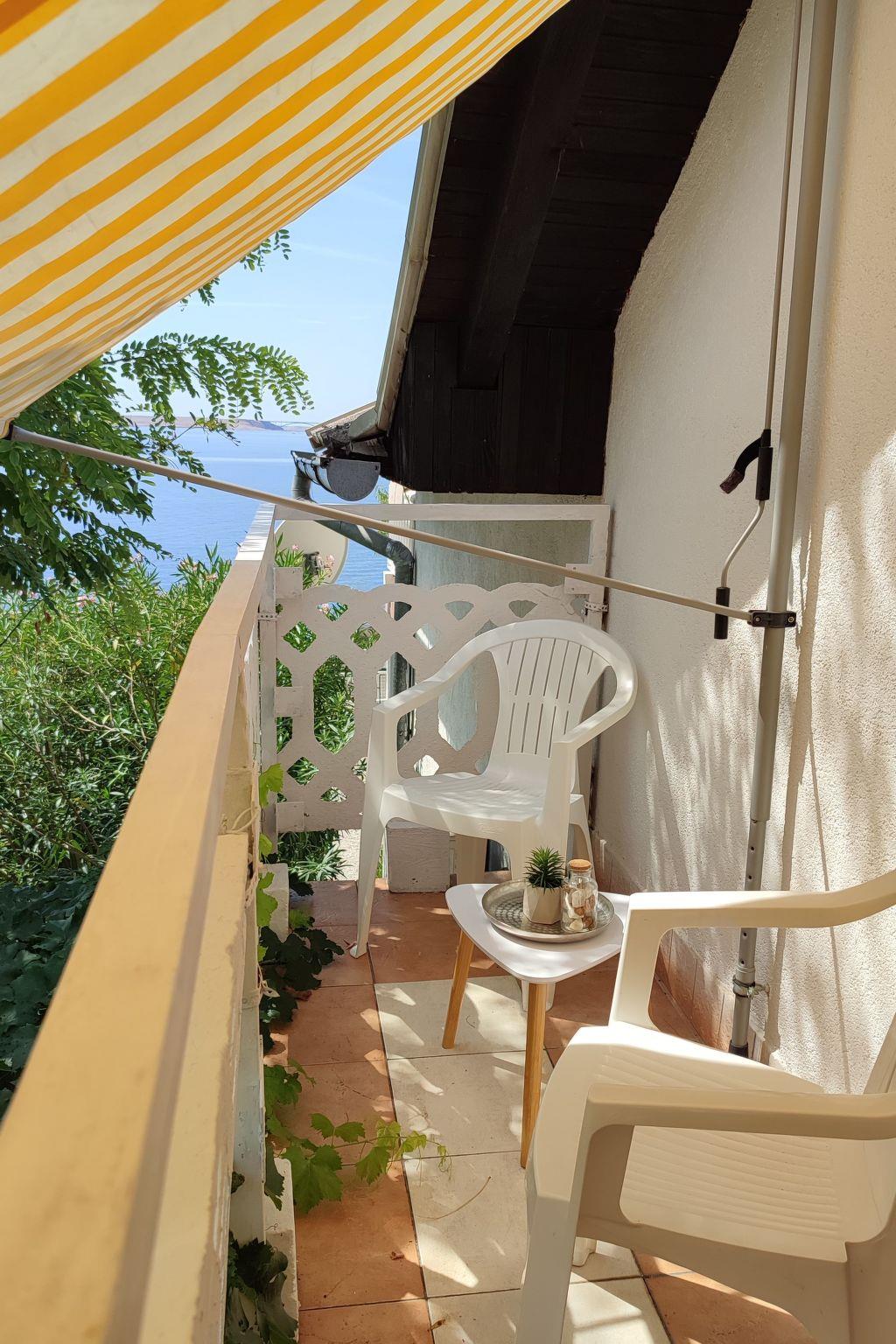 The interior of Apartment Beli 2 is full of comfort and style, with two spacious bedrooms - one with a large double bed, and the other with two box spring beds that can be connected. A large kitchen with a pull-out sofa offers a multifunctional space for daily relaxation, while a small living room with a sofa allows you to relax in front of the TV. The bathroom is equipped with a shower and a washing machine, and your stay will be further enhanced by an exit to a small balcony and a large terrace with deck chairs and a mesmerizing view of the sea and the island of Pag.