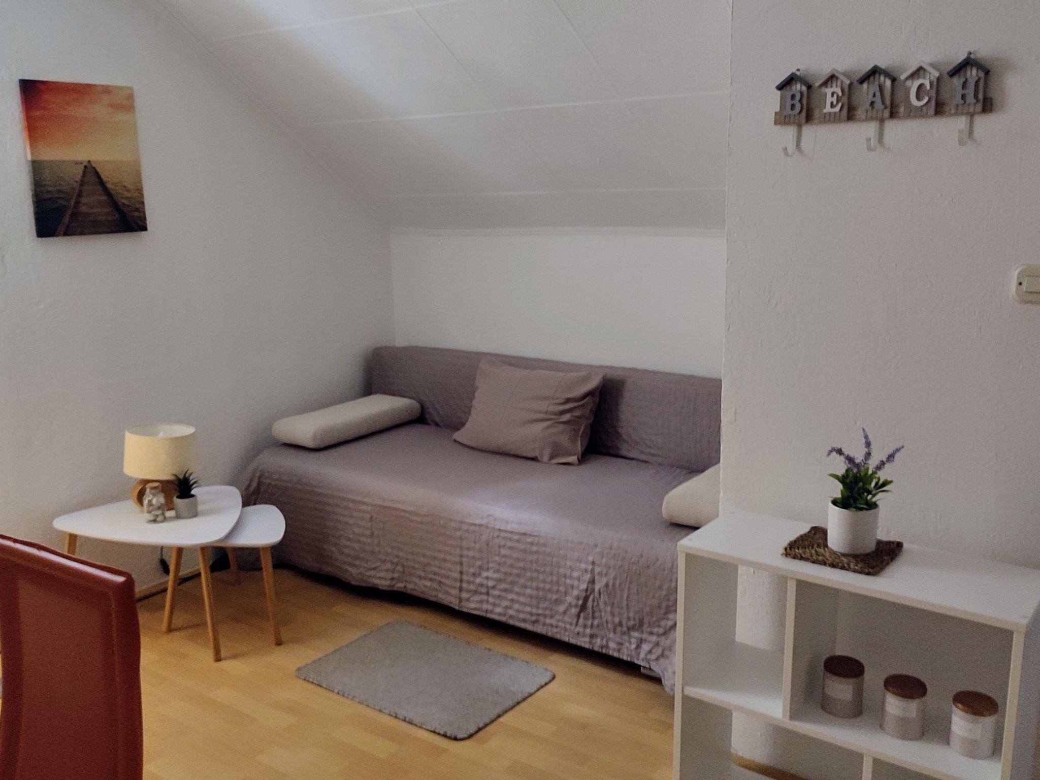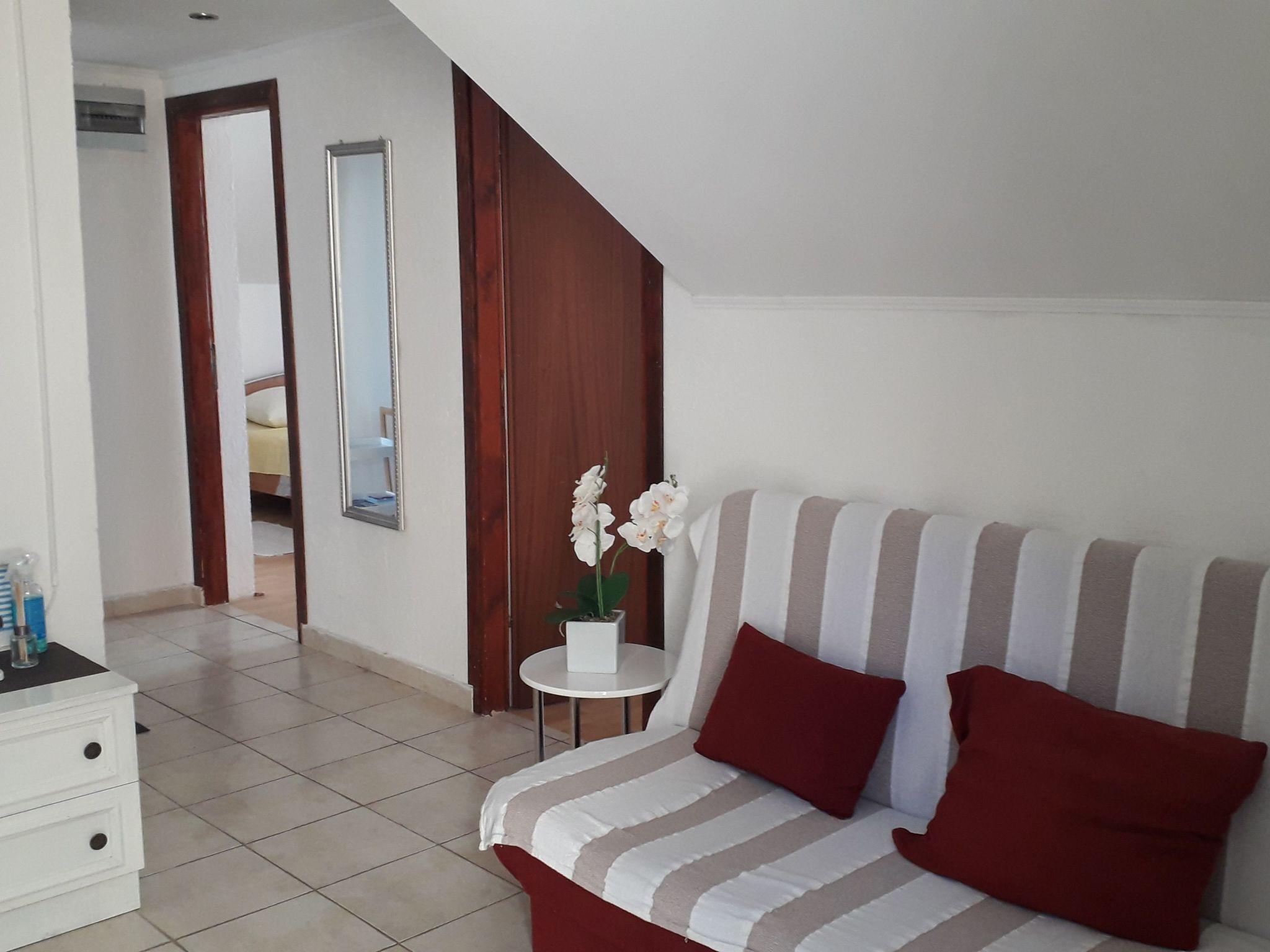 Outside the apartment, a fenced yard with free parking offers security for your car, while the beach, located just 20 meters across the road, makes for a perfect getaway at any time of the day. For those who prefer to explore, there are several small beaches and a beach bar nearby, and the house also has an outdoor barbecue for unforgettable evenings under the starry sky.