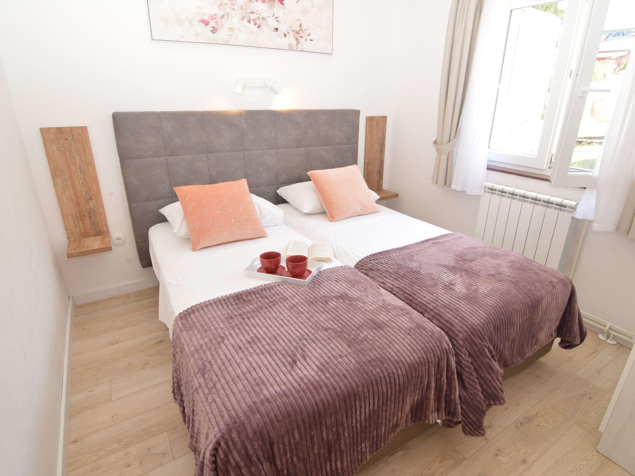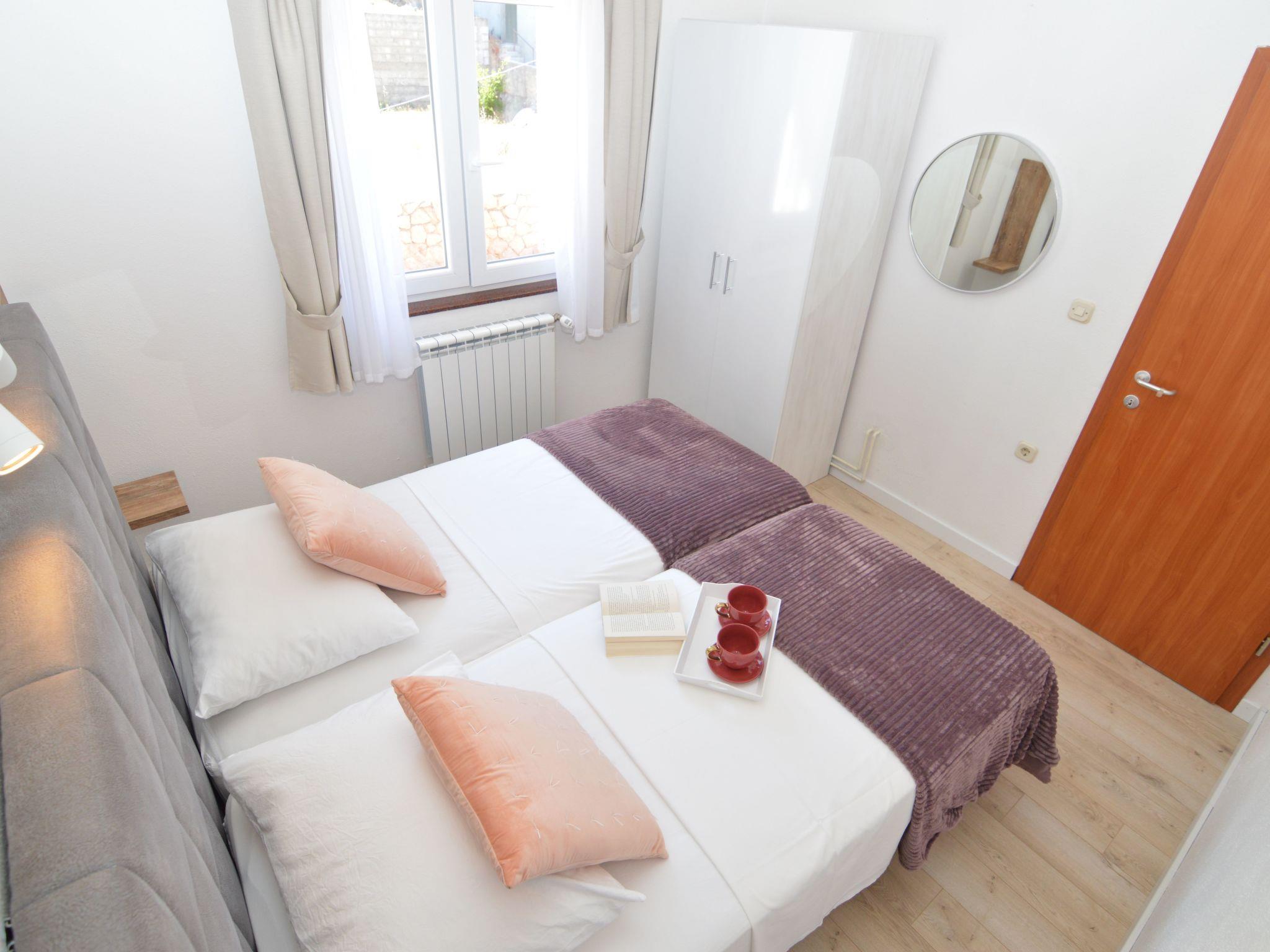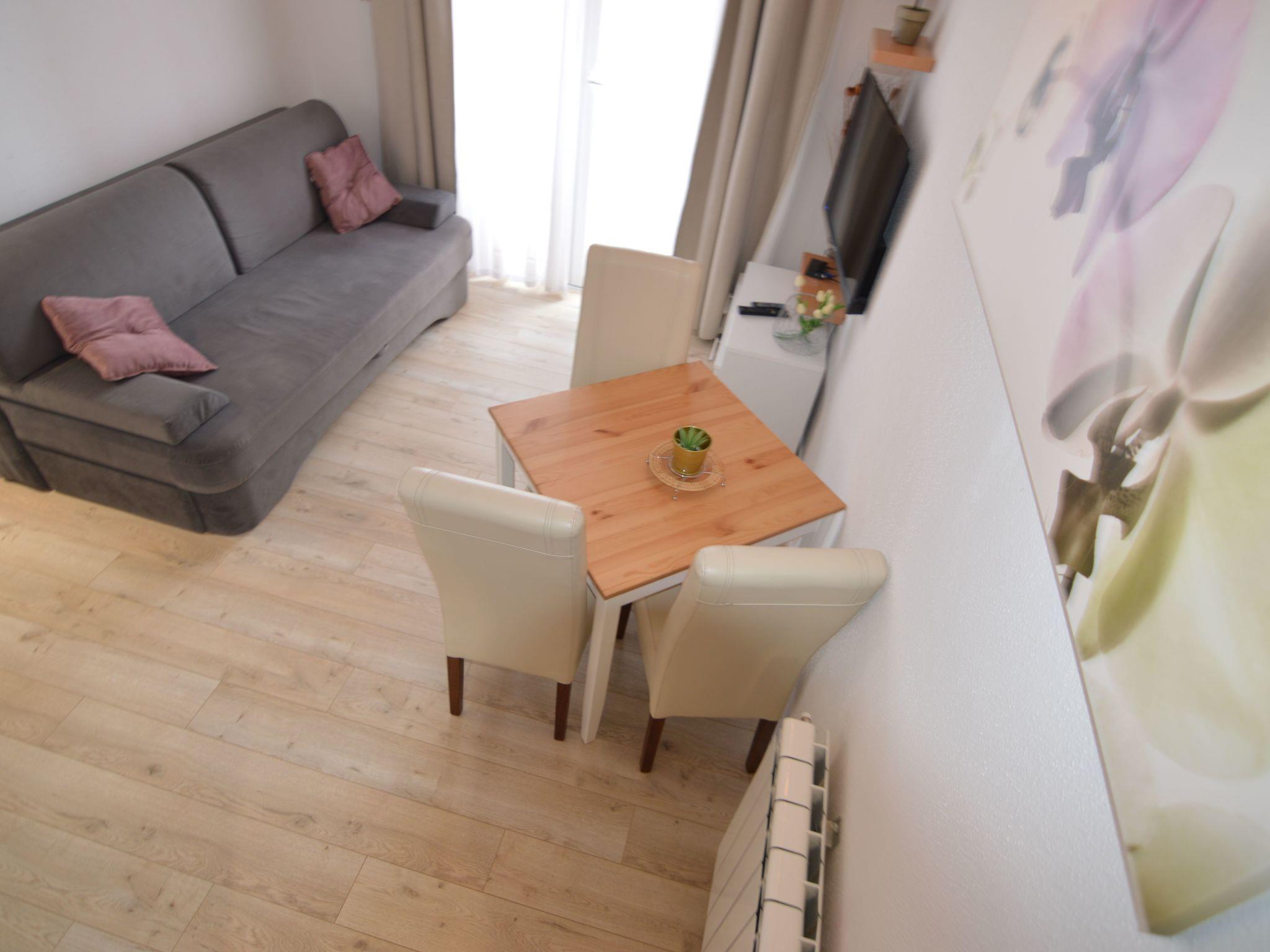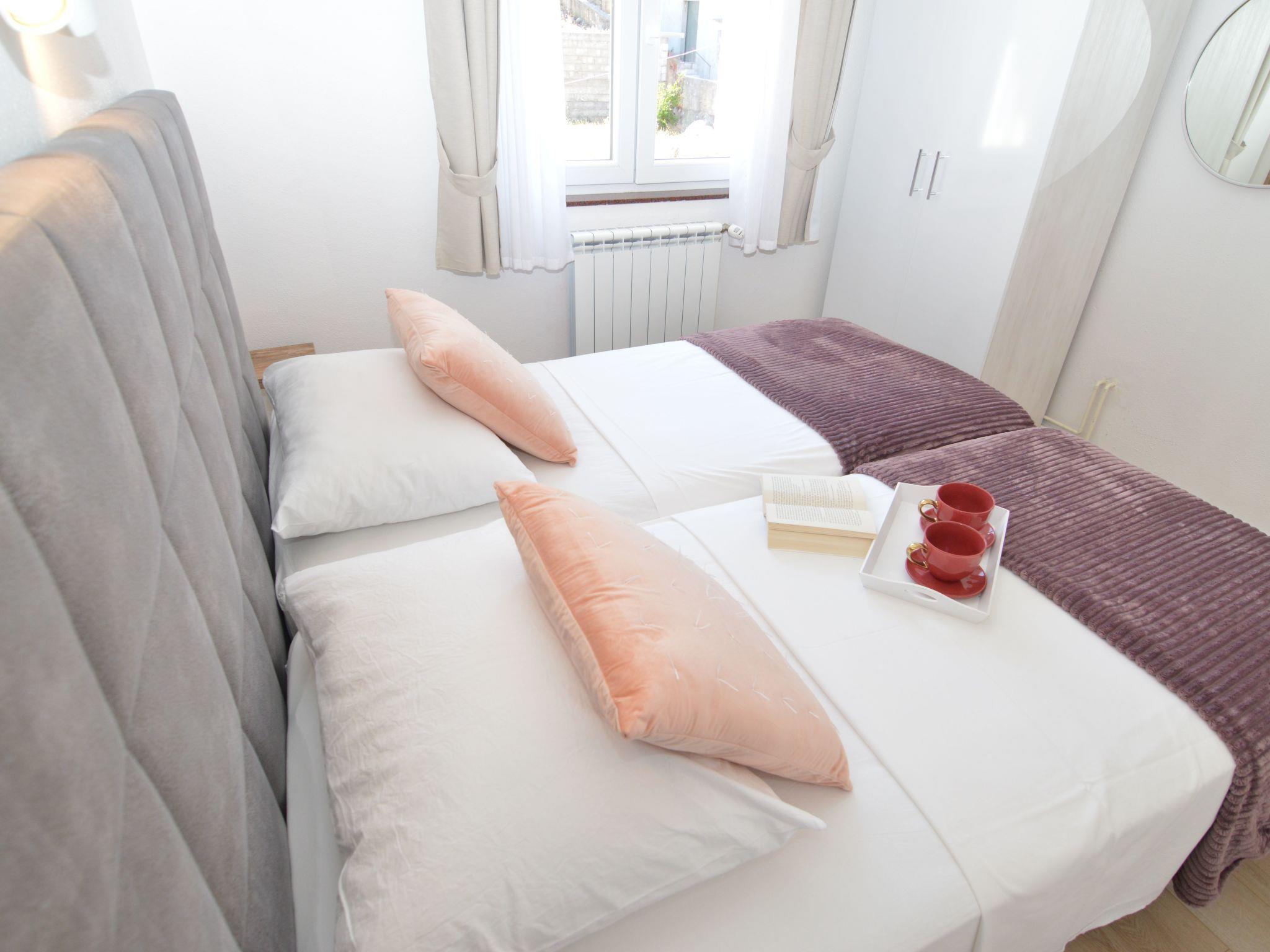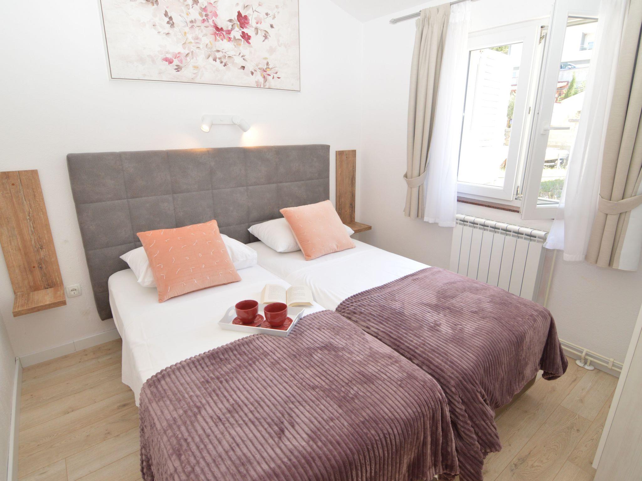This apartment is located on the northern outskirts of Starigrad, just 200 meters from the sea, on the third floor a building with other apartments. The bedroom has two single beds and a cupboard for storage space. This room also has satellite TV (Astra and Hotbird) and a dining table. The kitchen is equipped with all the essentials for self-caterers. It includes a fridge, two hotplates, a coffee machine, a dishwasher, and plates. There is a bathroom with a shower. Enjoy many pleasant hours on the balcony with a side partial sea view. Of course balcony furniture is provided. One šparking spot is available. Air conditioning is available, the unit is in the living room. There is also a hair dryer, safe for you.