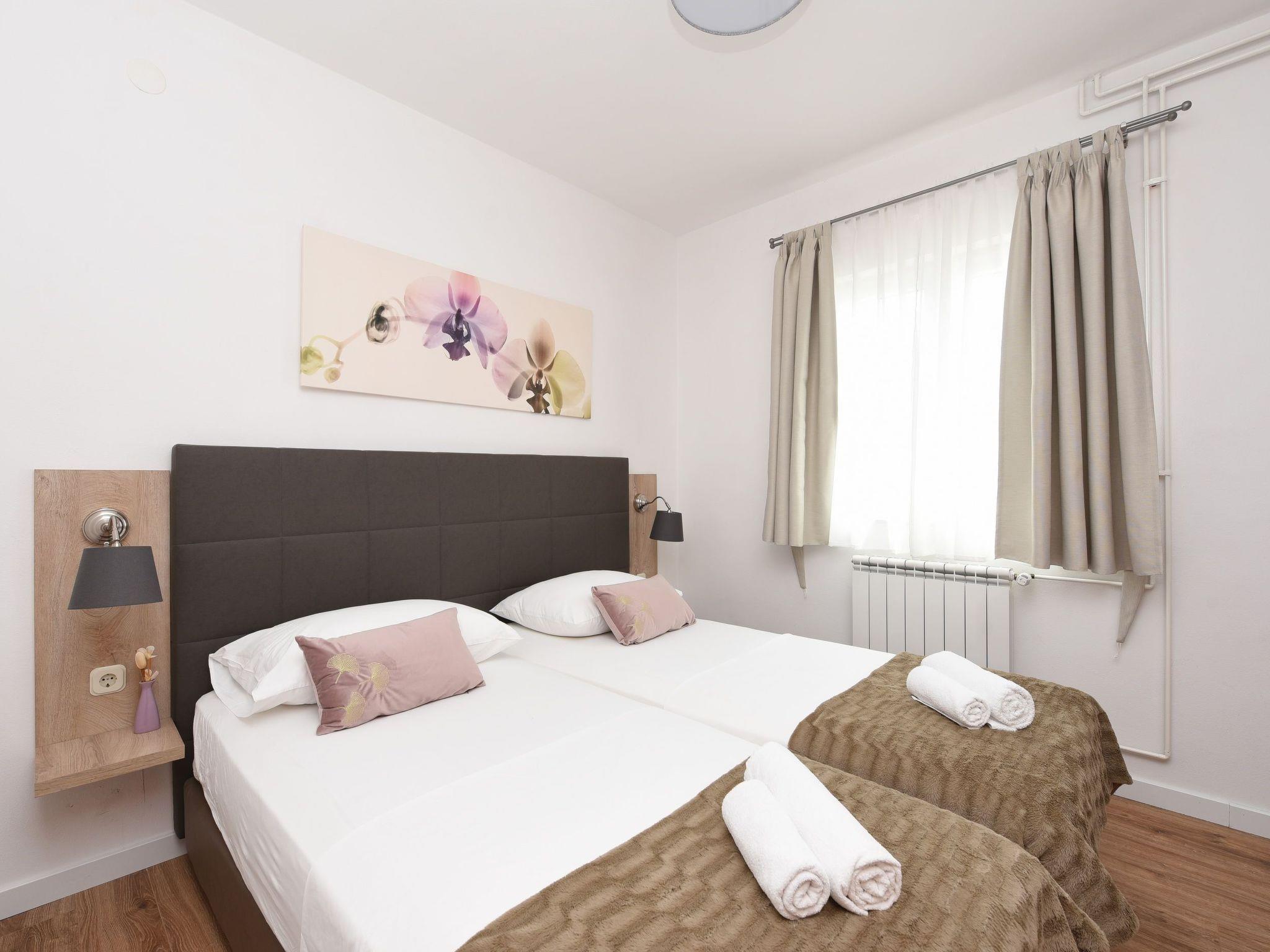 The 65m² apartment can accommodate four adults comfortably. The two bedrooms are each furnished with two single beds (90 x 200cm) that can also be pushed together as a double bed. Cupboards provide ample storage space. Satellite TV (Astra and Hotbird) and a dining table are also provided in the living room-kitchen, which is equipped with all the essentials for self-catering, including a fridge, a two-ring hob, a coffee machine, dishwasher, plates and crockery. There is also two bathrooms with a shower. Enjoy many pleasant hours on the balcony with a sea view. Balcony furniture is provided. One parking spot is available. The apartment is on the second floor you must climb the stairs. Air conditioning is in the living room. The living room and one bedroom have an exit to the balcony with a beautiful sea view.