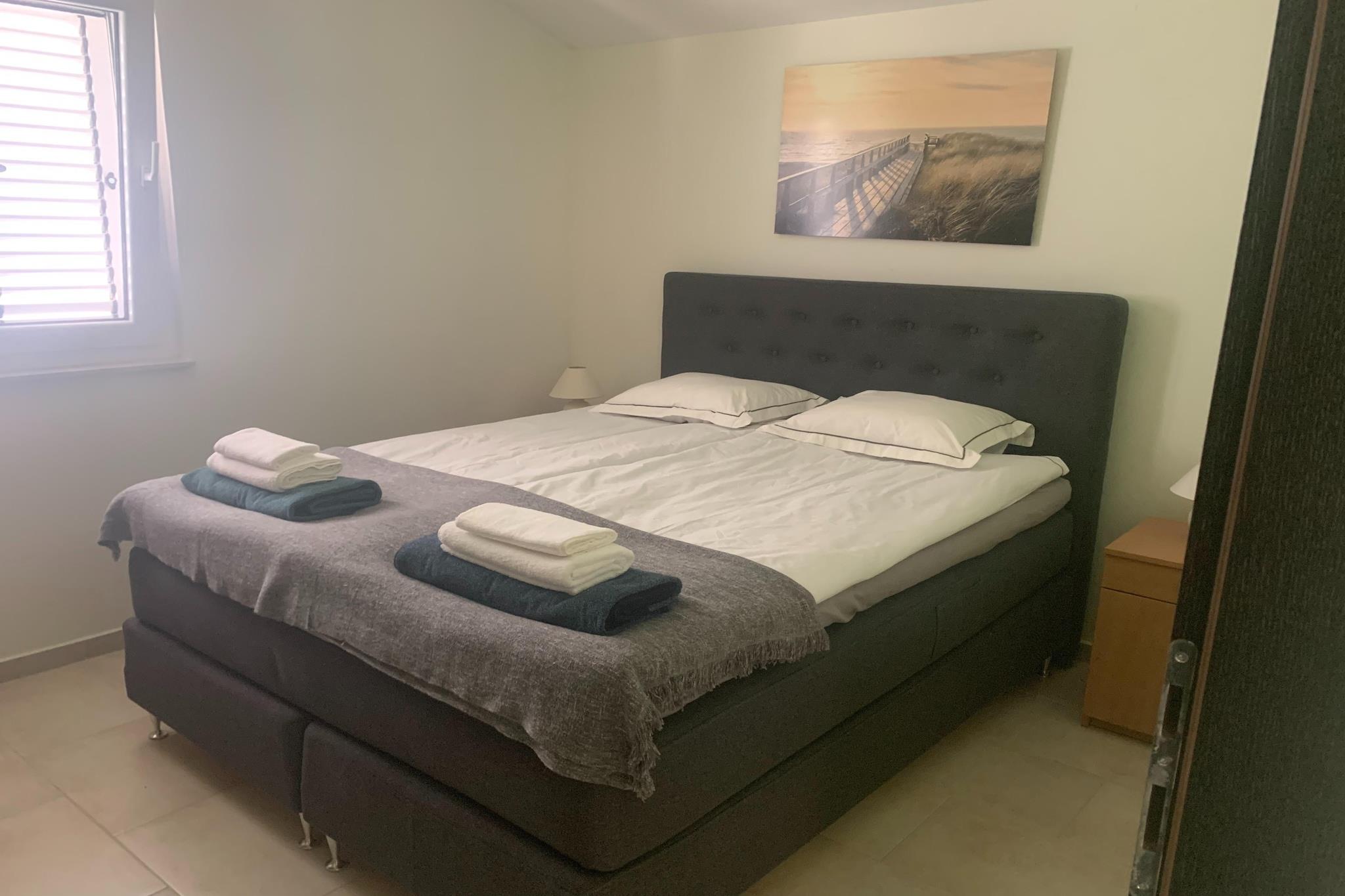 Denne komfortable lejlighed ligger på 2. sal i en fredelig bolig i Dalmatien og tilbyder alt, hvad du behøver for en afslappende kystferie. Ejendommen har en bekvem beliggenhed nær Adriaterhavskysten med nem adgang til lokale butikker, restauranter og smukke naturomgivelser, herunder Paklenica Nationalpark. Indenfor finder du en lys opholds- og spisestue med fladskærms-tv, en sovesofa til én person og et spisebord. Det moderne køkken er fuldt udstyret med elkedel, brødrister, komfur, kaffemaskine, mikrobølgeovn, opvaskemaskine og køleskab med fryser, hvilket gør det nemt at tilberede dine yndlingsmåltider. Soveværelset har en hyggelig dobbeltseng, mens badeværelset har bruser, håndvask og toilet. Gæsterne kan slappe af på den private balkon eller nyde den fælles terrasse og have, som er udstyret med havemøbler, liggestole og et loungesæt. Den fælles opvarmede swimmingpool er perfekt til en forfriskende dukkert, og der er også parkering på stedet for din bekvemmelighed. Aircondition sikrer komfort under hele dit ophold, hvilket gør denne lejlighed til et ideelt valg til en fredelig ferie i solrige Starigrad.