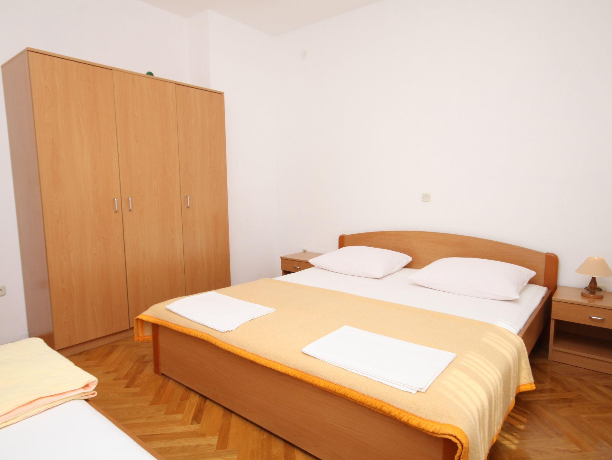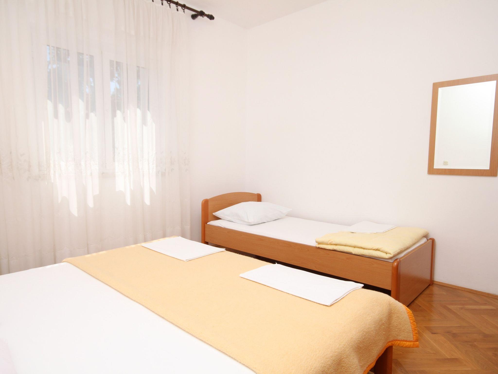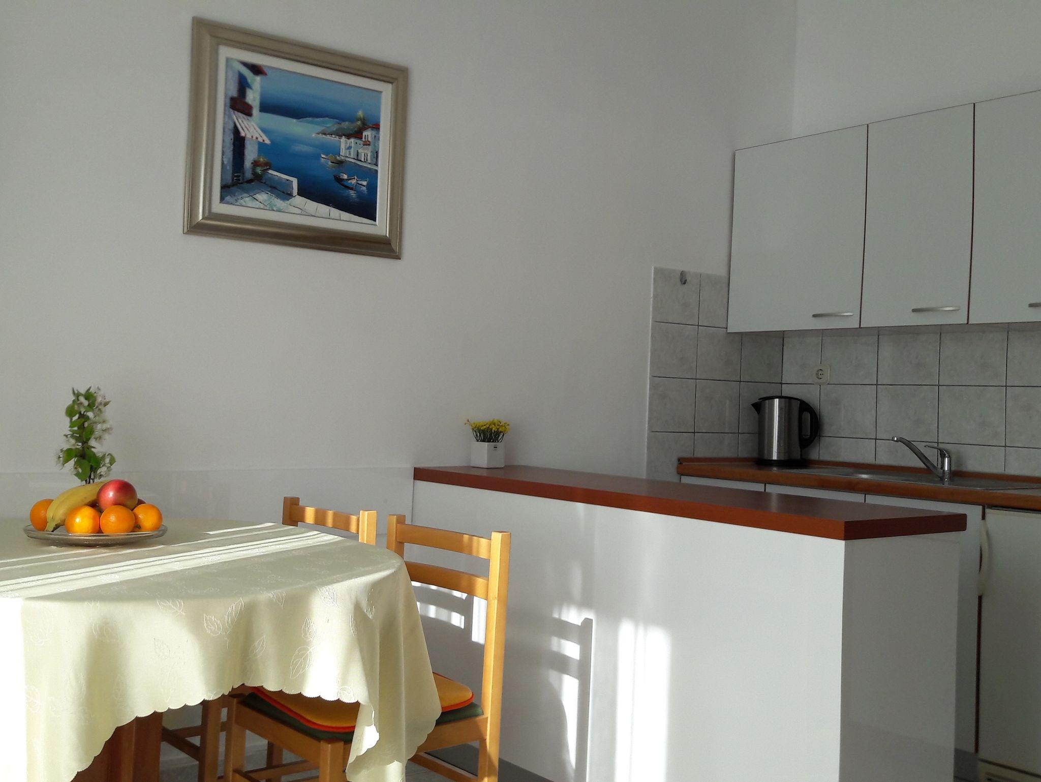 Ferienwohnung bietet Platz für 4 Gäste. Die Betten sind in Schlafzimmern, die es 1 gibt, und in Wohnzimmer, innerhalb einer Gesamtfläche von 35m2, angeordnet. Die Gäste haben einen eigenen Balkon zur Verfügung, auf der sie in warmen Sommernächten genießen können. Das Apartment bietet Meerblick. Es ist erlaubt, Speisen auf dem Gemeinschafts-Grill vorzubereiten. IM PREIS INBEGRIFFEN: Kurtaxe, Endreinigung, Parkplatz, Internet, Wäschewaschen, Bootsanlegeplatz, Kinderbett. VERBINDLICHE ZUSÄTZLICHE KOSTEN: Aufzahlung für Kurzaufenthalte (prozentualer Zuschlag pro Nächtigungsanzahl: 30% - 1, 20% - 2, 10% - 3). Die Verfügbarkeit zusätzlicher Dienstleistungen in Ihrem reservierten Termin und die Preise derselben (falls nicht aufgeführt) müssen im Voraus überprüft werden. Zusätzliche Dienstleistungen die in der Zahlungsaufforderung nicht aufgeführt sind werden direkt beim Vermieter bezahlt, angenommen der Gast nutzt auch diese. Ermäßigung auf den Grundpreis: Gratistag 14=13 (bei einem Aufenthalt von 14 Tagen oder mehr erhalten Sie einen Gratistag für den Aufenthalt bis 31.12.26).