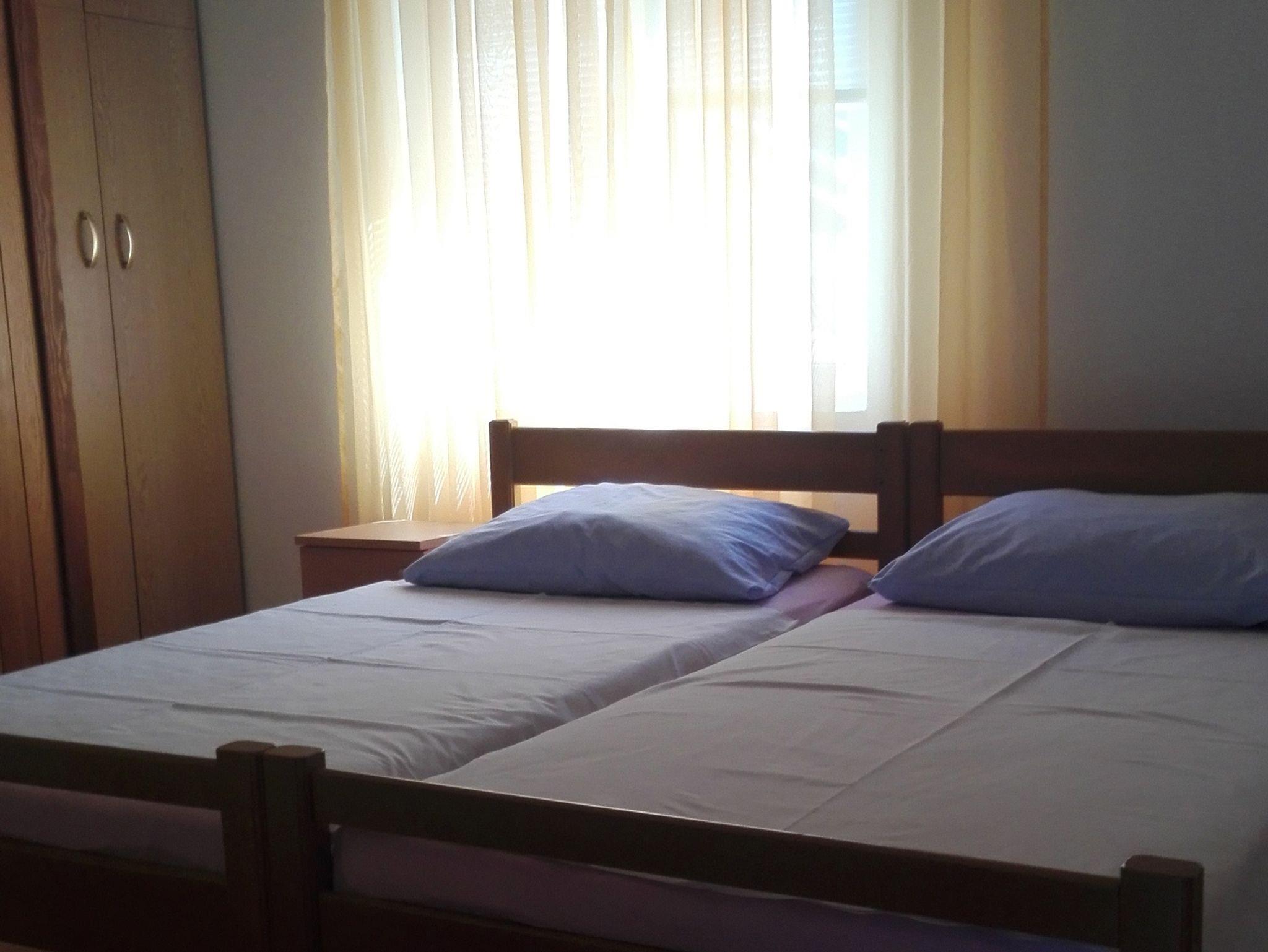 Ferienwohnung bietet Platz für 4 Gäste. Die Betten sind in Schlafzimmern, die es 2 gibt, innerhalb einer Gesamtfläche von 45m2, angeordnet. Die Gäste haben eine eigene Terrasse zur Verfügung, auf der sie in warmen Sommernächten genießen können. Es ist erlaubt, Speisen auf dem Gemeinschafts-Grill vorzubereiten. IM PREIS INBEGRIFFEN: Kurtaxe, Endreinigung, Klimatisierung, Parkplatz, Internet. VERBINDLICHE ZUSÄTZLICHE KOSTEN: Aufzahlung für Kurzaufenthalte (prozentualer Zuschlag pro Nächtigungsanzahl: 30% - 1, 20% - 2, 10% - 3). Die Verfügbarkeit zusätzlicher Dienstleistungen in Ihrem reservierten Termin und die Preise derselben (falls nicht aufgeführt) müssen im Voraus überprüft werden. Zusätzliche Dienstleistungen die in der Zahlungsaufforderung nicht aufgeführt sind werden direkt beim Vermieter bezahlt, angenommen der Gast nutzt auch diese. Ermäßigung auf den Grundpreis: Gratistag 14=13 (bei einem Aufenthalt von 14 Tagen oder mehr erhalten Sie einen Gratistag für den Aufenthalt bis 31.12.26).