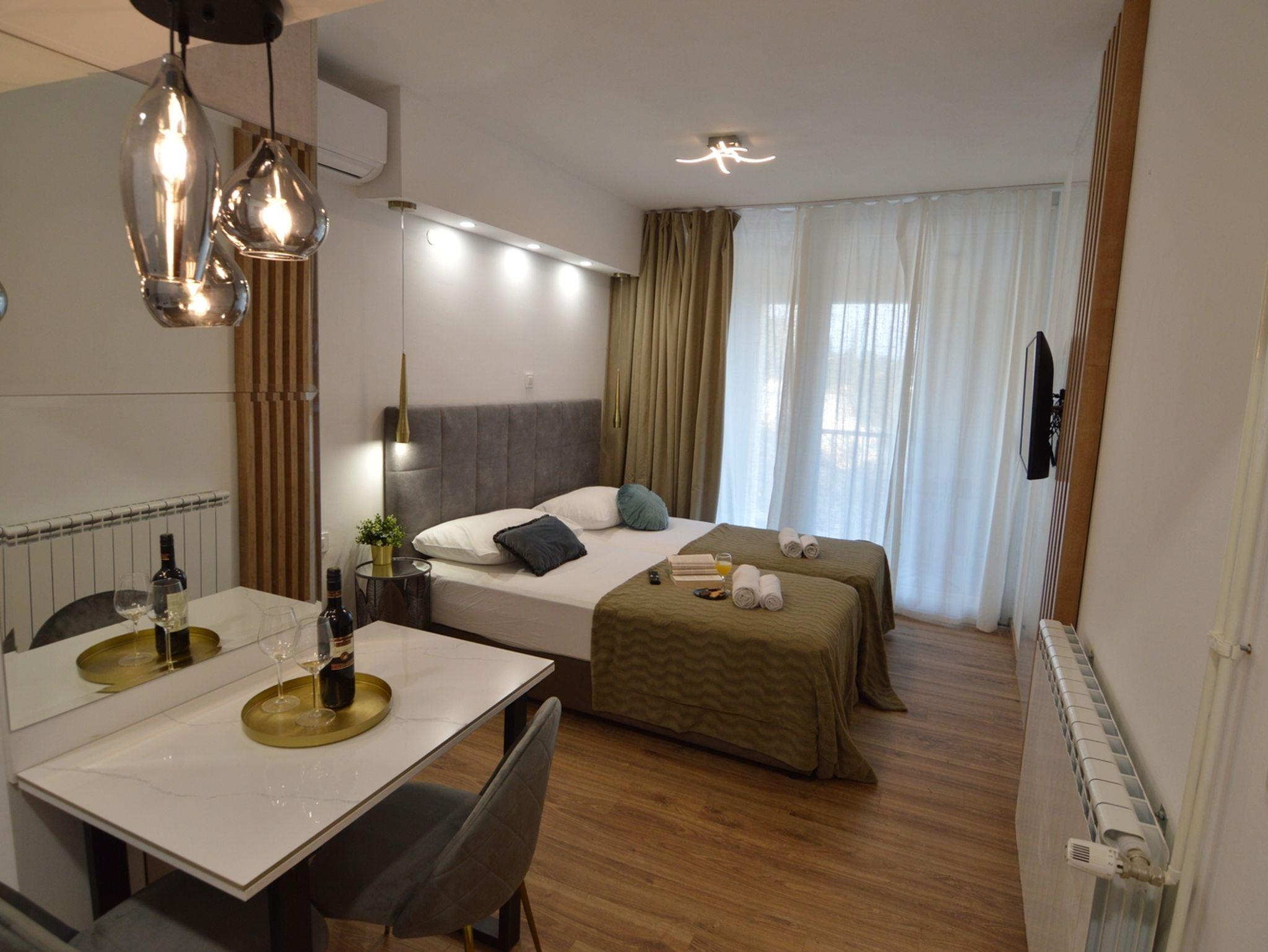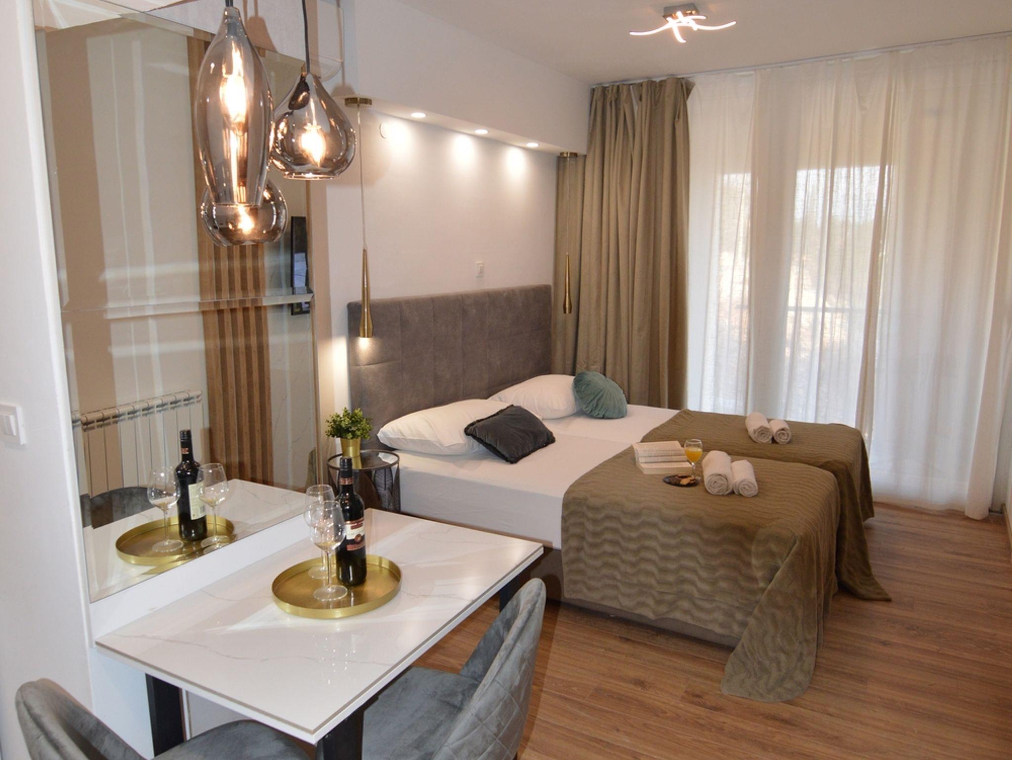 Studio bietet Platz für 2 Gäste. Die Betten sind in Schlafzimmern, die es 1 gibt, innerhalb einer Gesamtfläche von 16m2, angeordnet. Die Gäste haben einen eigenen Balkon zur Verfügung, auf der sie in warmen Sommernächten genießen können. In der gebuchten Unterkunftseinheit zahlt man am Ort ein Depositum ( der Preis ist an der Internetseite angeführt ). IM PREIS INBEGRIFFEN: Kurtaxe, Endreinigung, Klimatisierung, Zentralheizung, Parkplatz, Internet, Kinderbett, Bügeleisen, Föhn. VERBINDLICHE ZUSÄTZLICHE KOSTEN: Kaution (200,00 € Einmalzahlung), Aufzahlung für Kurzaufenthalte (prozentualer Zuschlag pro Nächtigungsanzahl: 30% - 1, 20% - 2, 10% - 3). Die Verfügbarkeit zusätzlicher Dienstleistungen in Ihrem reservierten Termin und die Preise derselben (falls nicht aufgeführt) müssen im Voraus überprüft werden. Zusätzliche Dienstleistungen die in der Zahlungsaufforderung nicht aufgeführt sind werden direkt beim Vermieter bezahlt, angenommen der Gast nutzt auch diese.