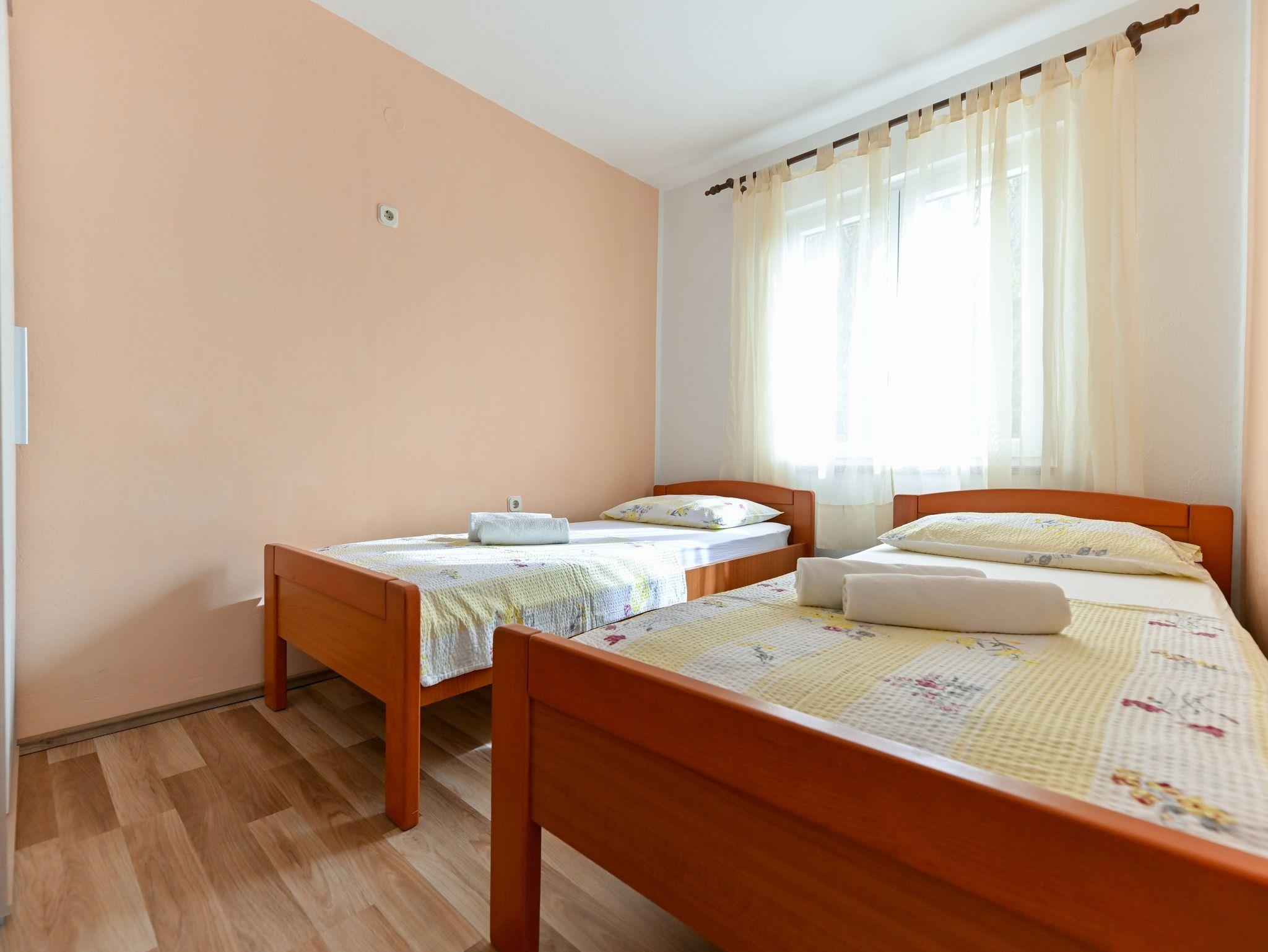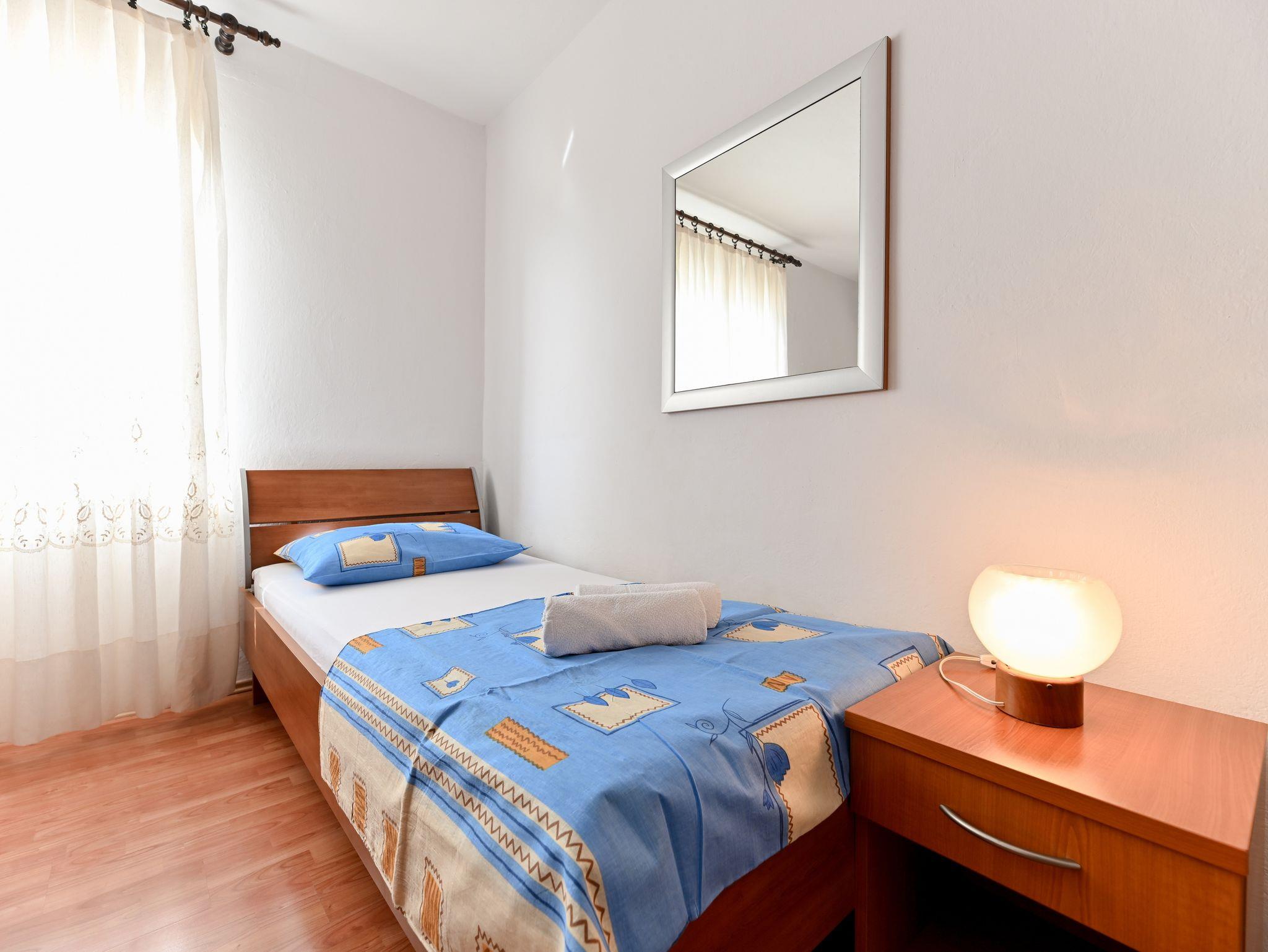 Ferienwohnung bietet Platz für 7 Gäste. Die Betten sind in Schlafzimmern, die es 2 gibt, und in Wohnzimmer, innerhalb einer Gesamtfläche von 69m2, angeordnet. Die Gäste haben eine eigene Terrasse zur Verfügung, auf der sie in warmen Sommernächten genießen können. Das Apartment bietet Meerblick. Für vollen Genuss und Entspannung gibt es einen privaten Grill für Gäste dieser Unterkunft. In der Unterkunftseinheit besteht die Möglichkeit des Mitbringens von Haustieren gegen Aufpreis. IM PREIS INBEGRIFFEN: Kurtaxe, Endreinigung, Klimatisierung, Parkplatz, Internet, Bügeleisen, Bügelbrett, Föhn, Sonnenschirm. VERBINDLICHE ZUSÄTZLICHE KOSTEN: Aufzahlung für Kurzaufenthalte (prozentualer Zuschlag pro Nächtigungsanzahl: 30% - 1, 20% - 2, 10% - 3). UNVERBINDLICHE ZUSÄTZLICHE KOSTEN: Haustiere (8,00 € pro Nacht). Die Verfügbarkeit zusätzlicher Dienstleistungen in Ihrem reservierten Termin und die Preise derselben (falls nicht aufgeführt) müssen im Voraus überprüft werden. Zusätzliche Dienstleistungen die in der Zahlungsaufforderung nicht aufgeführt sind werden direkt beim Vermieter bezahlt, angenommen der Gast nutzt auch diese.