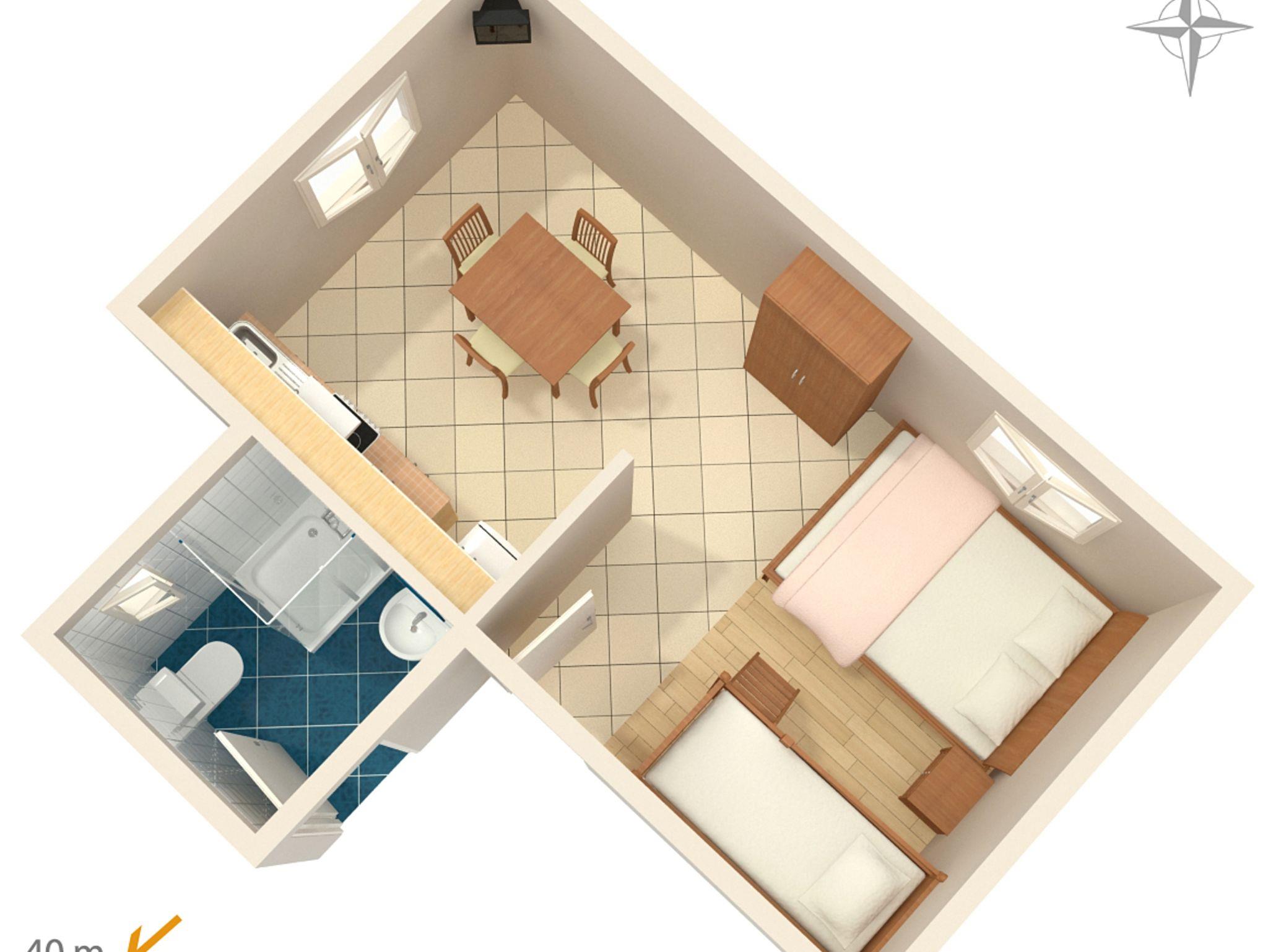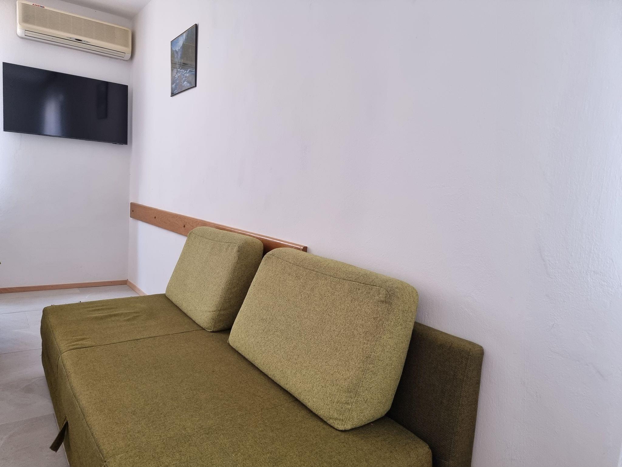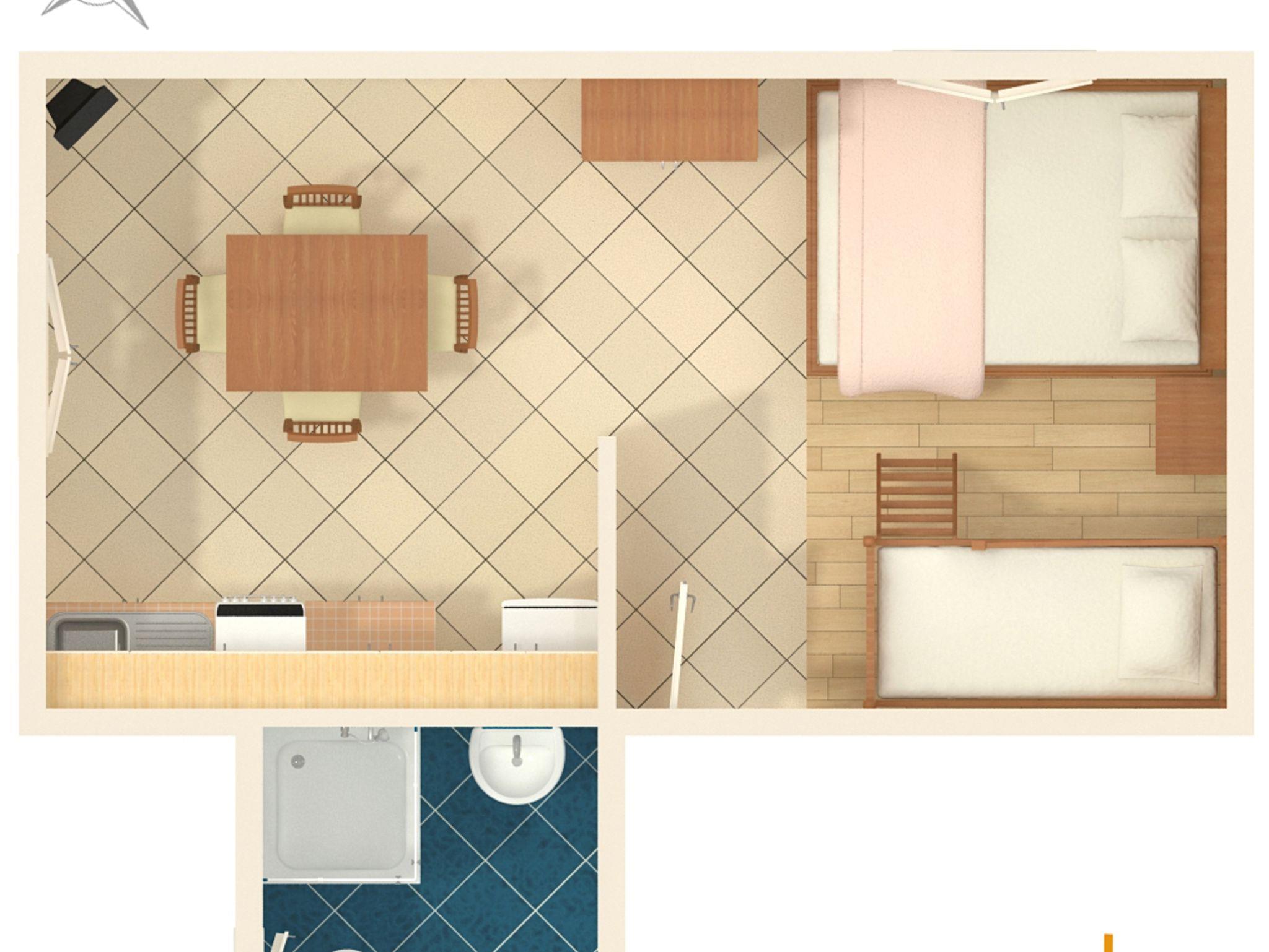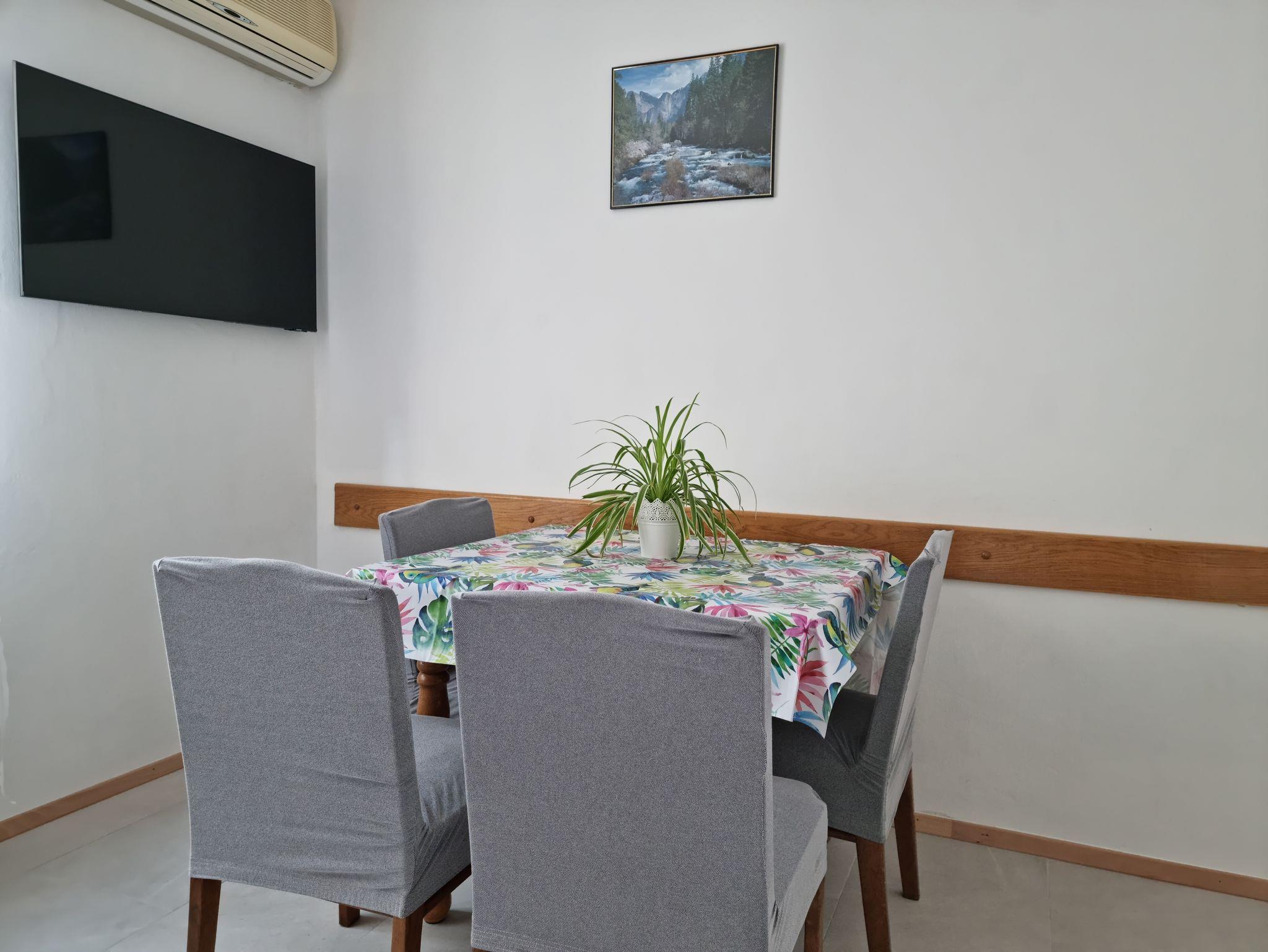 Studio bietet Platz für 4 Gäste. Die Betten sind in Schlafzimmern, die es 1 gibt, innerhalb einer Gesamtfläche von 25m2, angeordnet. Es ist erlaubt, Speisen auf dem Gemeinschafts-Grill vorzubereiten. Die reservierte Unterkunftseinheit hat keinen Balkon und keine Terrasse. Unterkunftseinheit hat Räume, die von dem Rest der Einheit abgetrennt werden. IM PREIS INBEGRIFFEN: Kurtaxe, Endreinigung, Klimatisierung, Parkplatz, Internet, Bügeleisen, Sonnenschirm. VERBINDLICHE ZUSÄTZLICHE KOSTEN: Aufzahlung für Kurzaufenthalte (prozentualer Zuschlag pro Nächtigungsanzahl: 30% - 1, 20% - 2, 10% - 3). UNVERBINDLICHE ZUSÄTZLICHE KOSTEN: Wäschewaschen (5,00 € Waschen), Zusatzbett (5,00 € pro Nacht). Die Verfügbarkeit zusätzlicher Dienstleistungen in Ihrem reservierten Termin und die Preise derselben (falls nicht aufgeführt) müssen im Voraus überprüft werden. Zusätzliche Dienstleistungen die in der Zahlungsaufforderung nicht aufgeführt sind werden direkt beim Vermieter bezahlt, angenommen der Gast nutzt auch diese. Ermäßigung auf den Grundpreis: Gratistag 21=19 (bei einem Aufenthalt von 21 Tagen oder mehr erhalten Sie 2 Gratistage für den Aufenthalt bis 31.12.26).
