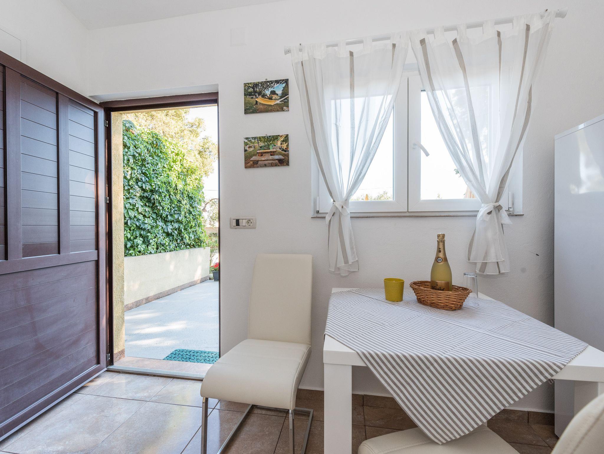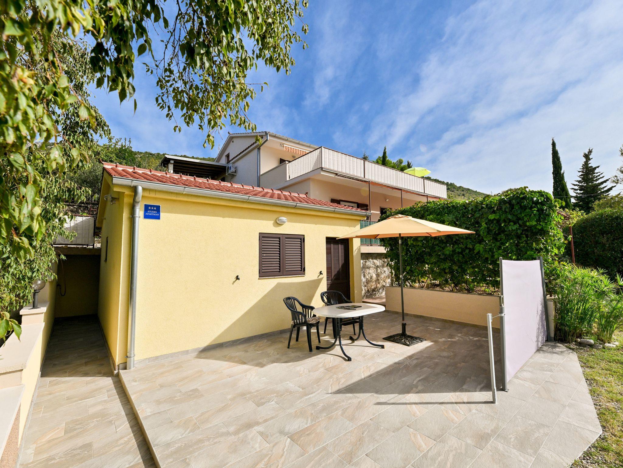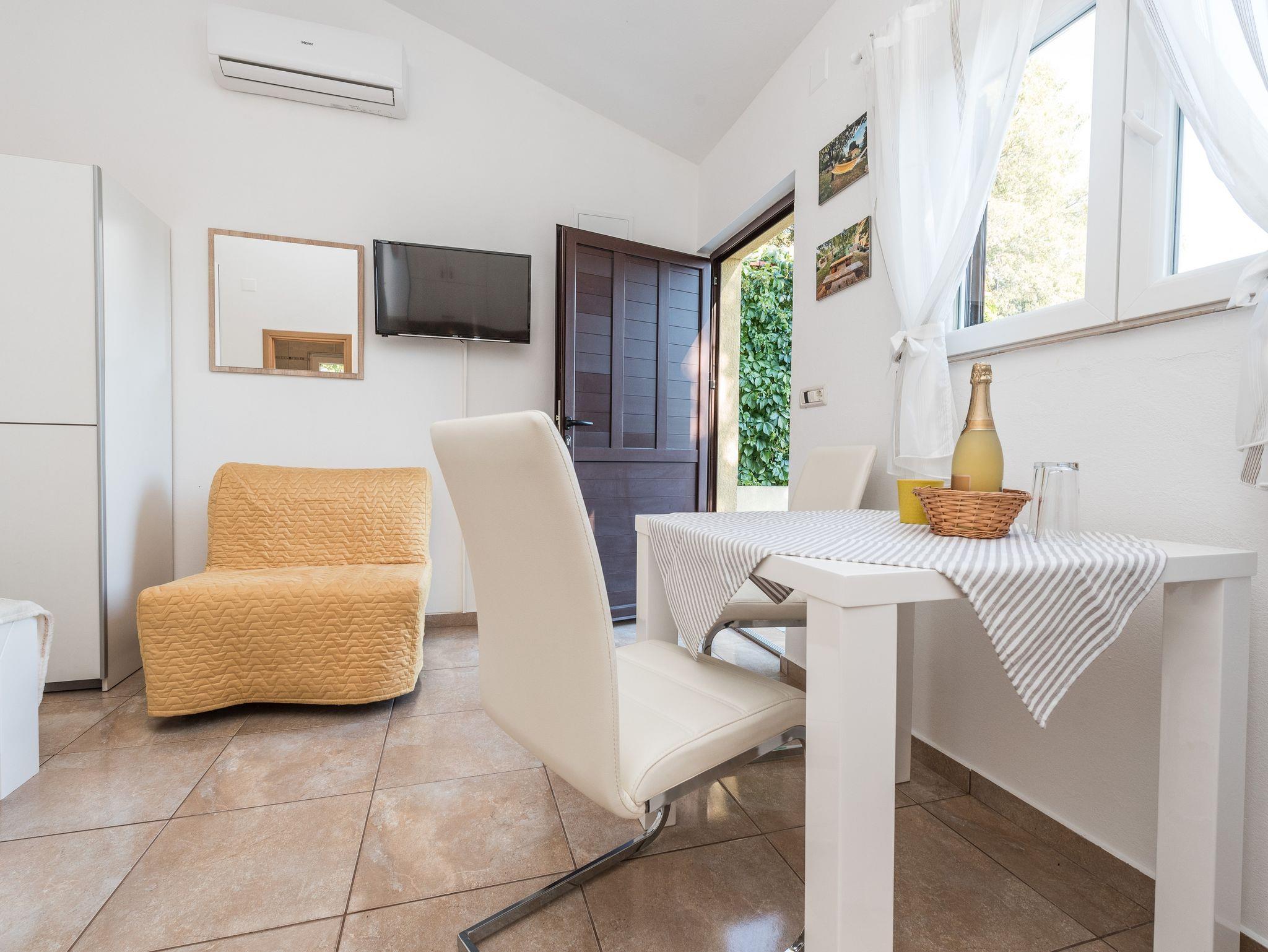 Studio bietet Platz für 2 Gäste. Die Betten sind in Schlafzimmern, die es 1 gibt, innerhalb einer Gesamtfläche von 22m2, angeordnet. Die Gäste haben eine eigene Terrasse zur Verfügung, auf der sie in warmen Sommernächten genießen können. Das Studio-Apartment bietet Meerblick. Für vollen Genuss und Entspannung gibt es einen privaten Grill für Gäste dieser Unterkunft. In der Unterkunftseinheit besteht die Möglichkeit des Mitbringens von Haustieren gegen Aufpreis. IM PREIS INBEGRIFFEN: Kurtaxe, Endreinigung, Klimatisierung, Parkplatz, Internet, Bügeleisen, Bügelbrett, Föhn, Sonnenschirm. VERBINDLICHE ZUSÄTZLICHE KOSTEN: Aufzahlung für Kurzaufenthalte (prozentualer Zuschlag pro Nächtigungsanzahl: 30% - 1, 20% - 2, 10% - 3). UNVERBINDLICHE ZUSÄTZLICHE KOSTEN: Haustiere (8,00 € pro Nacht). Die Verfügbarkeit zusätzlicher Dienstleistungen in Ihrem reservierten Termin und die Preise derselben (falls nicht aufgeführt) müssen im Voraus überprüft werden. Zusätzliche Dienstleistungen die in der Zahlungsaufforderung nicht aufgeführt sind werden direkt beim Vermieter bezahlt, angenommen der Gast nutzt auch diese.
