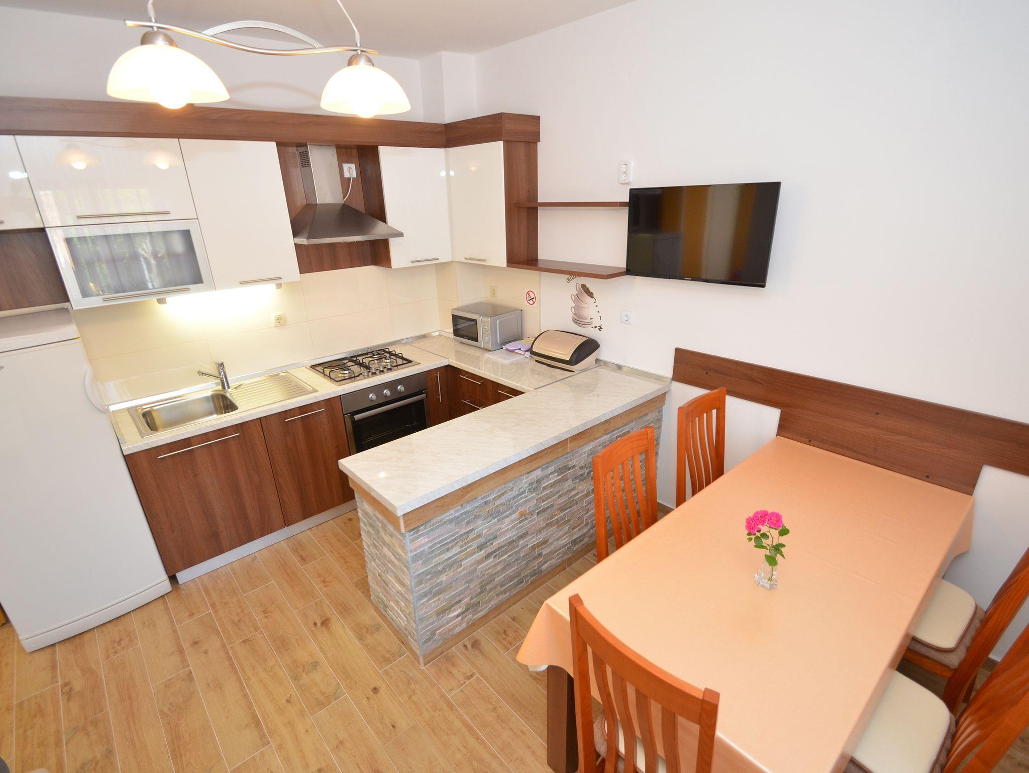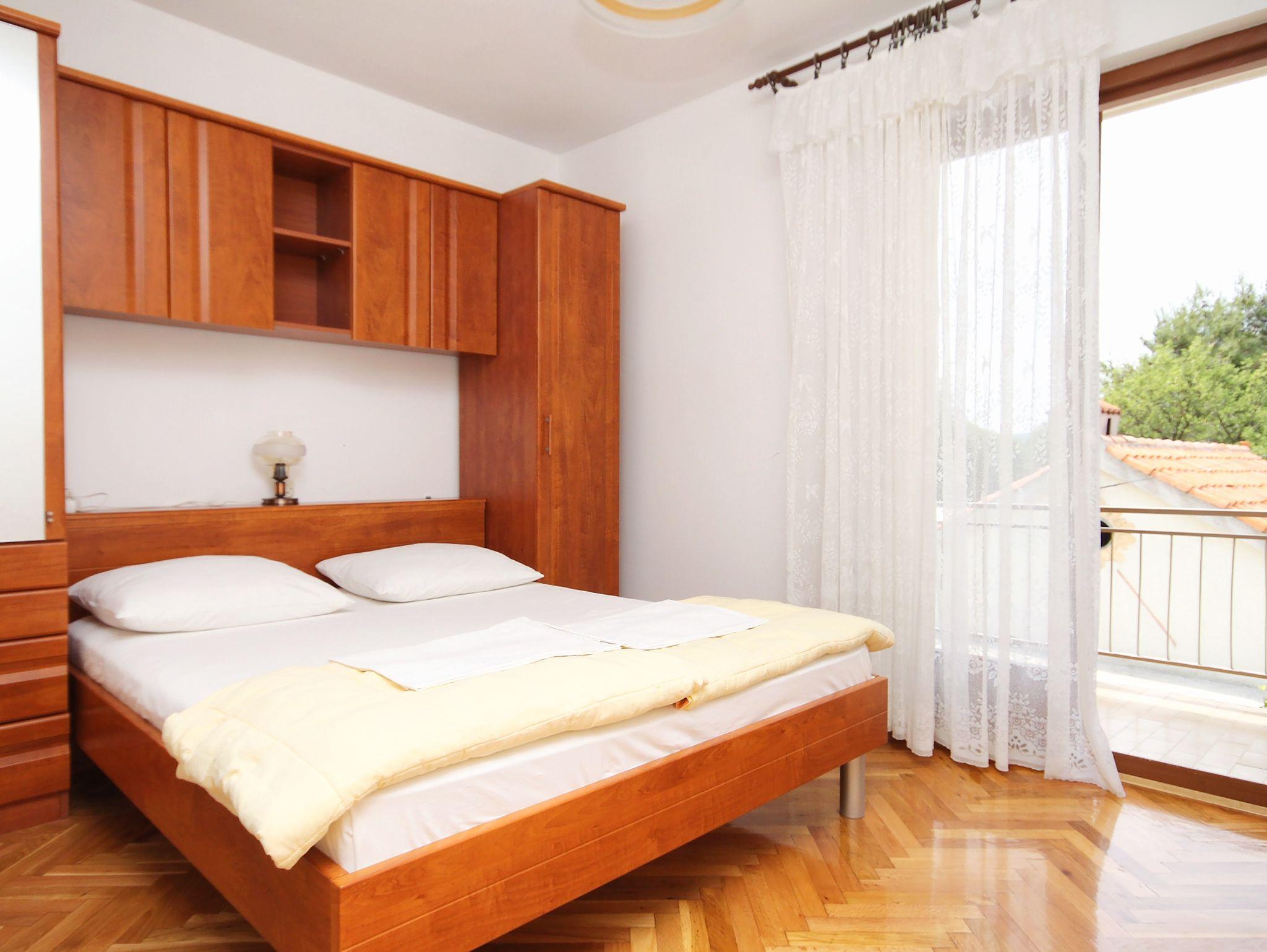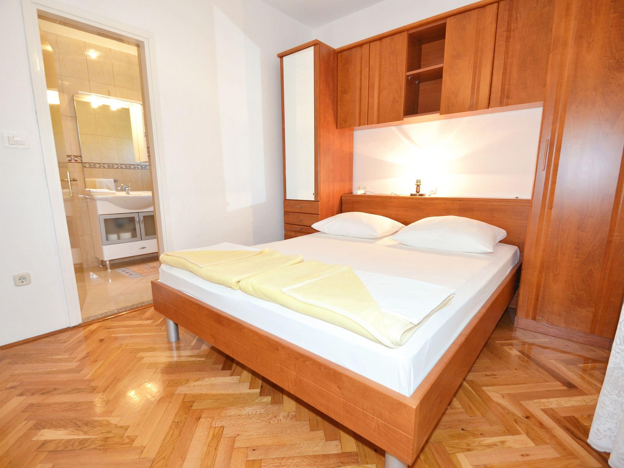 Ferienwohnung bietet Platz für 4 Gäste. Die Betten sind in Schlafzimmern, die es 2 gibt, innerhalb einer Gesamtfläche von 47m2, angeordnet. Die Gäste haben einen eigenen Balkon zur Verfügung, auf der sie in warmen Sommernächten genießen können. Das Apartment bietet Meerblick. Es ist erlaubt, Speisen auf dem Gemeinschafts-Grill vorzubereiten. IM PREIS INBEGRIFFEN: Kurtaxe, Endreinigung, Parkplatz, Internet, Wäschewaschen, Bootsanlegeplatz, Kinderbett, Bügeleisen, Bügelbrett. VERBINDLICHE ZUSÄTZLICHE KOSTEN: Aufzahlung für Kurzaufenthalte (prozentualer Zuschlag pro Nächtigungsanzahl: 30% - 1, 20% - 2, 10% - 3). Die Verfügbarkeit zusätzlicher Dienstleistungen in Ihrem reservierten Termin und die Preise derselben (falls nicht aufgeführt) müssen im Voraus überprüft werden. Zusätzliche Dienstleistungen die in der Zahlungsaufforderung nicht aufgeführt sind werden direkt beim Vermieter bezahlt, angenommen der Gast nutzt auch diese. Ermäßigung auf den Grundpreis: Gratistag 14=13 (bei einem Aufenthalt von 14 Tagen oder mehr erhalten Sie einen Gratistag für den Aufenthalt bis 31.12.26).