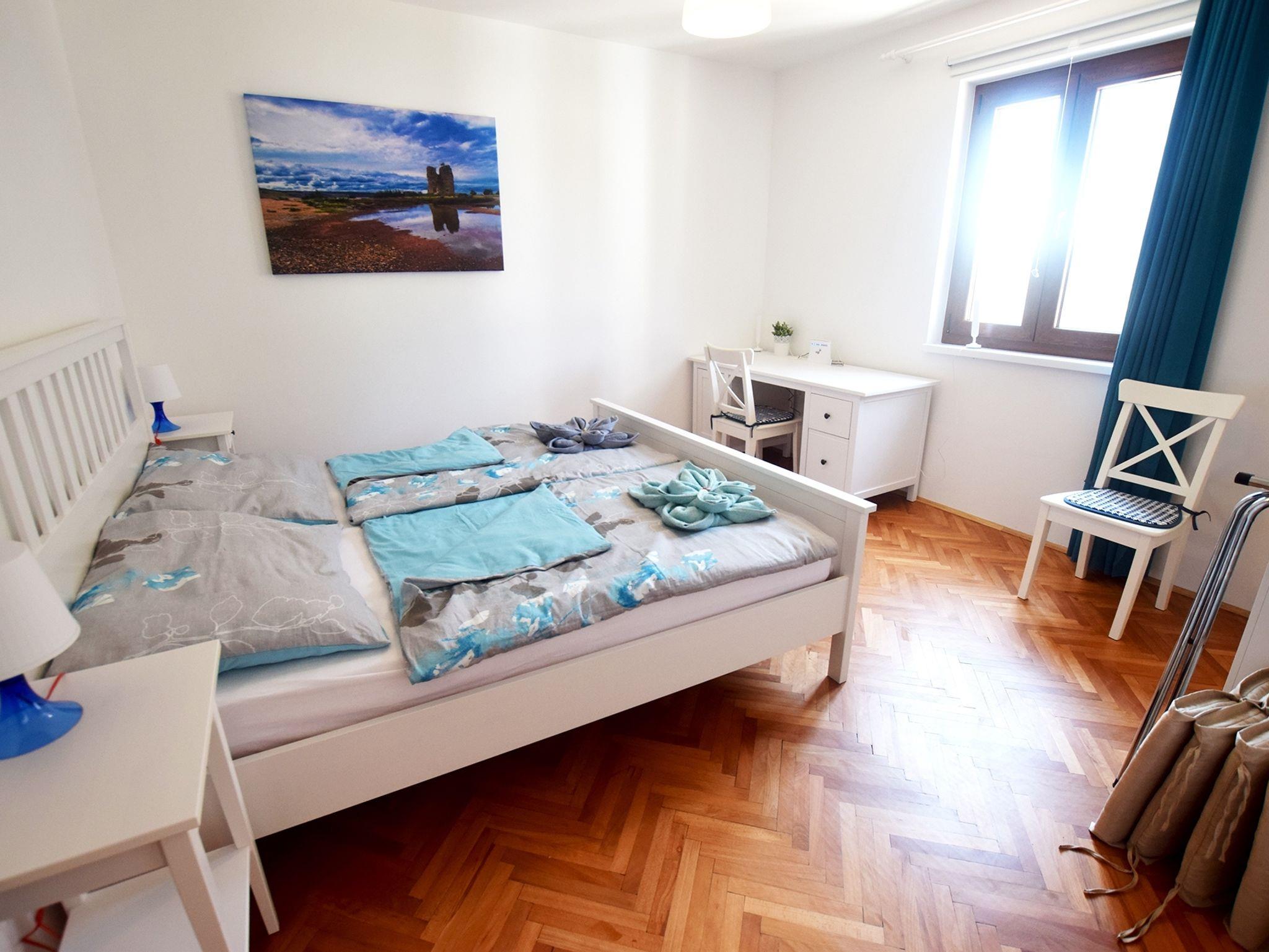 Haus bietet Platz für 7 Gäste. Die Betten sind in Schlafzimmern, die es 3 gibt, innerhalb einer Gesamtfläche von 82m2, angeordnet. Die Gäste haben eine eigene Terrasse zur Verfügung, auf der sie in warmen Sommernächten genießen können. Für vollen Genuss und Entspannung gibt es einen privaten Grill für Gäste dieser Unterkunft. IM PREIS INBEGRIFFEN: Kurtaxe, Endreinigung, Klimatisierung, Parkplatz, Internet, Kinderbett, Bügeleisen, Föhn. VERBINDLICHE ZUSÄTZLICHE KOSTEN: Aufzahlung für Kurzaufenthalte (prozentualer Zuschlag pro Nächtigungsanzahl: 30% - 1, 20% - 2, 10% - 3). UNVERBINDLICHE ZUSÄTZLICHE KOSTEN: Wäschewaschen (5,00 € Waschen). Die Verfügbarkeit zusätzlicher Dienstleistungen in Ihrem reservierten Termin und die Preise derselben (falls nicht aufgeführt) müssen im Voraus überprüft werden. Zusätzliche Dienstleistungen die in der Zahlungsaufforderung nicht aufgeführt sind werden direkt beim Vermieter bezahlt, angenommen der Gast nutzt auch diese. Ermäßigung auf den Grundpreis: Gratistag 14=13 (bei einem Aufenthalt von 14 Tagen oder mehr erhalten Sie einen Gratistag für den Aufenthalt bis 31.12.26).