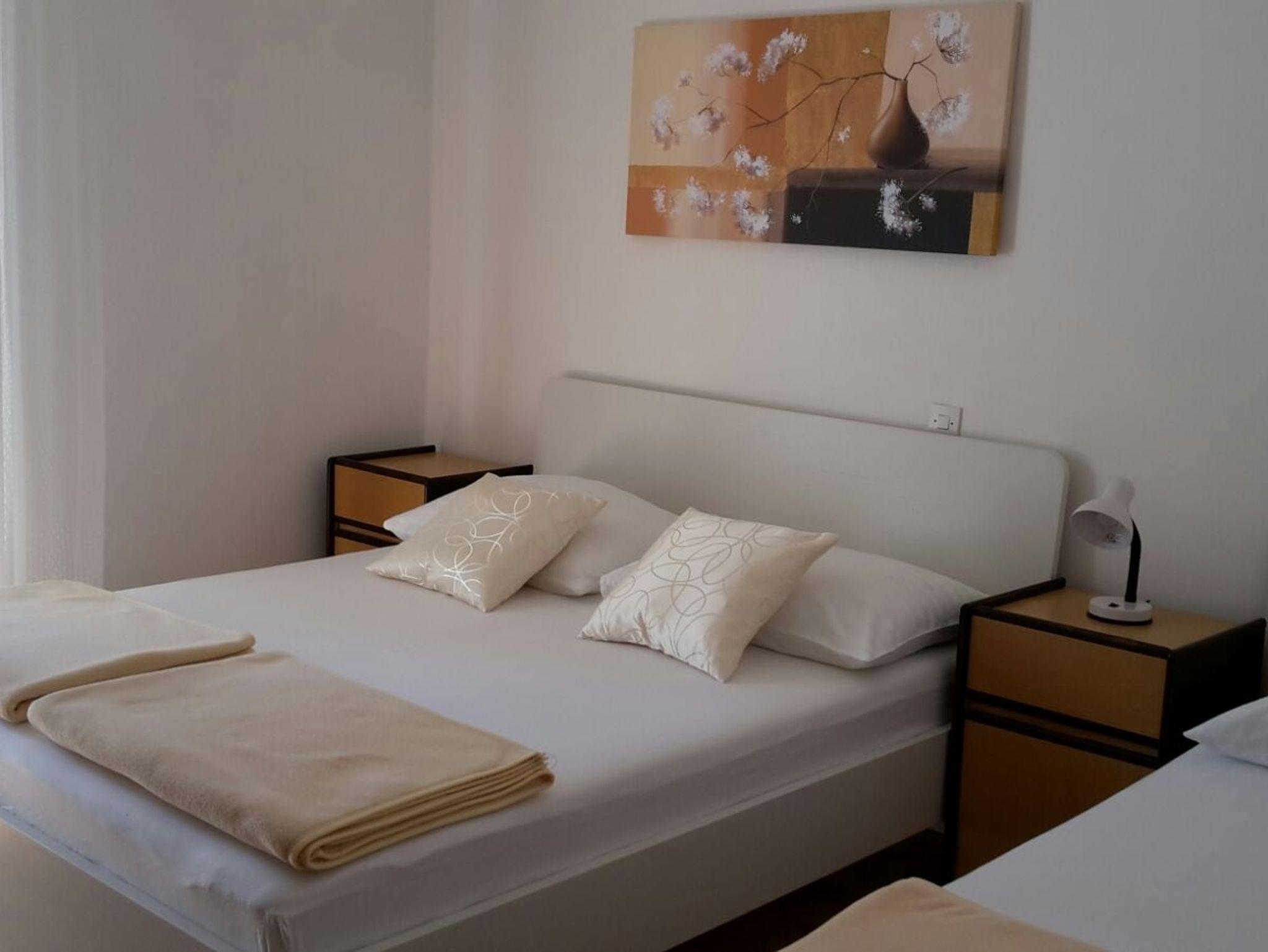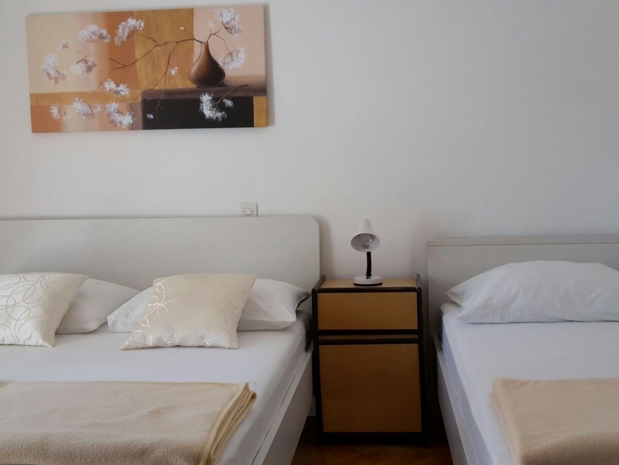 Zimmer bietet Platz für 3 Gäste. Die Betten sind in Schlafzimmern, die es 1 gibt, innerhalb einer Gesamtfläche von 17m2, angeordnet. Die Nutzung einer gemeinsamen Küche ist möglich. Die Gäste haben eine eigene Terrasse zur Verfügung, auf der sie in warmen Sommernächten genießen können. Es ist erlaubt, Speisen auf dem Gemeinschafts-Grill vorzubereiten. Die reservierte Unterkunftseinheit ist ein Zimmer mit eigenem Badezimmer mit der Möglichkeit der Nutzung einer Küche ohne Zuzahlung. IM PREIS INBEGRIFFEN: Kurtaxe, Endreinigung, gemeinsame Küche, Parkplatz, Internet, Wäschewaschen, Bootsanlegeplatz, Kinderbett. VERBINDLICHE ZUSÄTZLICHE KOSTEN: Aufzahlung für Kurzaufenthalte (prozentualer Zuschlag pro Nächtigungsanzahl: 30% - 1, 20% - 2, 10% - 3). Die Verfügbarkeit zusätzlicher Dienstleistungen in Ihrem reservierten Termin und die Preise derselben (falls nicht aufgeführt) müssen im Voraus überprüft werden. Zusätzliche Dienstleistungen die in der Zahlungsaufforderung nicht aufgeführt sind werden direkt beim Vermieter bezahlt, angenommen der Gast nutzt auch diese. Ermäßigung auf den Grundpreis: Gratistag 14=13 (bei einem Aufenthalt von 14 Tagen oder mehr erhalten Sie einen Gratistag für den Aufenthalt bis 31.12.26).