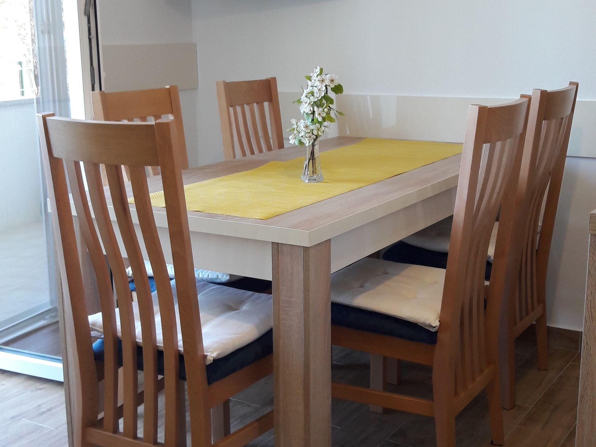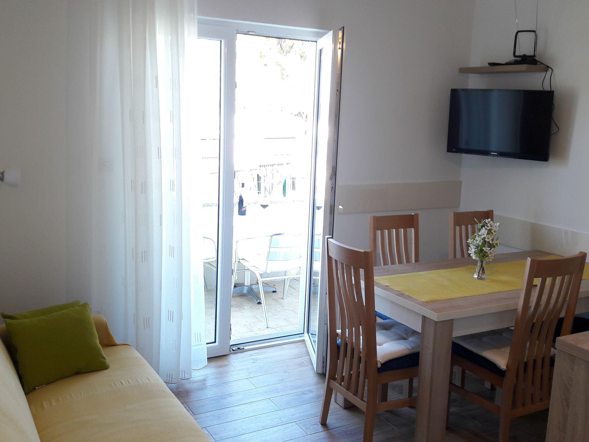 Ferienwohnung bietet Platz für 4 Gäste. Die Betten sind in Schlafzimmern, die es 1 gibt, und in Wohnzimmer, innerhalb einer Gesamtfläche von 35m2, angeordnet. Die Gäste haben einen eigenen Balkon zur Verfügung, auf der sie in warmen Sommernächten genießen können. Das Apartment bietet Meerblick. Es ist erlaubt, Speisen auf dem Gemeinschafts-Grill vorzubereiten. IM PREIS INBEGRIFFEN: Kurtaxe, Endreinigung, Parkplatz, Internet, Wäschewaschen, Bootsanlegeplatz, Kinderbett. VERBINDLICHE ZUSÄTZLICHE KOSTEN: Aufzahlung für Kurzaufenthalte (prozentualer Zuschlag pro Nächtigungsanzahl: 30% - 1, 20% - 2, 10% - 3). Die Verfügbarkeit zusätzlicher Dienstleistungen in Ihrem reservierten Termin und die Preise derselben (falls nicht aufgeführt) müssen im Voraus überprüft werden. Zusätzliche Dienstleistungen die in der Zahlungsaufforderung nicht aufgeführt sind werden direkt beim Vermieter bezahlt, angenommen der Gast nutzt auch diese. Ermäßigung auf den Grundpreis: Gratistag 14=13 (bei einem Aufenthalt von 14 Tagen oder mehr erhalten Sie einen Gratistag für den Aufenthalt bis 31.12.26).