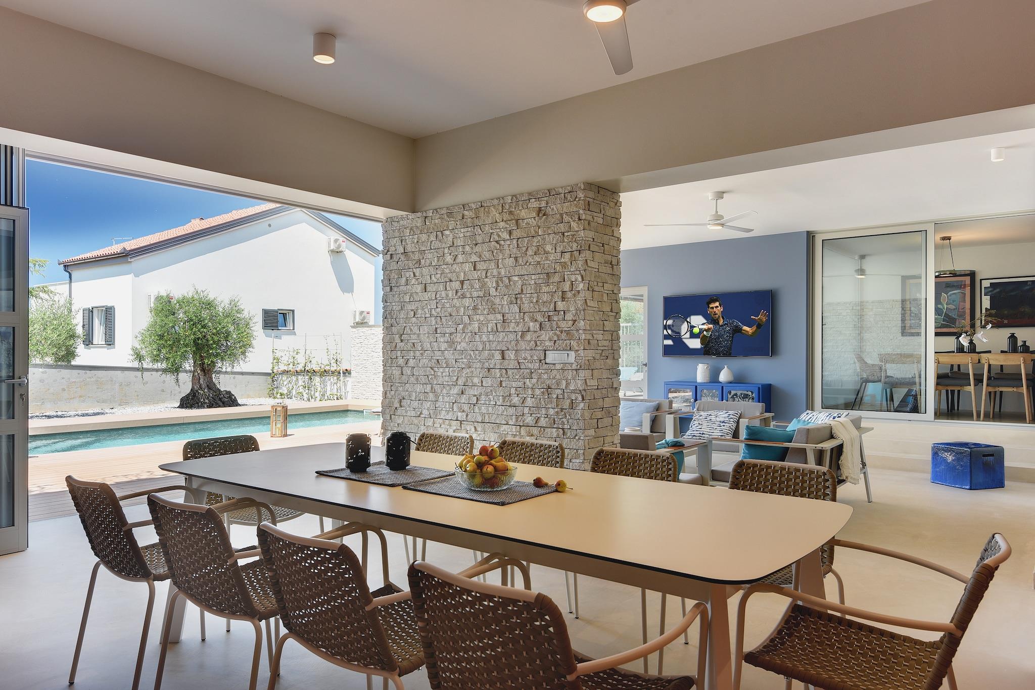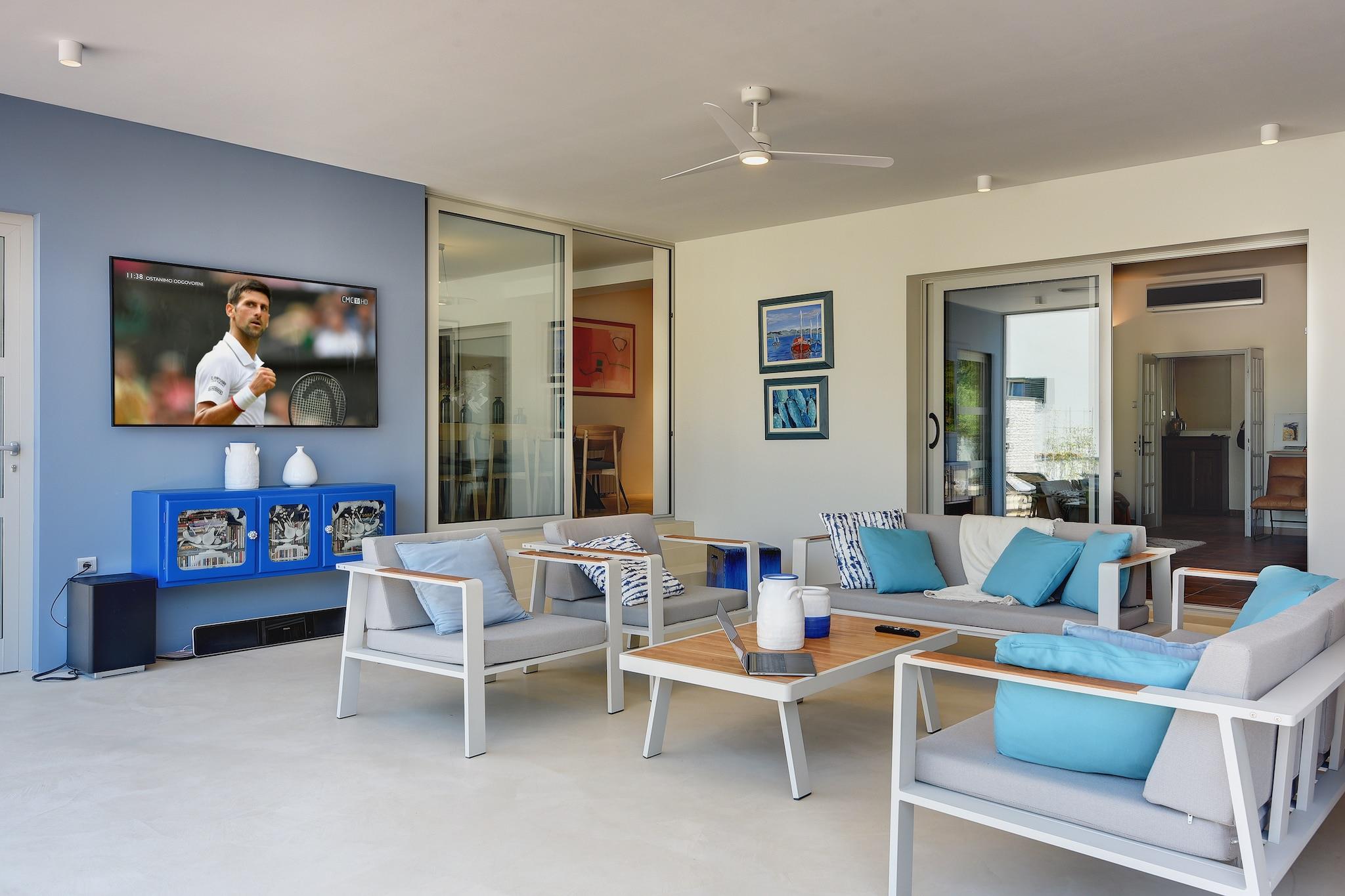 Stueetage: (Stue(Fjernsyn, sofahjørne), spisestue(spisebord), Køkken(elkedel, brødrister, komfur(Komfur med fire kogeplader, elektrisk), kaffemaskine, ovn, mikrobølgeovn, opvaskemaskine , køle-fryseskab), soveværelse(enkeltseng, dobbeltseng(180 x 200 cm), klimaanlæg), badeværelse(bruser, håndvask, toilet), badeværelse(bruser, håndvask, toilet)) Mellemetage: (soveværelse(dobbeltseng(160 x 200 cm)), badeværelse(bruser, toilet)) På 1. etage: (soveværelse(dobbeltseng(160 x 200 cm), klimaanlæg), soveværelse(dobbeltseng(160 x 200 cm), Fjernsyn(parabol), balkon, klimaanlæg), soveværelse(enkeltseng(90 x 200 cm), klimaanlæg)) Køkken, badeværelse(bruser, toilet), vaskemaskine, terrasse(privat, overdækket, 20 m2), have(privat), havemøbler, grill, parkering, swimmingpool(privat, 7 x 4 m.), bordtennisbord
