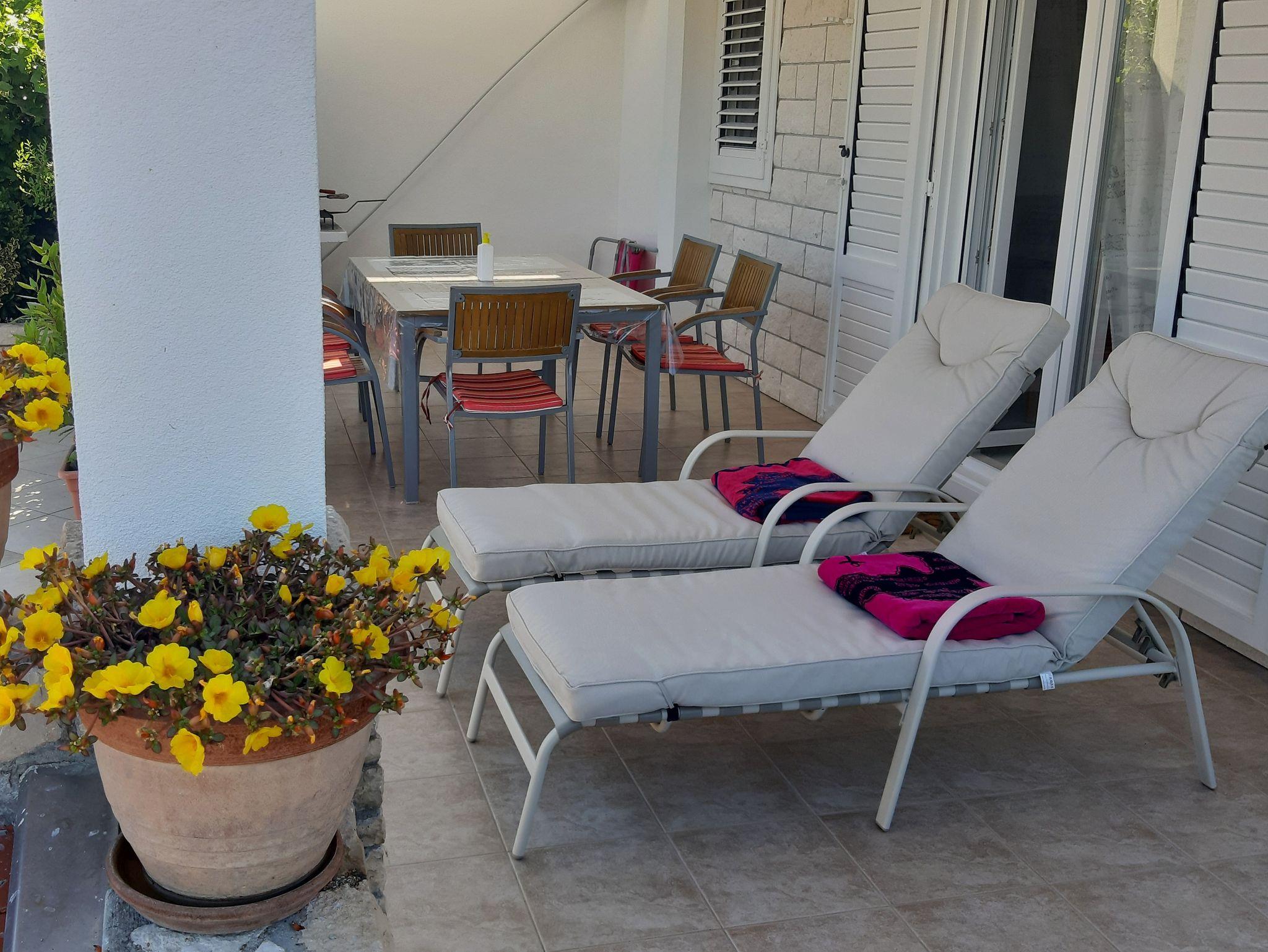 Ferienwohnung bietet Platz für 4 Gäste. Die Betten sind in Schlafzimmern, die es 2 gibt, innerhalb einer Gesamtfläche von 45m2, angeordnet. Die Gäste haben eine eigene Terrasse zur Verfügung, auf der sie in warmen Sommernächten genießen können. Das Apartment bietet Meerblick. Es ist erlaubt, Speisen auf dem Gemeinschafts-Grill vorzubereiten. IM PREIS INBEGRIFFEN: Kurtaxe, Endreinigung, Klimatisierung, Parkplatz, Internet, Wäschewaschen, Bügeleisen, Bügelbrett, Föhn. VERBINDLICHE ZUSÄTZLICHE KOSTEN: Aufzahlung für Kurzaufenthalte (prozentualer Zuschlag pro Nächtigungsanzahl: 30% - 1, 20% - 2, 10% - 3). Die Verfügbarkeit zusätzlicher Dienstleistungen in Ihrem reservierten Termin und die Preise derselben (falls nicht aufgeführt) müssen im Voraus überprüft werden. Zusätzliche Dienstleistungen die in der Zahlungsaufforderung nicht aufgeführt sind werden direkt beim Vermieter bezahlt, angenommen der Gast nutzt auch diese.