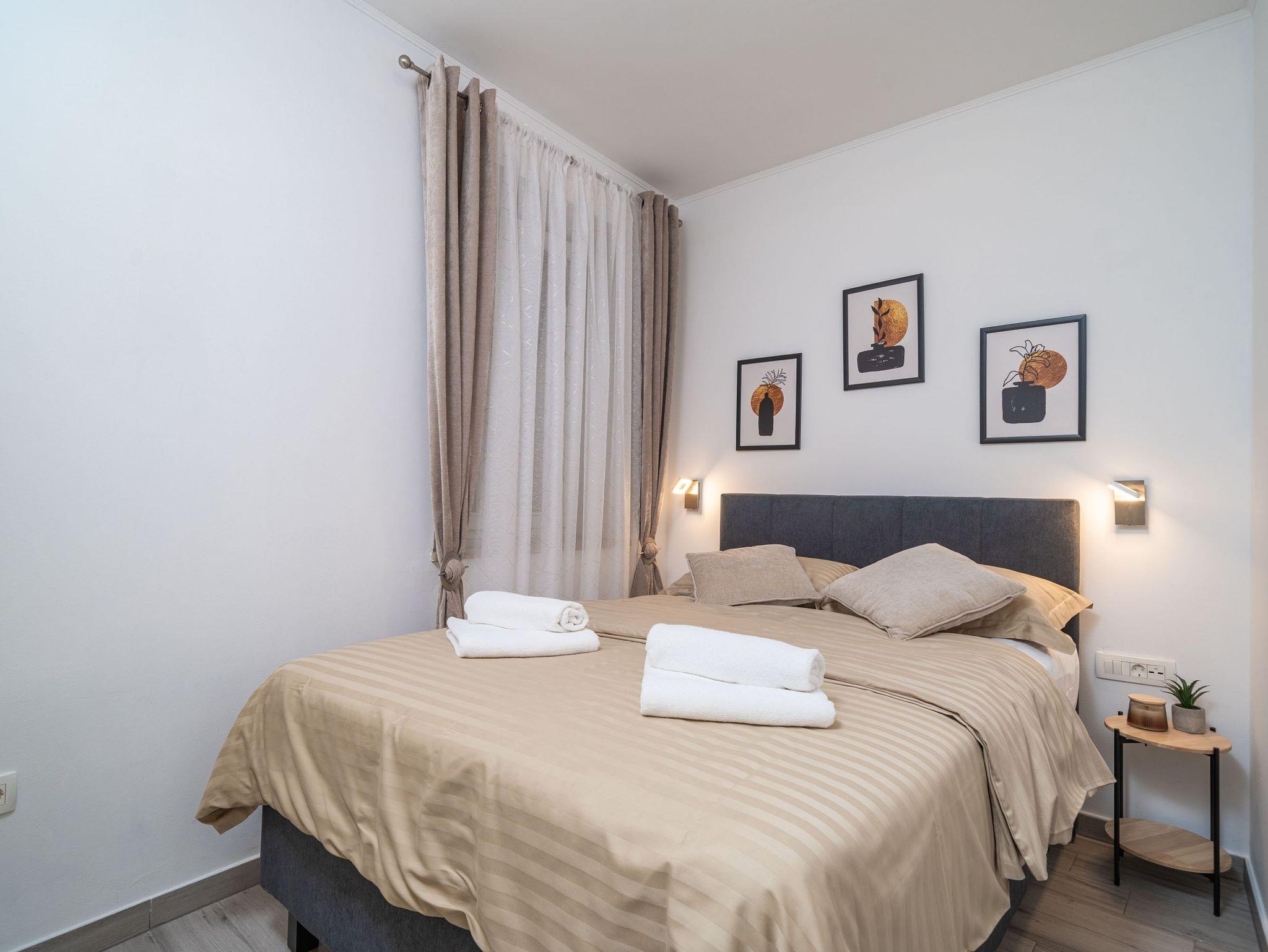 Ferienwohnung bietet Platz für 2 Gäste. Die Betten sind in Schlafzimmern, die es 1 gibt, innerhalb einer Gesamtfläche von 26m2, angeordnet. Die Gäste haben eine eigene Terrasse zur Verfügung, auf der sie in warmen Sommernächten genießen können. IM PREIS INBEGRIFFEN: Kurtaxe, Endreinigung, Klimatisierung, Zentralheizung, Parkplatz, Internet, Bügeleisen, Bügelbrett, Föhn. Die Verfügbarkeit zusätzlicher Dienstleistungen in Ihrem reservierten Termin und die Preise derselben (falls nicht aufgeführt) müssen im Voraus überprüft werden. Zusätzliche Dienstleistungen die in der Zahlungsaufforderung nicht aufgeführt sind werden direkt beim Vermieter bezahlt, angenommen der Gast nutzt auch diese. Ermäßigung auf den Grundpreis: Gratistag 14=13 (bei einem Aufenthalt von 14 Tagen oder mehr erhalten Sie einen Gratistag für den Aufenthalt bis 31.12.26).