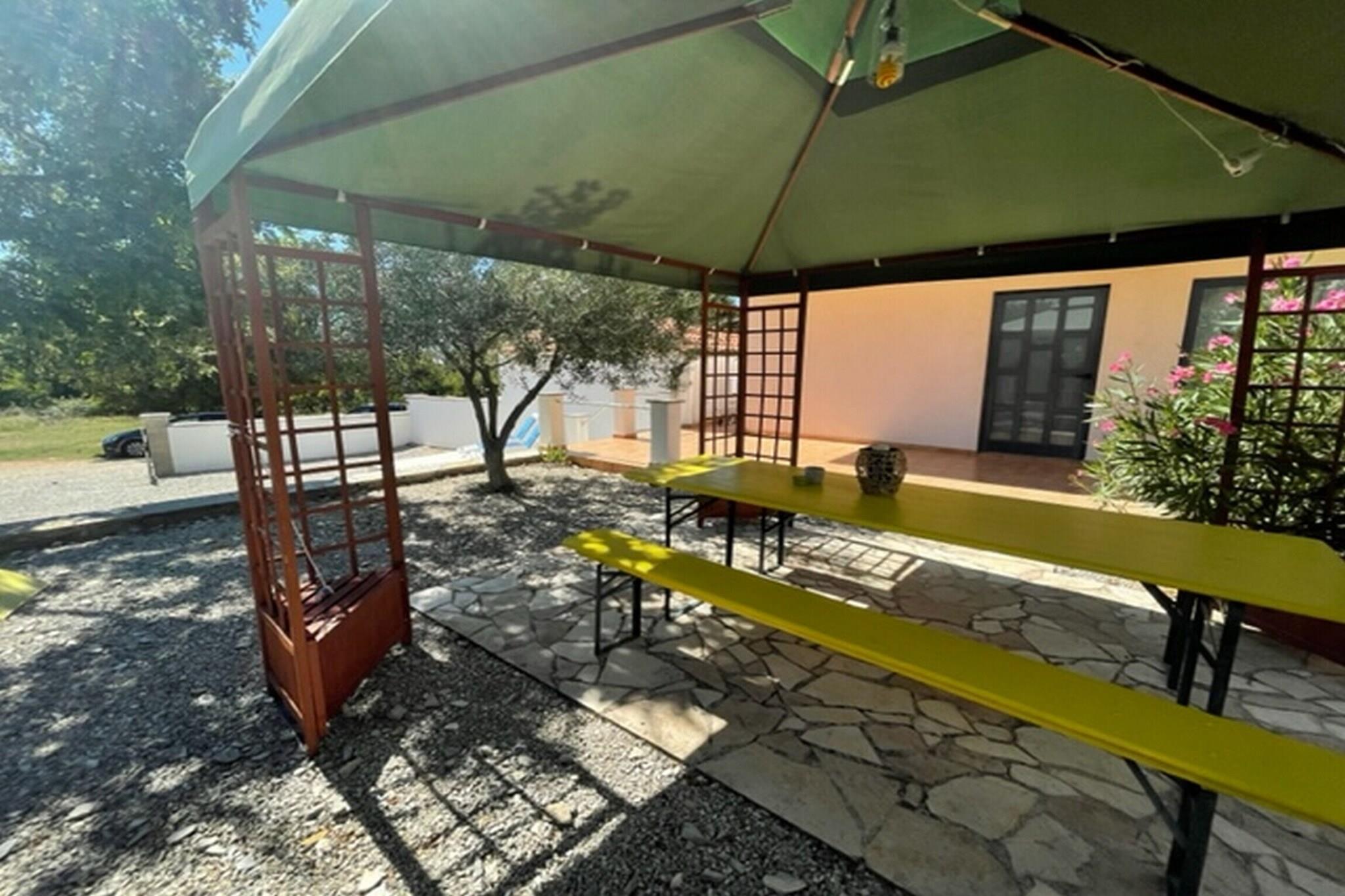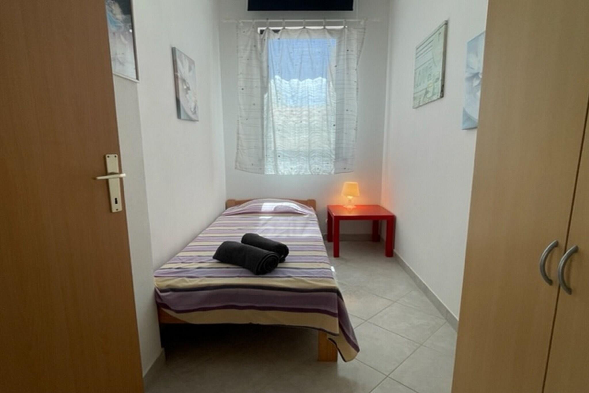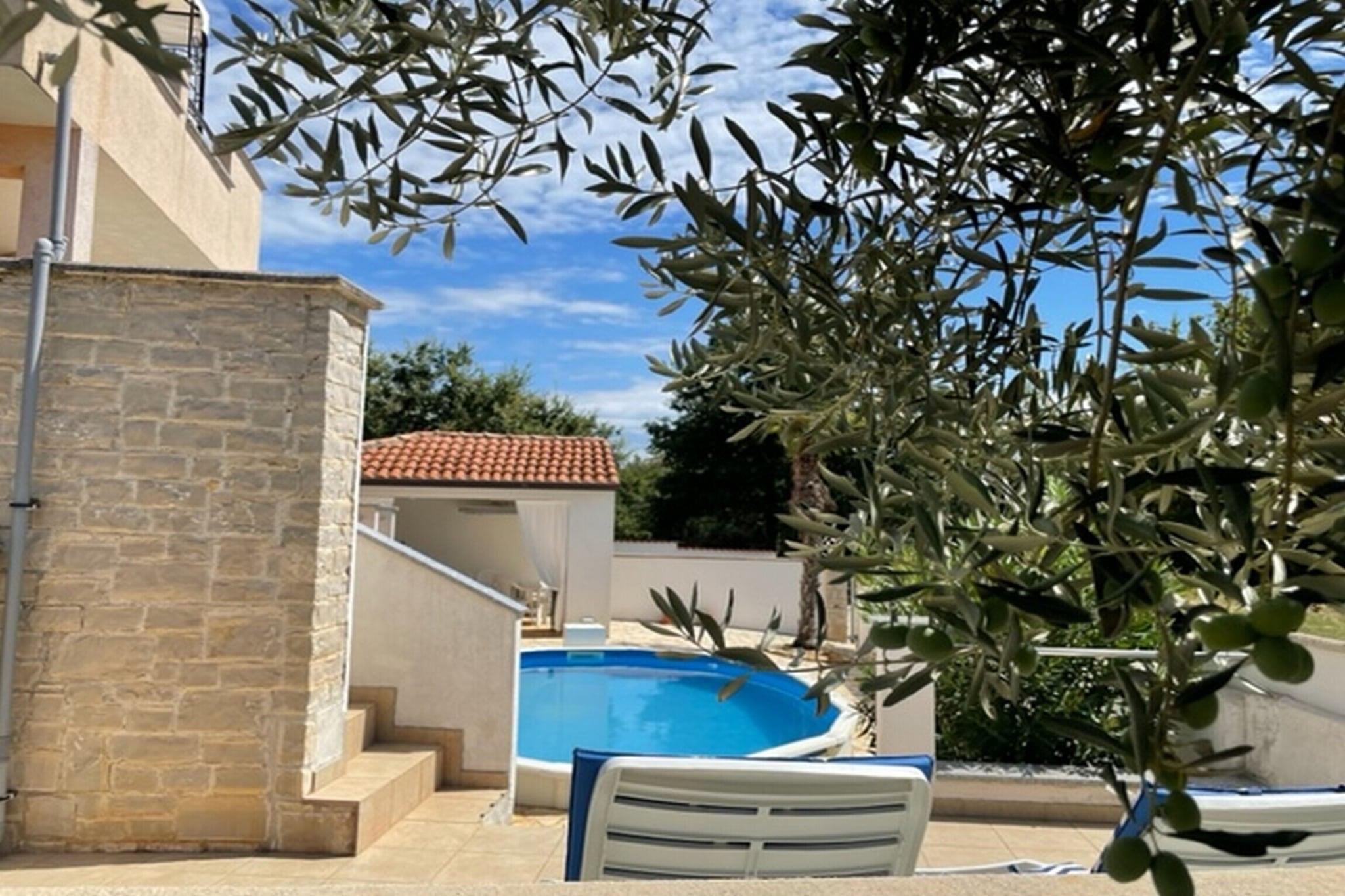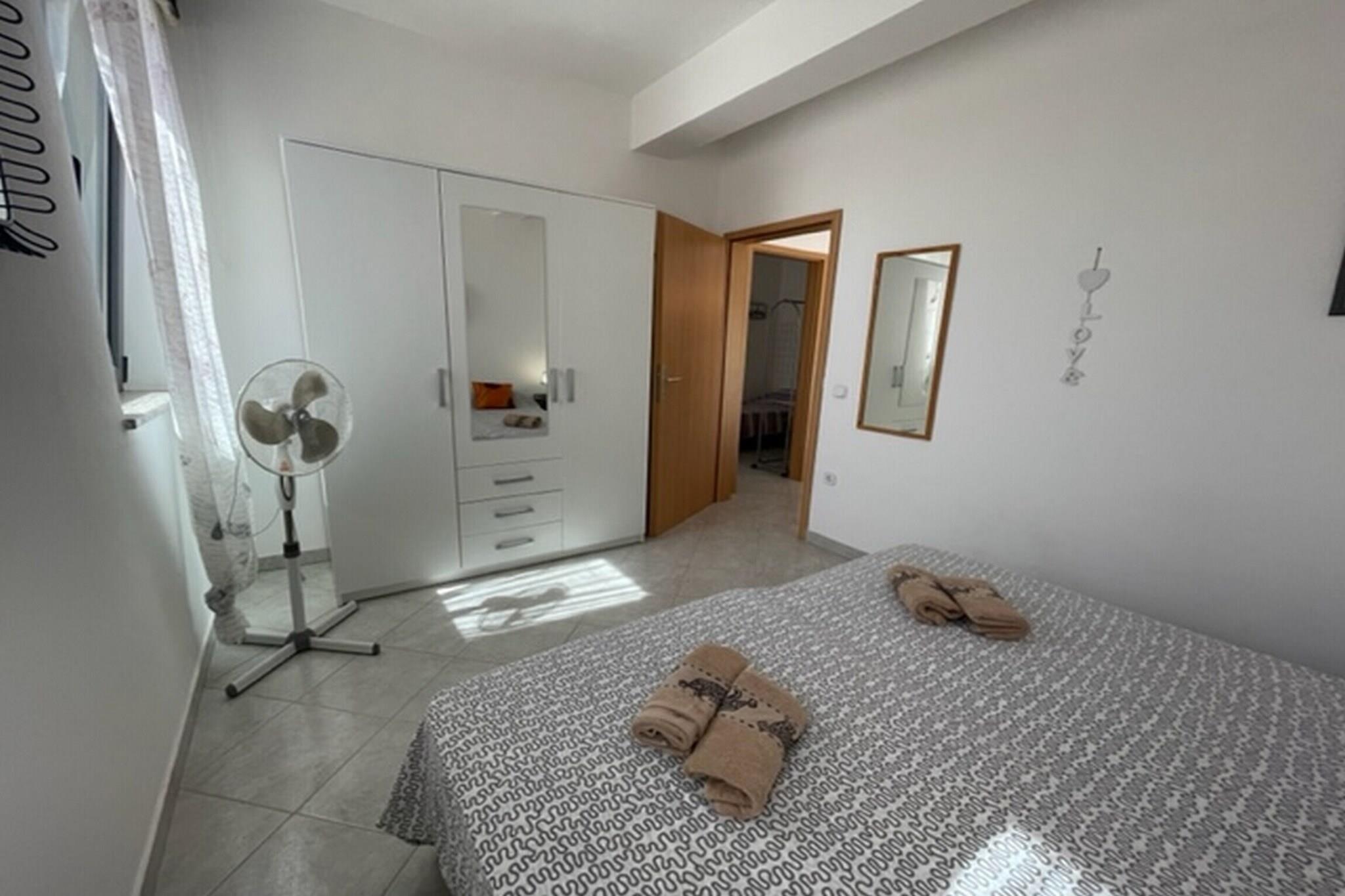 Lejligheden tilbyder sammen med sin hyggelige og indbydende atmosfære et komfortabelt to-værelses rum med en kapacitet til at rumme op til fire gæster og inkluderer en have med udendørs møbler, en fælles swimmingpool, terrasse til udendørs nydelse. Væsentlige faciliteter såsom aircondition, varmepumpe til komfort året rundt, Wi-Fi, tv med satellitkanaler, ventilator og hårtørrer er til rådighed. Kun 9 meter fra vandlandet "Aquacolors Porec" kan gæsterne nyde en dag med sjov og afslapning. Den nærmeste togstation, "Zeljeznicki kolodvor Pula," er kun 63 meter væk, hvilket gør transport bekvemt for rejsende. Den populære "Marea Beach" (5 km) byder på både sten- og sandmuligheder til svømning og solbadning. Gæsterne kan også udforske byen Porec (7 km) med dens butikker, restauranter og kulturelle seværdigheder. For naturelskere er naturreservatet "Brijuni Islands" (56 km) og "Mirna-floden" (11 km) ideelle steder at besøge. Pula Lufthavn (63 km) sikrer nem adgang til ejendommen. Lejligheden har et veludstyret køkken i åbent plan designet til bekvemmelighed. Køkkenet indeholder elektriske apparater såsom køleskab, mikroovn, ovn, fryser, opvaskemaskine, kaffemaskine, brødrister og kedel, sammen med nødvendige køkkenredskaber, tallerkener og bestik. Dette giver gæsterne mulighed for nemt at tilberede deres måltider. Udenfor tilbyder lejligheden en grill til udendørs spisning, og den fælles swimmingpool tilbyder en forfriskende måde at slappe af på.