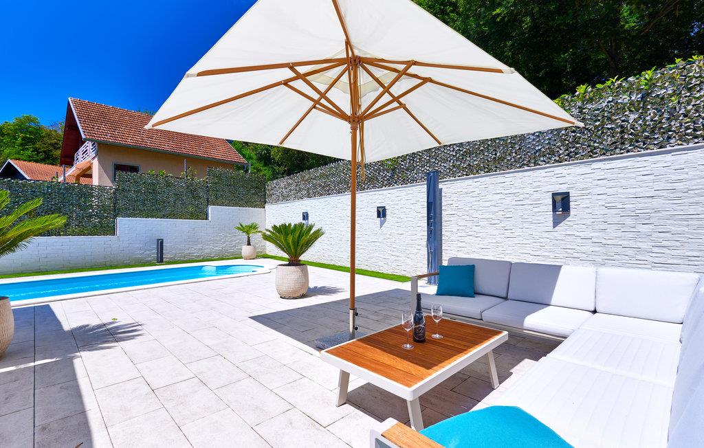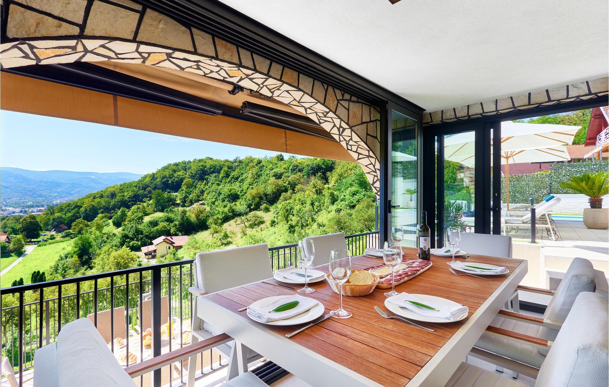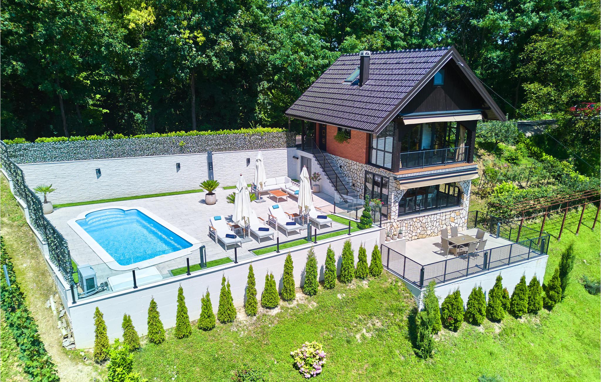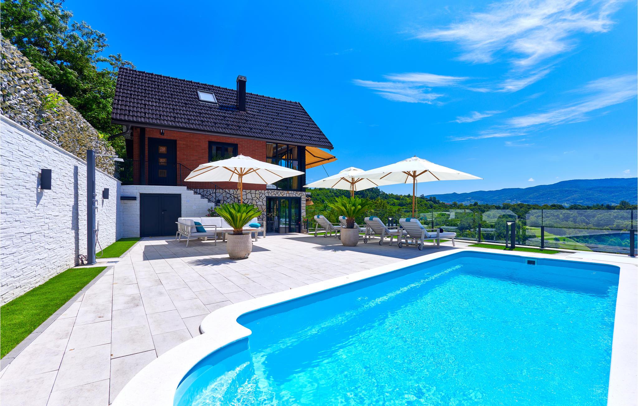 Rummeligt, familievenligt feriehus med privat udendørspool og panoramaudsigt over området.