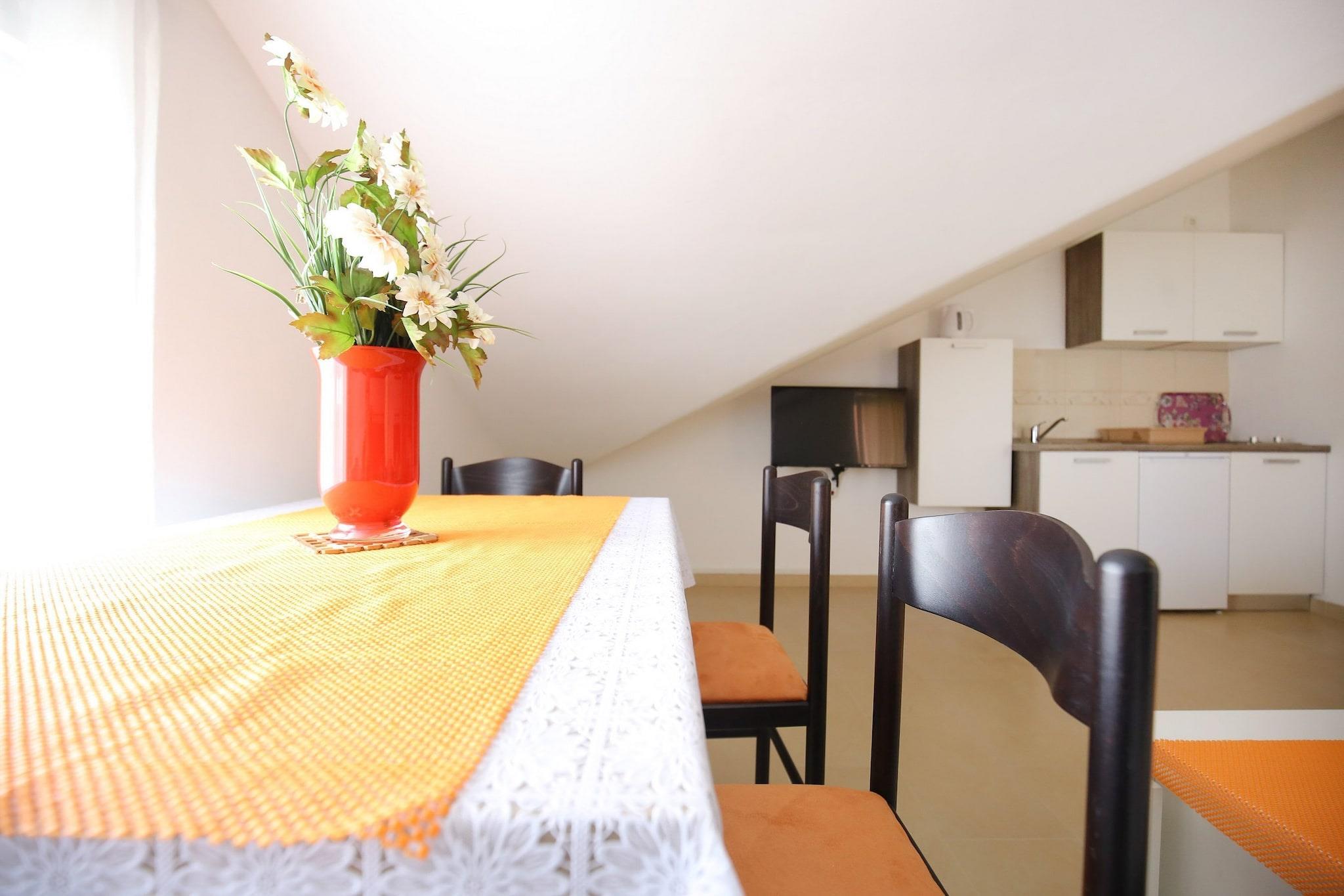 Apartments Kapetan are located in the heart of Sukošan, Zadar county, Croatia. Our modernly decorated apartments are ideal for those looking for peace, comfort, and proximity to the sea. The beach is less than 200 meters away, and everything you need - shops, pharmacies, restaurants - is just a few steps away. The famous sandy beach Djecji raj is perfect for families and is only 1 kilometer away from the apartments. Note: Private parking is available, and a reservation is not required. Wi-Fi is available throughout the property. Pets are not allowed. This studio apartment can accommodate up to 2 adults and one child up to 15 years. It features an SAT/flat-screen TV and is combined with a living room seating area, sofa, and kitchen. The private bathroom is equipped with a shower and toilet. Thanks to its excellent location, everything you'll need for your vacation is just a short walk from the property. Grocery stores, cafes, restaurants—everything is within a 300 m radius. The beach is 170 m away from the property. The airport is 6.50 km away from the property.