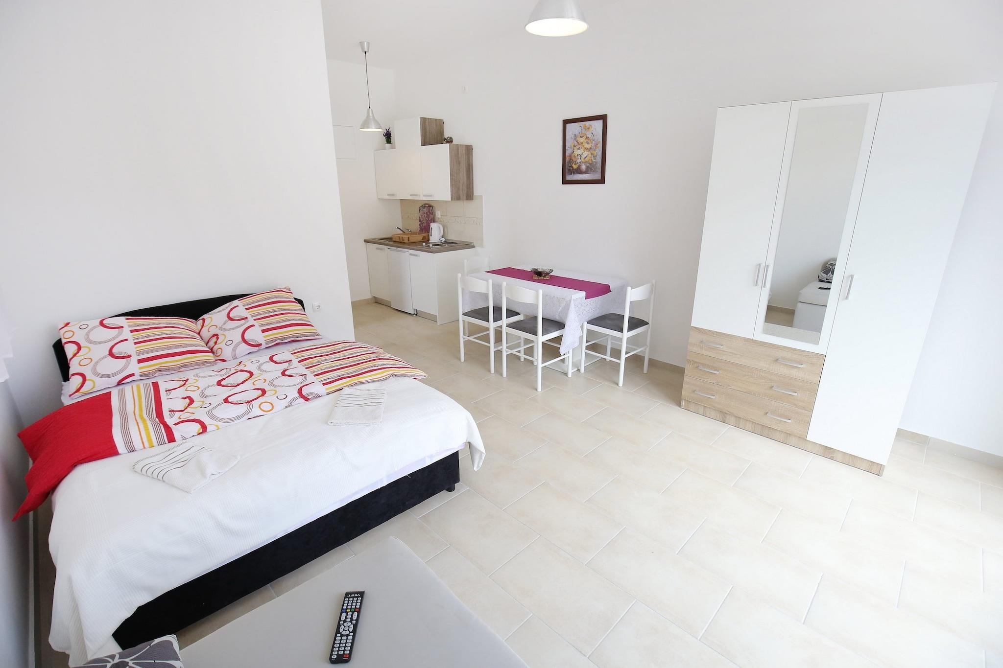 Apartments Kapetan are located in the heart of Sukošan, Zadar county, Croatia. Our modernly decorated apartments are ideal for those looking for peace, comfort, and proximity to the sea. The beach is less than 200 meters away, and everything you need - shops, pharmacies, restaurants - is just a few steps away. The famous sandy beach Djecji raj is perfect for families and is only 1 kilometer away from the apartments. Note: Private parking is available, and a reservation is not required. Wi-Fi is available throughout the property. Pets are not allowed. This studio apartment can accommodate up to 2 adults and one child up to 15 years. It features an SAT/flat-screen TV and is combined with a living room seating area, sofa, and kitchen. The private bathroom is equipped with a shower and toilet. Thanks to its excellent location, everything you'll need for your vacation is just a short walk from the property. Grocery stores, cafes, restaurants—everything is within a 300 m radius. The beach is 170 m away from the property. The airport is 6.50 km away from the property.