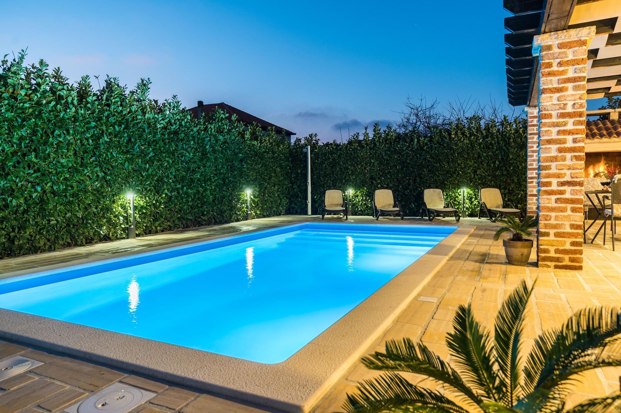 Kystkomfort og førsteklasses beliggenhed Dette kæledyrsvenlige feriehus til seks gæster tilbyder en rolig oase kun 80 meter fra havet i Sukošan. Med restauranter kun 50 meter væk og almindelige forsyninger inden for 400 meter er bekvemmeligheden lige ved døren. Hjemmet ligger også 8 km fra Zadar Lufthavn, hvilket gør rejsen problemfri. Moderne faciliteter og afslapning Indenfor har ejendommen en rummelig opholds- og spisestue med fladskærms-satellit-tv og pejs, et fuldt udstyret åbent køkken med moderne apparater og to hyggelige soveværelser med dobbeltsenge. Gæsterne kan slappe af på den private overdækkede terrasse, nyde udendørs spisning med grill eller tage en forfriskende dukkert i den private swimmingpool. Yderligere faciliteter inkluderer aircondition, vaskemaskine og en indhegnet, oplyst have for et behageligt ophold. Nærliggende attraktioner og spisesteder Udforsk Havorglet, et arkitektonisk vidunder, der forvandler bølger til musik, eller besøg Park prirode Vransko jezero, en fantastisk naturpark, der er perfekt til udendørs eventyr. Konoba Piazzetta tilbyder middelhavssmage, mens Restoran Francesco serverer frisk fisk og skaldyr i hyggelige omgivelser. Uanset om du søger eventyr eller afslapning, er dette kystnære tilflugtssted det perfekte tilflugtssted.