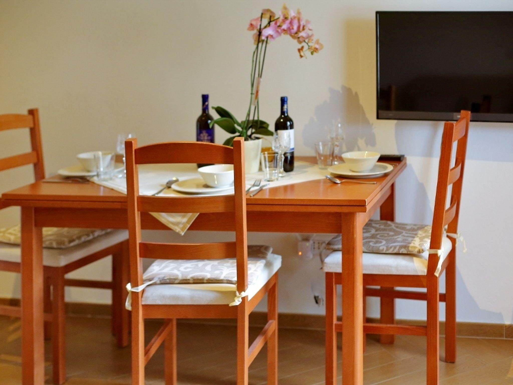 Ferienwohnung bietet Platz für 3 Gäste. Die Betten sind in Schlafzimmern, die es 1 gibt, und in Wohnzimmer, innerhalb einer Gesamtfläche von 26m2, angeordnet. Die Gäste haben eine eigene Terrasse zur Verfügung, auf der sie in warmen Sommernächten genießen können. Es ist erlaubt, Speisen auf dem Gemeinschafts-Grill vorzubereiten. IM PREIS INBEGRIFFEN: Kurtaxe, Endreinigung, Klimatisierung, Zentralheizung, Parkplatz, Internet, Bügeleisen, Bügelbrett, Föhn. VERBINDLICHE ZUSÄTZLICHE KOSTEN: Aufzahlung für Kurzaufenthalte (prozentualer Zuschlag pro Nächtigungsanzahl: 30% - 1, 20% - 2, 10% - 3). Die Verfügbarkeit zusätzlicher Dienstleistungen in Ihrem reservierten Termin und die Preise derselben (falls nicht aufgeführt) müssen im Voraus überprüft werden. Zusätzliche Dienstleistungen die in der Zahlungsaufforderung nicht aufgeführt sind werden direkt beim Vermieter bezahlt, angenommen der Gast nutzt auch diese.