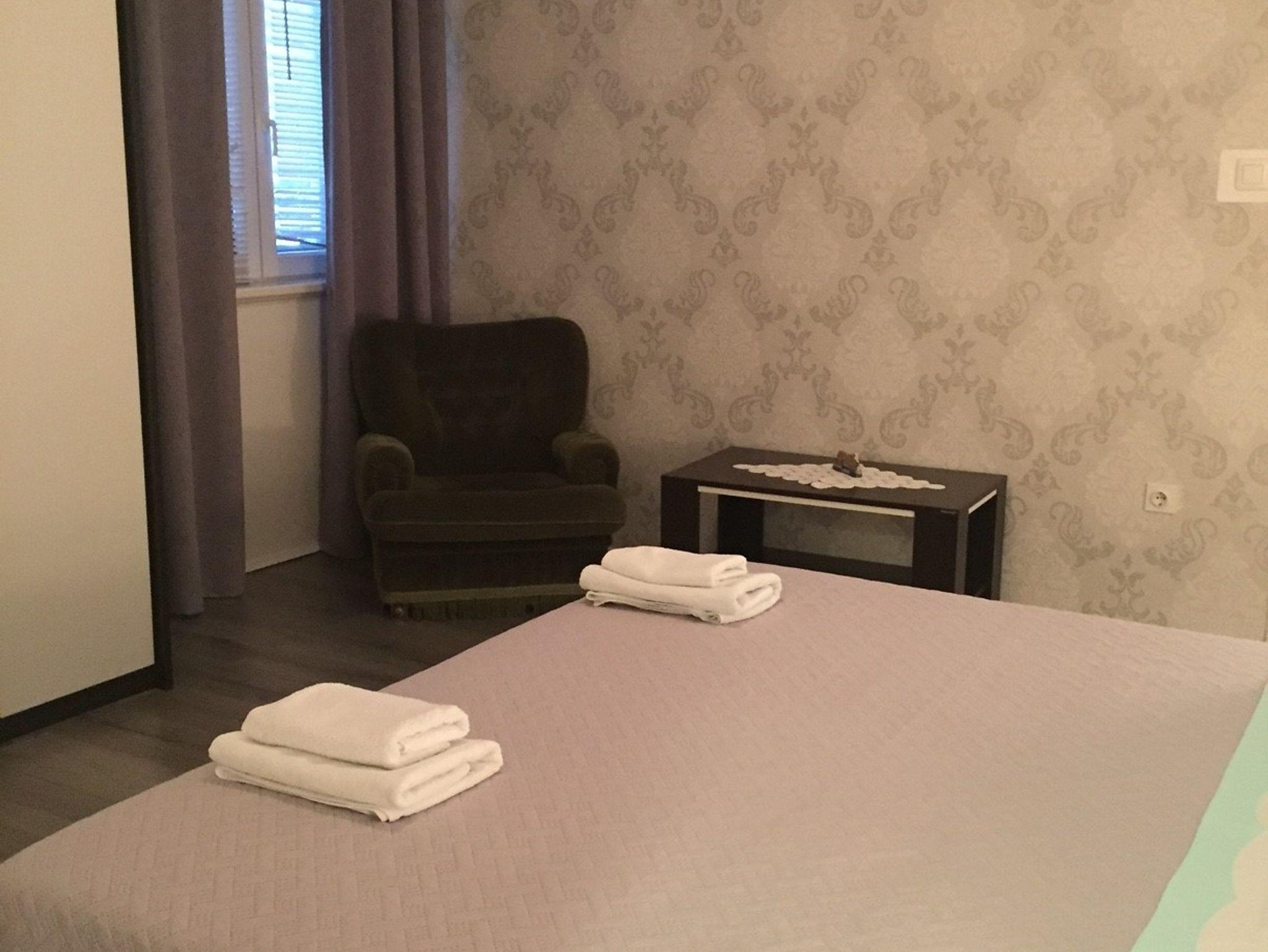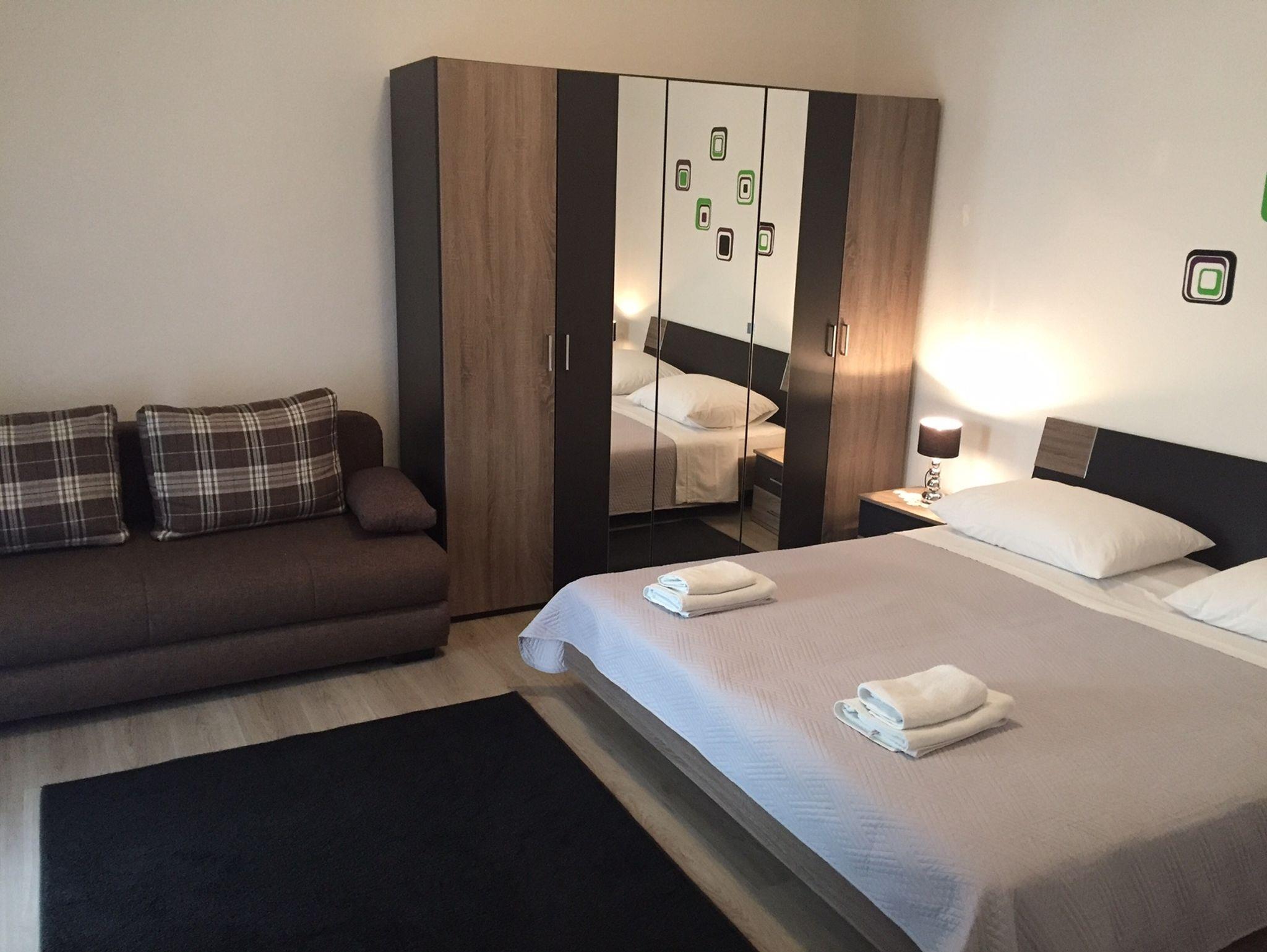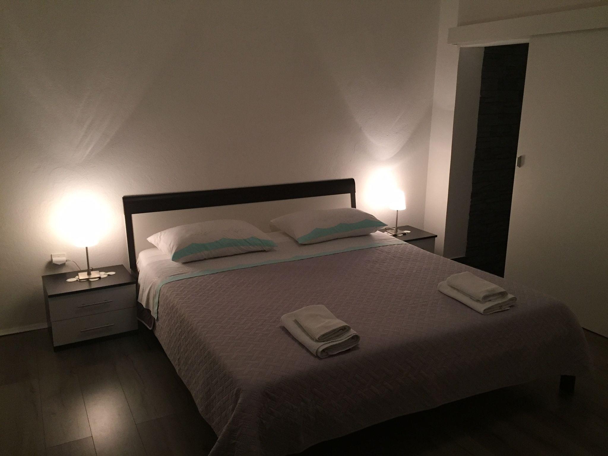 Ferienwohnung bietet Platz für 7 Gäste. Die Betten sind in Schlafzimmern, die es 3 gibt, innerhalb einer Gesamtfläche von 84m2, angeordnet. Die Gäste haben eine eigene Terrasse zur Verfügung, auf der sie in warmen Sommernächten genießen können. Das Apartment bietet Meerblick. Es ist erlaubt, Speisen auf dem Gemeinschafts-Grill vorzubereiten. In der Unterkunftseinheit besteht die Möglichkeit des Mitbringens von Haustieren gegen Aufpreis. IM PREIS INBEGRIFFEN: Kurtaxe, Endreinigung, Klimatisierung, Parkplatz, Internet, Kinderbett, Bügeleisen, Bügelbrett, Föhn, tragbarer Grill, Liegestühle. VERBINDLICHE ZUSÄTZLICHE KOSTEN: Aufzahlung für Kurzaufenthalte (prozentualer Zuschlag pro Nächtigungsanzahl: 30% - 1, 20% - 2, 10% - 3). UNVERBINDLICHE ZUSÄTZLICHE KOSTEN: Wäschewaschen (15,00 € Waschen), Haustiere (5,00 € pro Nacht), Zusatzbett (10,00 € pro Nacht). Die Verfügbarkeit zusätzlicher Dienstleistungen in Ihrem reservierten Termin und die Preise derselben (falls nicht aufgeführt) müssen im Voraus überprüft werden. Zusätzliche Dienstleistungen die in der Zahlungsaufforderung nicht aufgeführt sind werden direkt beim Vermieter bezahlt, angenommen der Gast nutzt auch diese.