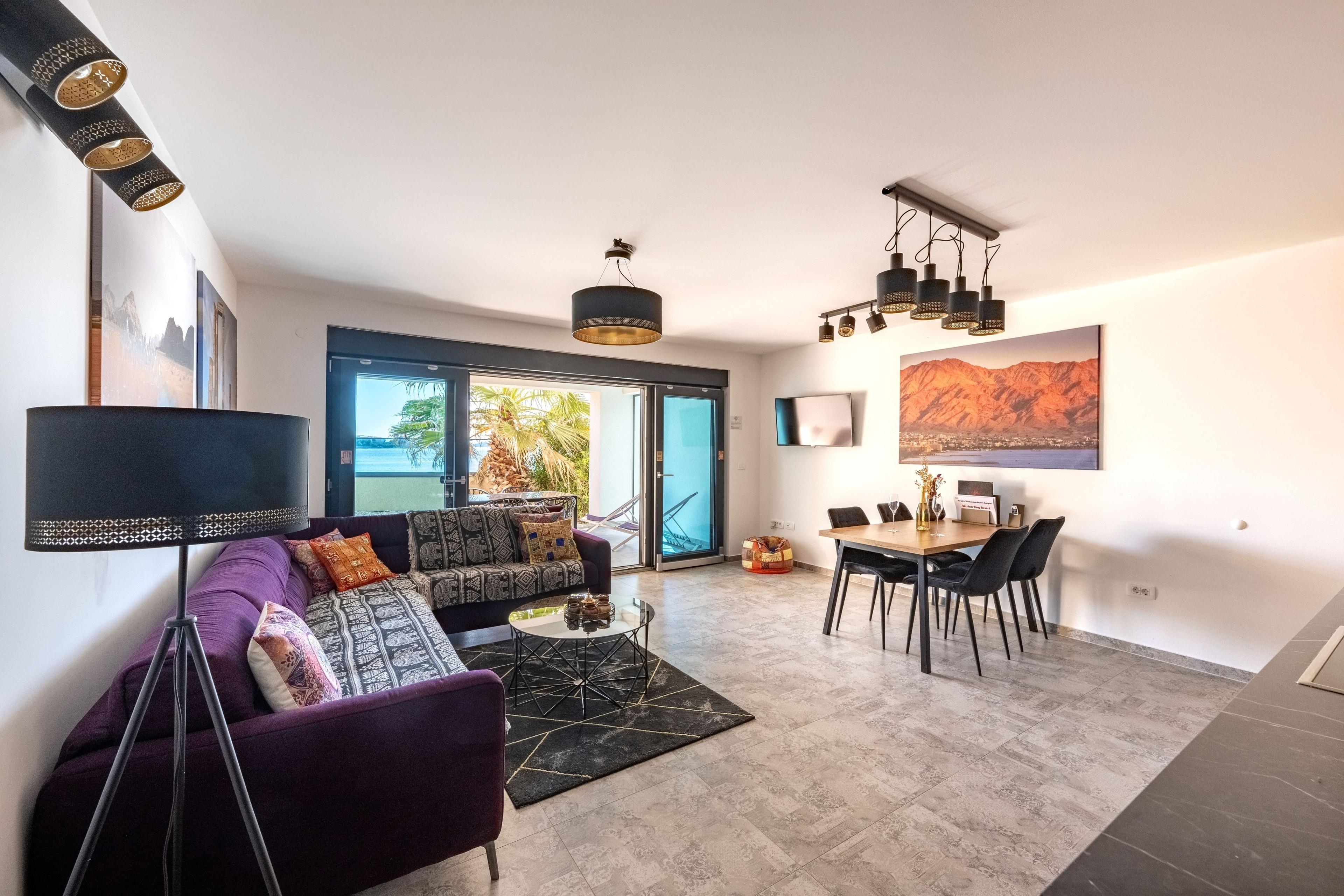 Designer Apartment mit 78 m² ; Designerausstattung von NATUZZI; Garten zur Eigennutzung; direkt am Meer feinkörniger/sandiger Strand flach abfallend