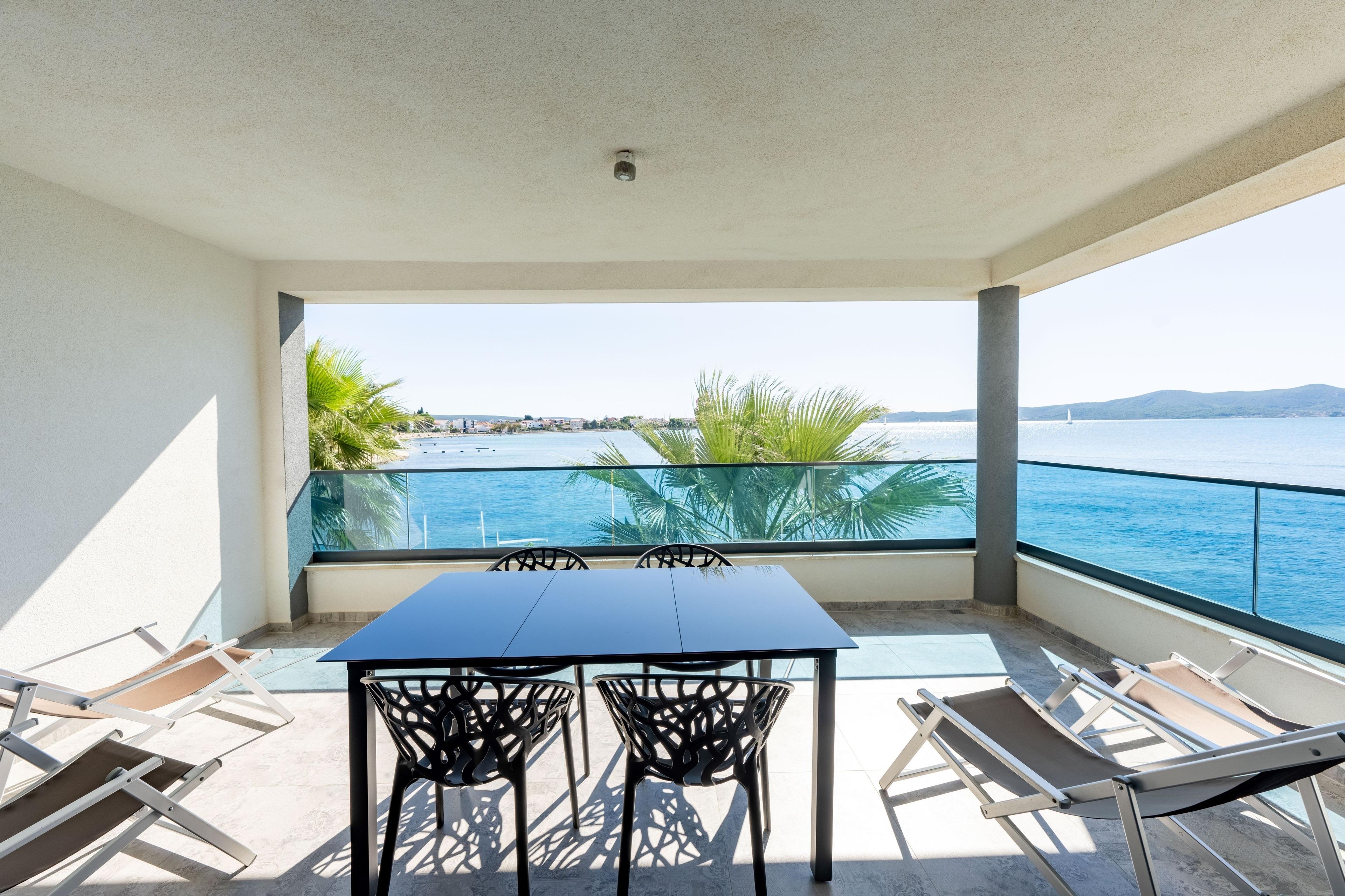 Terrasse mit outdoor Möbel und uneingeschränktem Meerblick