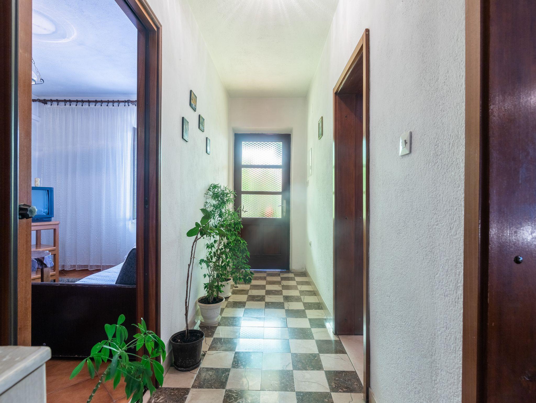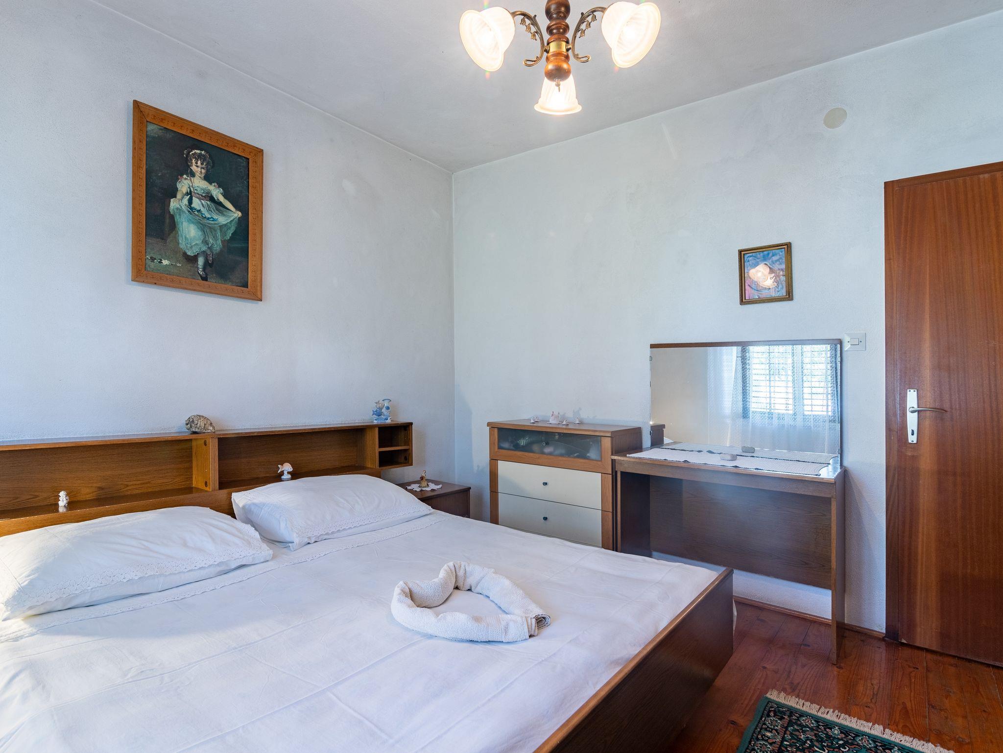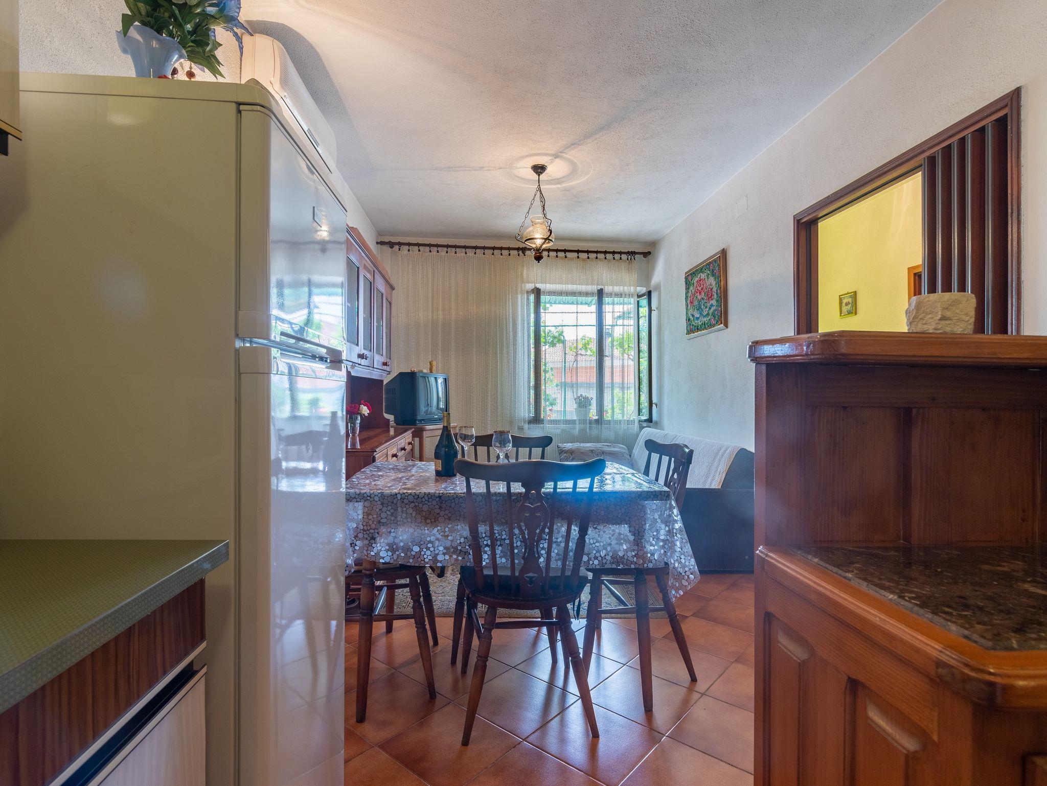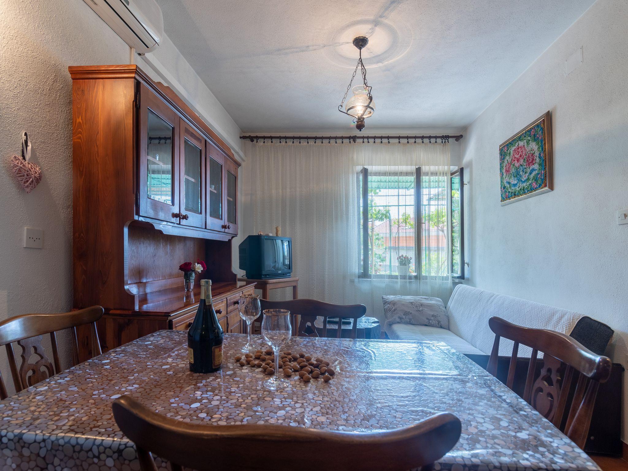 Ferienwohnung bietet Platz für 5 Gäste. Die Betten sind in Schlafzimmern, die es 2 gibt, und in Wohnzimmer, innerhalb einer Gesamtfläche von 53m2, angeordnet. Die Gäste haben eine eigene Terrasse zur Verfügung, auf der sie in warmen Sommernächten genießen können. Es ist erlaubt, Speisen auf dem Gemeinschafts-Grill vorzubereiten. IM PREIS INBEGRIFFEN: Kurtaxe, Endreinigung, Klimatisierung, Parkplatz, Internet, Bügeleisen, Bügelbrett, Föhn, Sonnenschirm, Liegestühle. VERBINDLICHE ZUSÄTZLICHE KOSTEN: Aufzahlung für Kurzaufenthalte (prozentualer Zuschlag pro Nächtigungsanzahl: 30% - 1, 20% - 2, 10% - 3). UNVERBINDLICHE ZUSÄTZLICHE KOSTEN: Wäschewaschen (5,00 € Waschen). Die Verfügbarkeit zusätzlicher Dienstleistungen in Ihrem reservierten Termin und die Preise derselben (falls nicht aufgeführt) müssen im Voraus überprüft werden. Zusätzliche Dienstleistungen die in der Zahlungsaufforderung nicht aufgeführt sind werden direkt beim Vermieter bezahlt, angenommen der Gast nutzt auch diese.