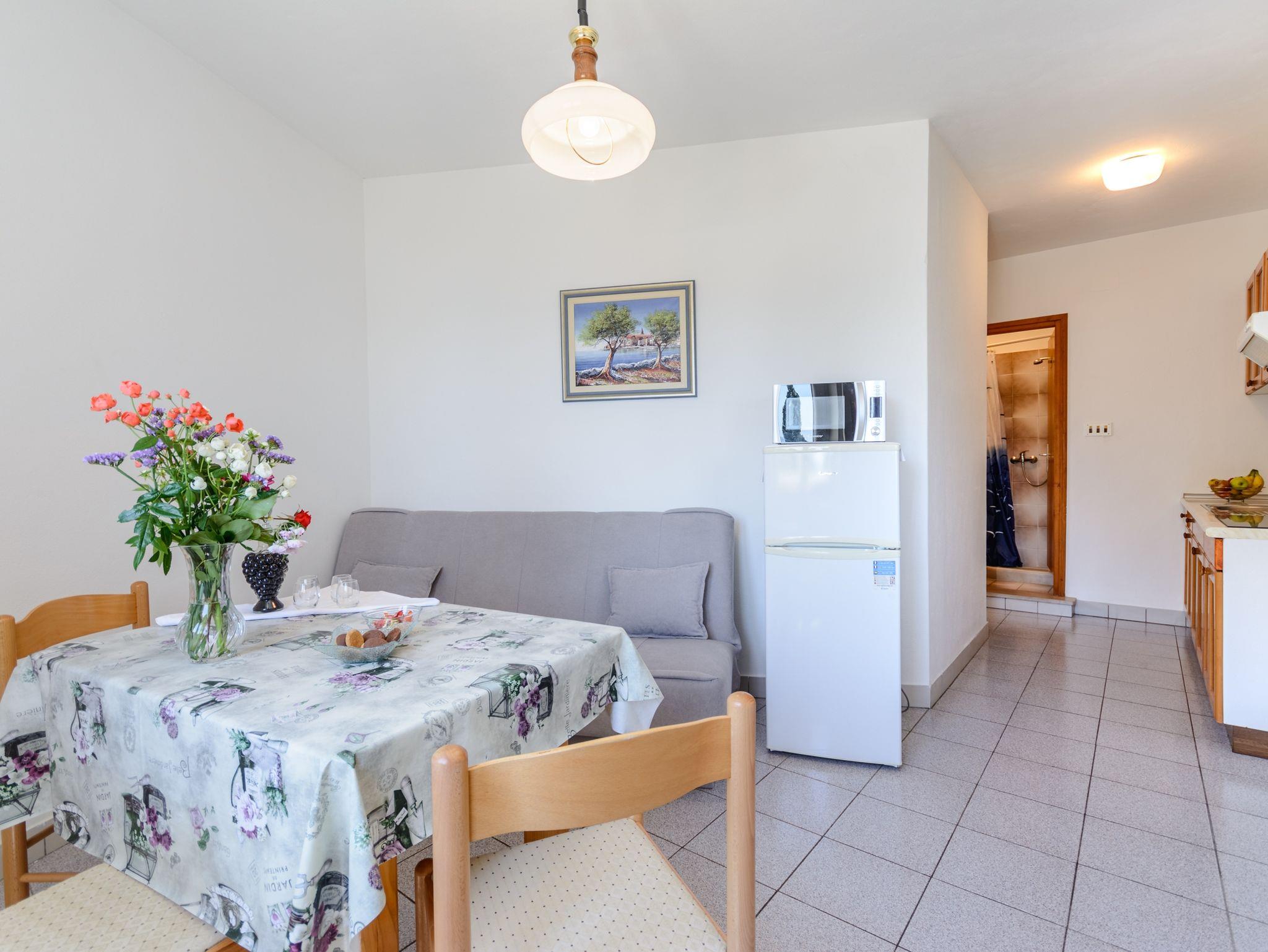 Ferienwohnung bietet Platz für 2 Gäste. Die Betten sind in Schlafzimmern, die es 1 gibt, innerhalb einer Gesamtfläche von 22m2, angeordnet. Das Apartment bietet Meerblick. Es ist erlaubt, Speisen auf dem Gemeinschafts-Grill vorzubereiten. Die reservierte Unterkunftseinheit verfügt über einen gemeinsame Terrasse. IM PREIS INBEGRIFFEN: Kurtaxe, Endreinigung, Klimatisierung, Parkplatz, Internet, Fahrrad, Bügeleisen, Bügelbrett, Föhn. VERBINDLICHE ZUSÄTZLICHE KOSTEN: Aufzahlung für Kurzaufenthalte (prozentualer Zuschlag pro Nächtigungsanzahl: 30% - 1, 20% - 2, 10% - 3). UNVERBINDLICHE ZUSÄTZLICHE KOSTEN: Wäschewaschen (5,00 € Waschen). Die Verfügbarkeit zusätzlicher Dienstleistungen in Ihrem reservierten Termin und die Preise derselben (falls nicht aufgeführt) müssen im Voraus überprüft werden. Zusätzliche Dienstleistungen die in der Zahlungsaufforderung nicht aufgeführt sind werden direkt beim Vermieter bezahlt, angenommen der Gast nutzt auch diese.