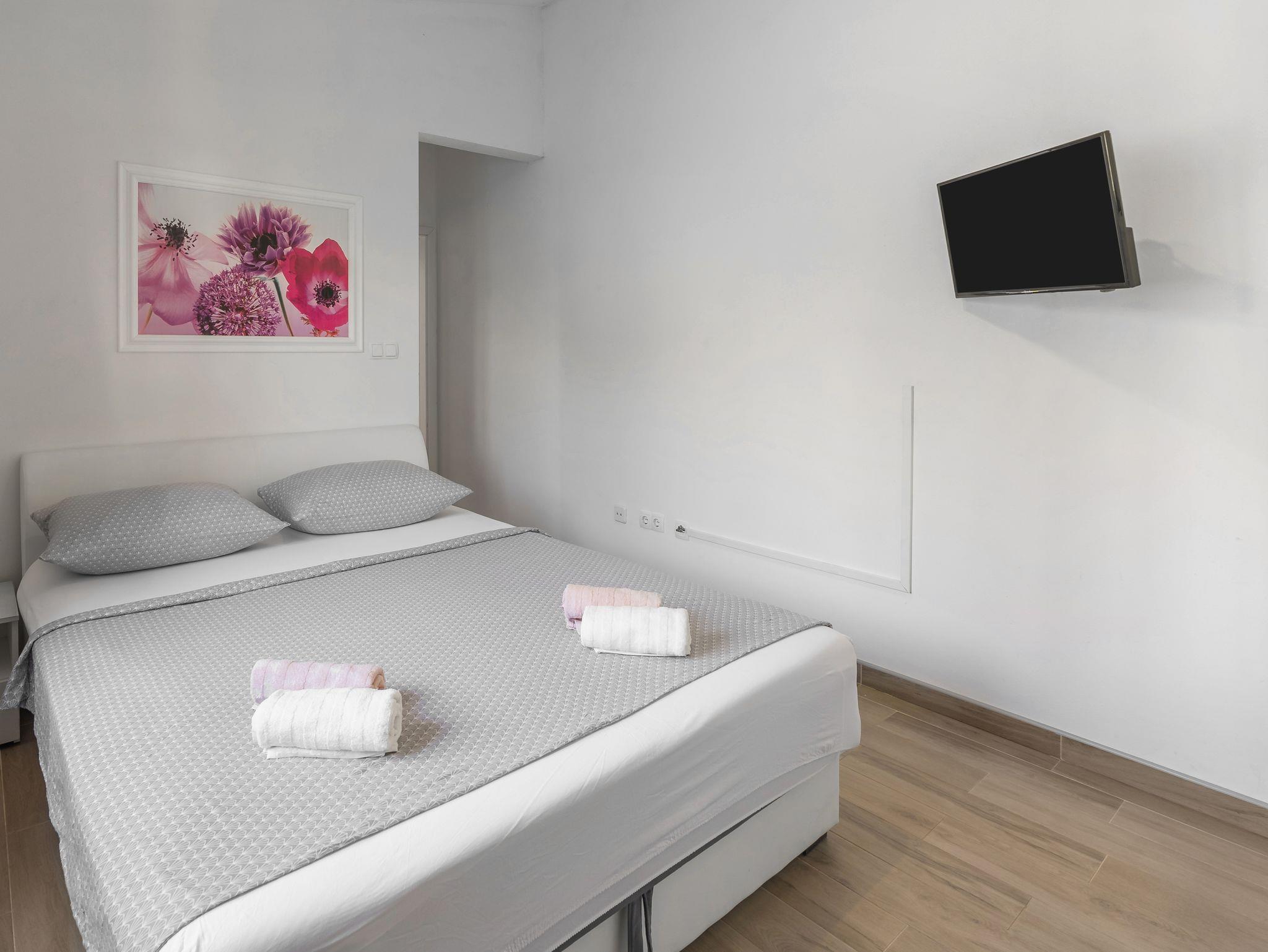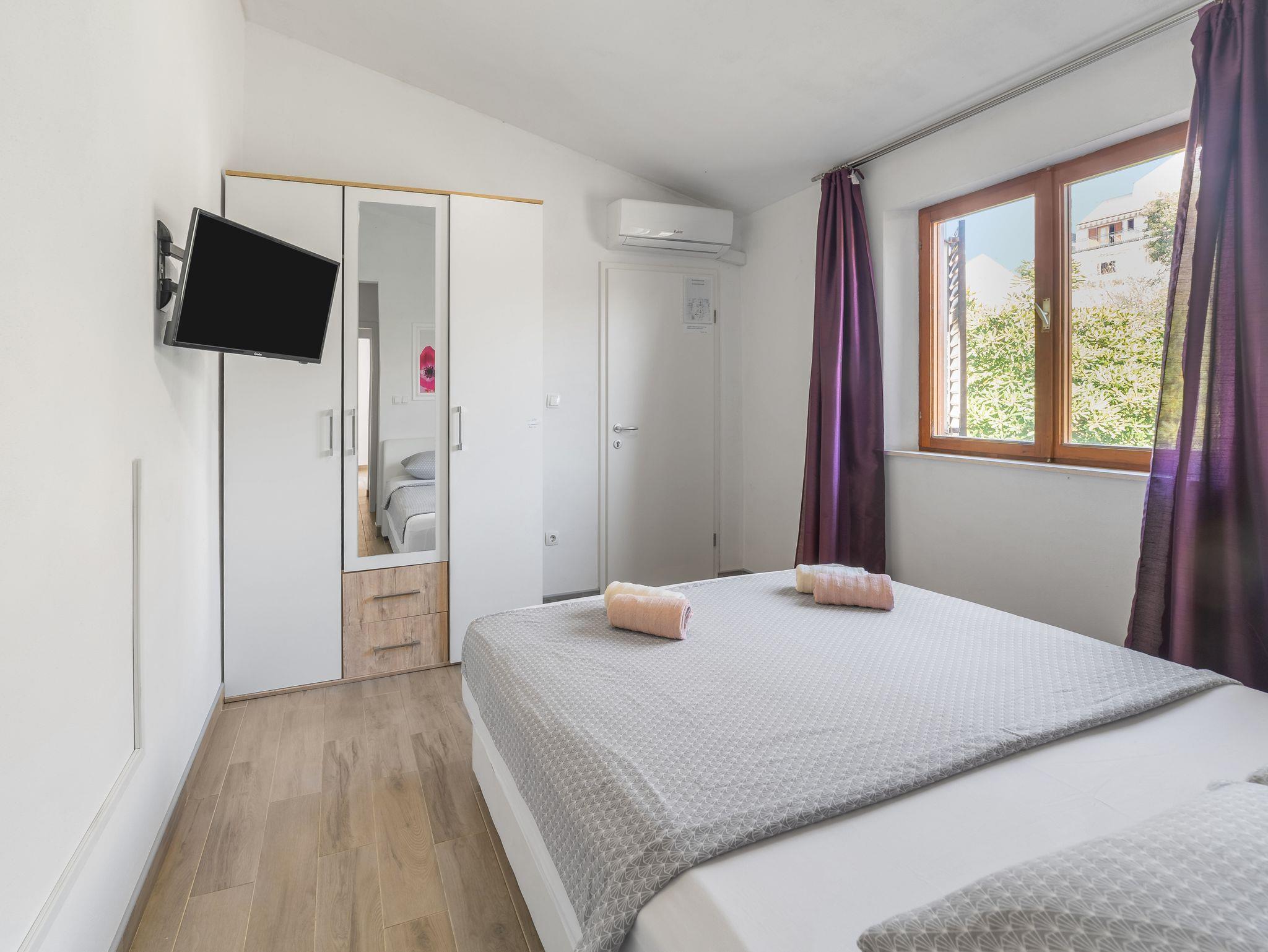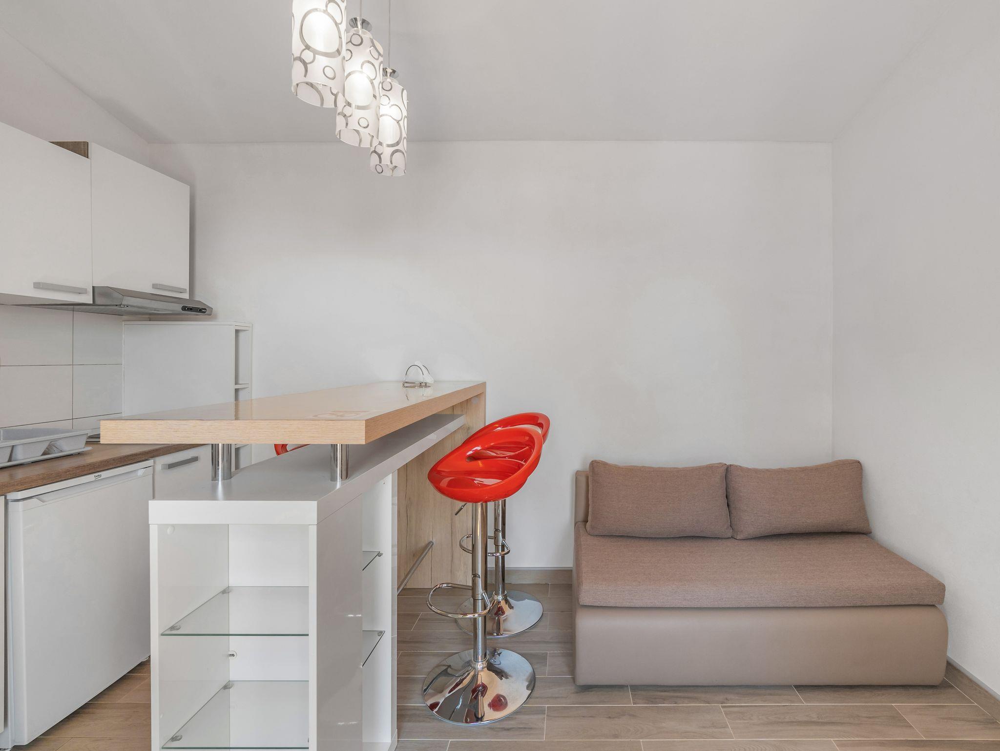 Ferienwohnung bietet Platz für 3 Gäste. Die Betten sind in Schlafzimmern, die es 1 gibt, und in Wohnzimmer, innerhalb einer Gesamtfläche von 22m2, angeordnet. Die Gäste haben einen eigenen Balkon zur Verfügung, auf der sie in warmen Sommernächten genießen können. Das Apartment bietet Meerblick. In der Unterkunftseinheit besteht die Möglichkeit des Mitbringens von Haustieren gegen Aufpreis. IM PREIS INBEGRIFFEN: Kurtaxe, Endreinigung, Klimatisierung, Parkplatz, Internet, Kinderbett, Bügeleisen, Bügelbrett, Föhn. VERBINDLICHE ZUSÄTZLICHE KOSTEN: Aufzahlung für Kurzaufenthalte (prozentualer Zuschlag pro Nächtigungsanzahl: 30% - 1, 20% - 2, 10% - 3). UNVERBINDLICHE ZUSÄTZLICHE KOSTEN: Haustiere (5,00 € pro Nacht). Die Verfügbarkeit zusätzlicher Dienstleistungen in Ihrem reservierten Termin und die Preise derselben (falls nicht aufgeführt) müssen im Voraus überprüft werden. Zusätzliche Dienstleistungen die in der Zahlungsaufforderung nicht aufgeführt sind werden direkt beim Vermieter bezahlt, angenommen der Gast nutzt auch diese. Ermäßigung auf den Grundpreis: Gratistag 14=13 (bei einem Aufenthalt von 14 Tagen oder mehr erhalten Sie einen Gratistag für den Aufenthalt bis 31.12.26).