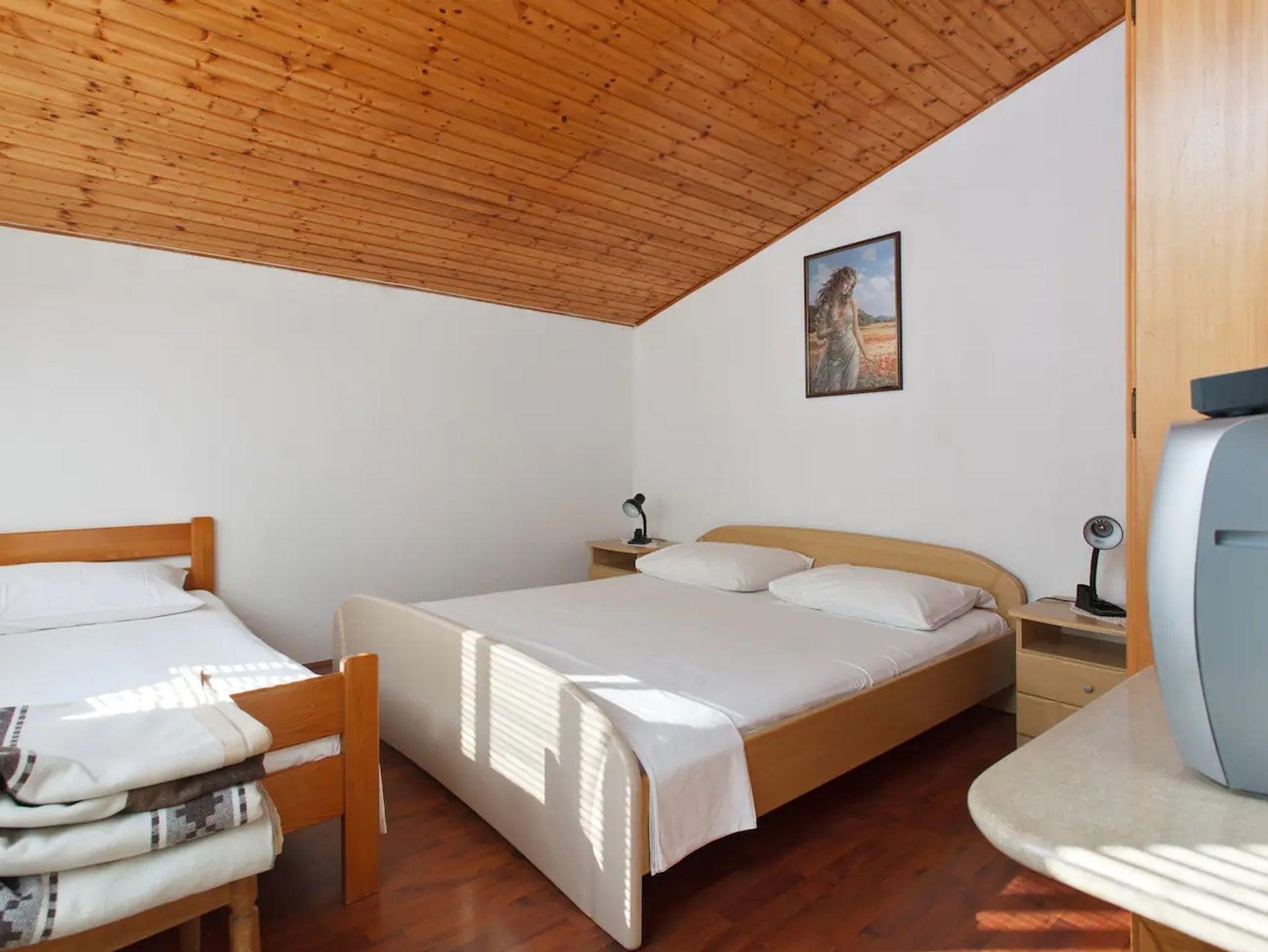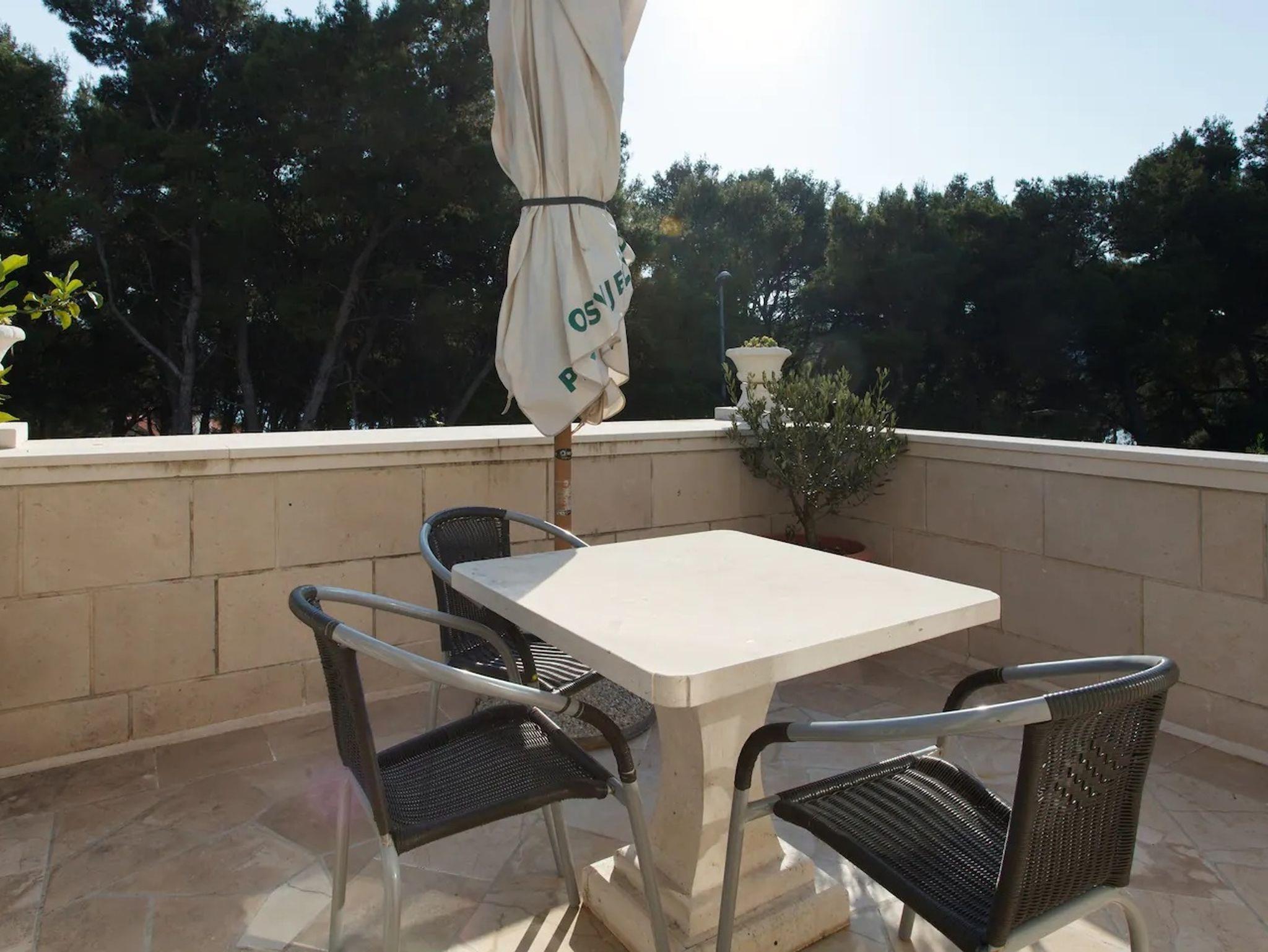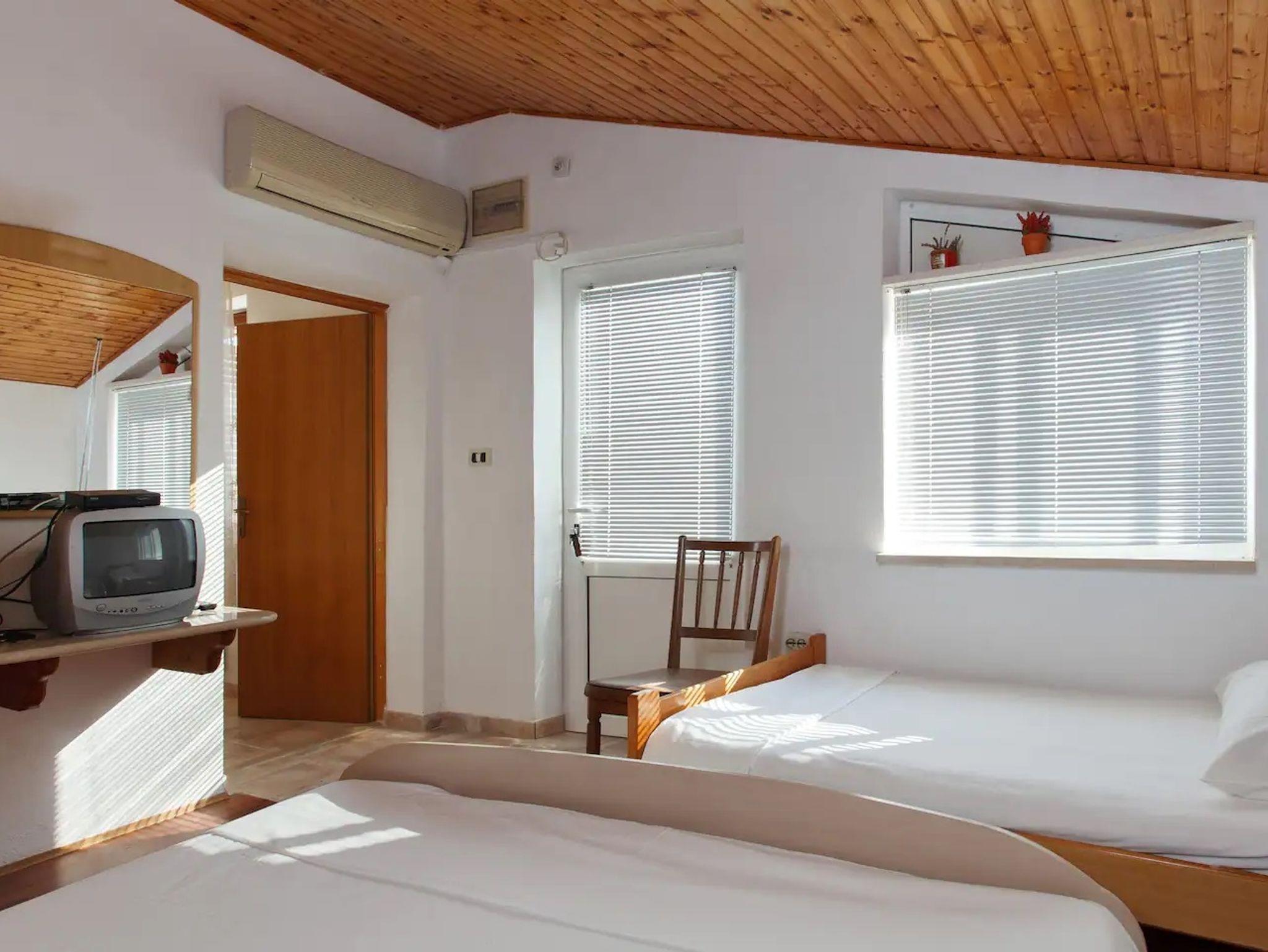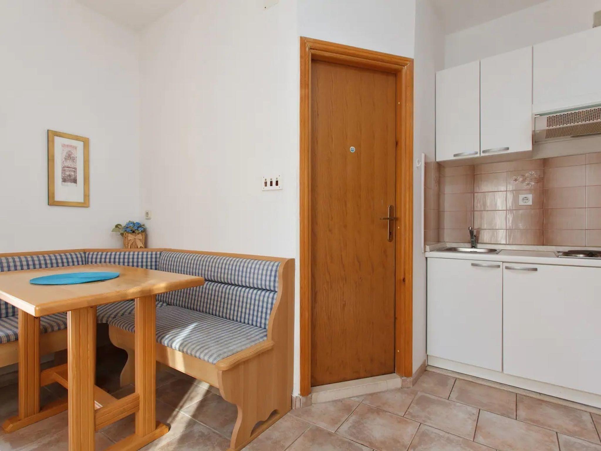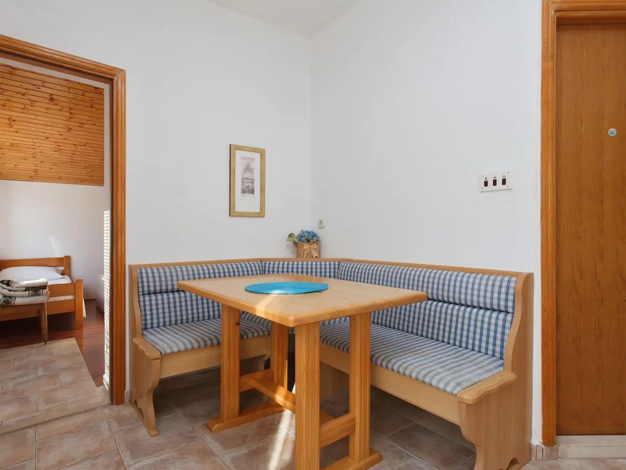 Ferienwohnung bietet Platz für 3 Gäste. Die Betten sind in Schlafzimmern, die es 1 gibt, innerhalb einer Gesamtfläche von 37m2, angeordnet. Die Gäste haben eine eigene Terrasse zur Verfügung, auf der sie in warmen Sommernächten genießen können. Das Apartment bietet Meerblick. Es ist erlaubt, Speisen auf dem Gemeinschafts-Grill vorzubereiten. IM PREIS INBEGRIFFEN: Kurtaxe, Endreinigung, Klimatisierung, Parkplatz, Internet, Wäschewaschen, Bootsanlegeplatz, Kinderbett, Föhn. VERBINDLICHE ZUSÄTZLICHE KOSTEN: Aufzahlung für Kurzaufenthalte (prozentualer Zuschlag pro Nächtigungsanzahl: 30% - 1, 20% - 2, 10% - 3). Die Verfügbarkeit zusätzlicher Dienstleistungen in Ihrem reservierten Termin und die Preise derselben (falls nicht aufgeführt) müssen im Voraus überprüft werden. Zusätzliche Dienstleistungen die in der Zahlungsaufforderung nicht aufgeführt sind werden direkt beim Vermieter bezahlt, angenommen der Gast nutzt auch diese. Ermäßigung auf den Grundpreis: Gratistag 14=13 (bei einem Aufenthalt von 14 Tagen oder mehr erhalten Sie einen Gratistag für den Aufenthalt bis 31.12.26).