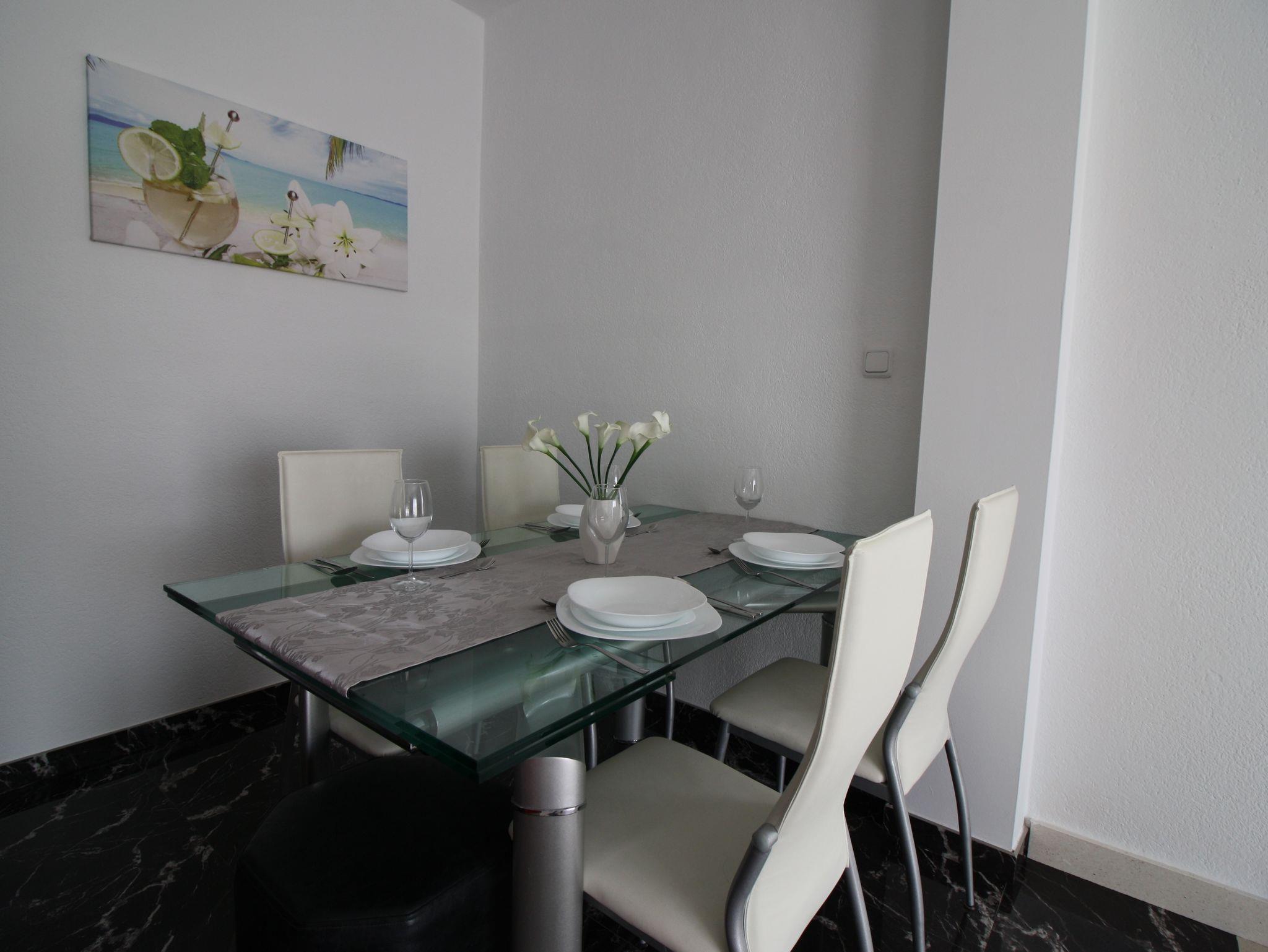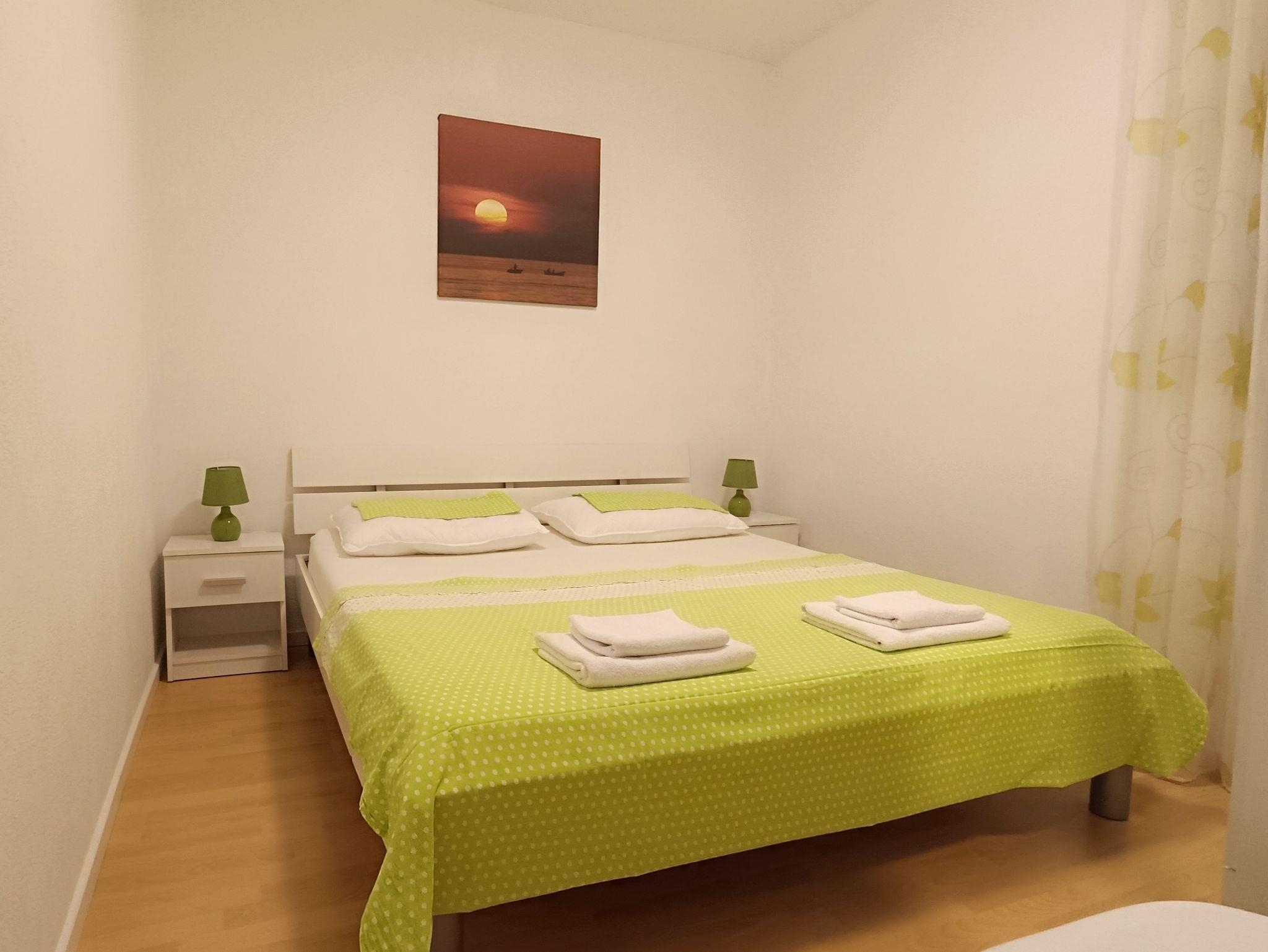 Ferienwohnung bietet Platz für 6 Gäste. Die Betten sind in Schlafzimmern, die es 3 gibt, innerhalb einer Gesamtfläche von 76m2, angeordnet. Die Gäste haben eine eigene Terrasse zur Verfügung, auf der sie in warmen Sommernächten genießen können. Das Apartment bietet Meerblick. IM PREIS INBEGRIFFEN: Kurtaxe, Endreinigung, Klimatisierung, Parkplatz, Garage, Internet, Bügeleisen, Bügelbrett, Föhn. Die Verfügbarkeit zusätzlicher Dienstleistungen in Ihrem reservierten Termin und die Preise derselben (falls nicht aufgeführt) müssen im Voraus überprüft werden. Zusätzliche Dienstleistungen die in der Zahlungsaufforderung nicht aufgeführt sind werden direkt beim Vermieter bezahlt, angenommen der Gast nutzt auch diese. Ermäßigung auf den Grundpreis: Gratistag 14=13 (bei einem Aufenthalt von 14 Tagen oder mehr erhalten Sie einen Gratistag für den Aufenthalt bis 31.12.26).