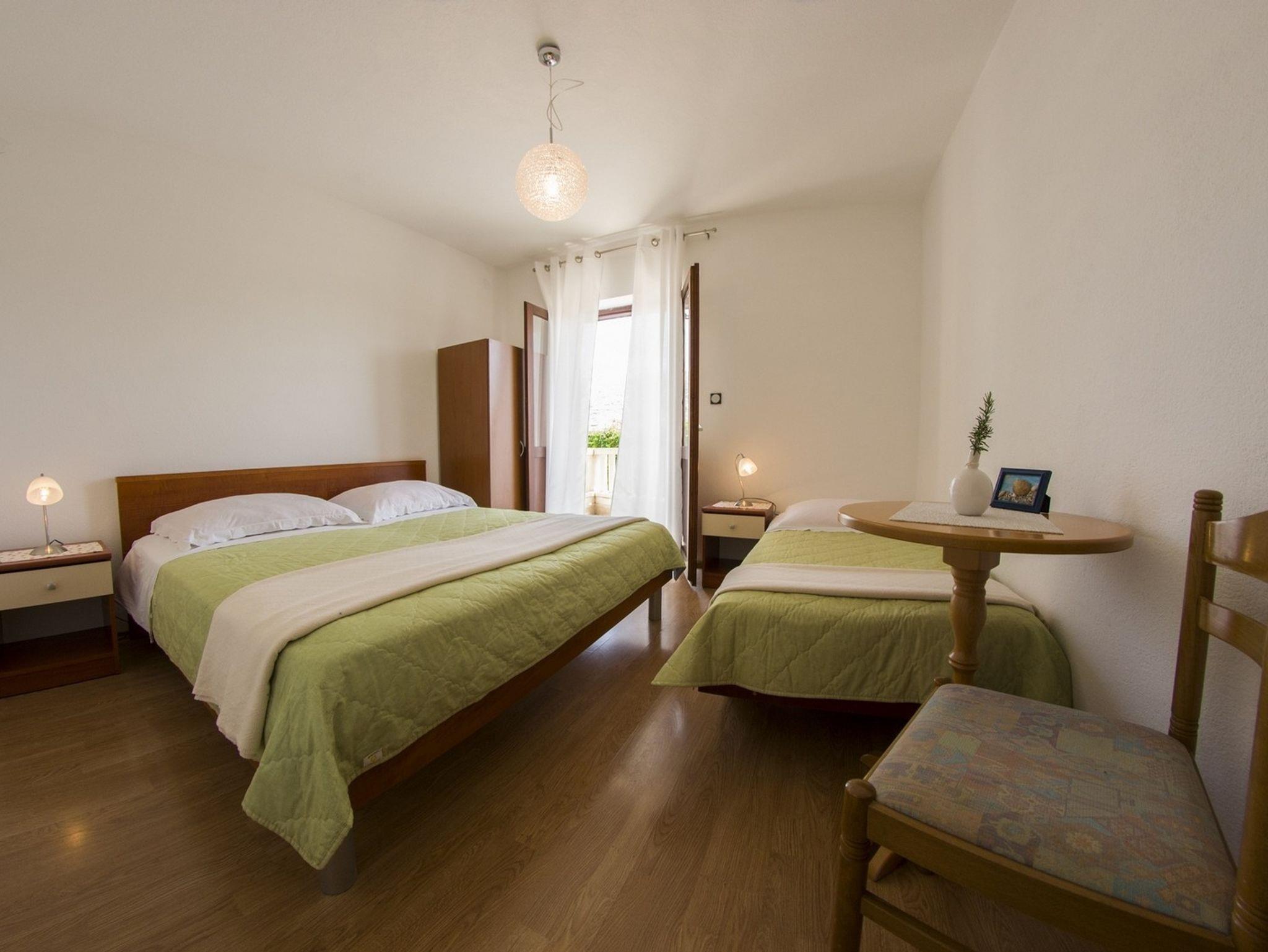 Ferienwohnung bietet Platz für 5 Gäste. Die Betten sind in Schlafzimmern, die es 2 gibt, innerhalb einer Gesamtfläche von 43m2, angeordnet. Die Gäste haben eine eigene Terrasse zur Verfügung, auf der sie in warmen Sommernächten genießen können. Das Apartment bietet Meerblick. Es ist erlaubt, Speisen auf dem Gemeinschafts-Grill vorzubereiten. In der Unterkunftseinheit besteht die Möglichkeit des Mitbringens von Haustieren, und die Dienstleistung ist im Preis der Unterkunft enthalten. IM PREIS INBEGRIFFEN: Kurtaxe, Endreinigung, Klimatisierung, Garage, Internet, Haustiere, Bügeleisen, Bügelbrett, Föhn. Die Verfügbarkeit zusätzlicher Dienstleistungen in Ihrem reservierten Termin und die Preise derselben (falls nicht aufgeführt) müssen im Voraus überprüft werden. Zusätzliche Dienstleistungen die in der Zahlungsaufforderung nicht aufgeführt sind werden direkt beim Vermieter bezahlt, angenommen der Gast nutzt auch diese. Ermäßigung auf den Grundpreis: Gratistag 14=13 (bei einem Aufenthalt von 14 Tagen oder mehr erhalten Sie einen Gratistag für den Aufenthalt bis 31.12.26).