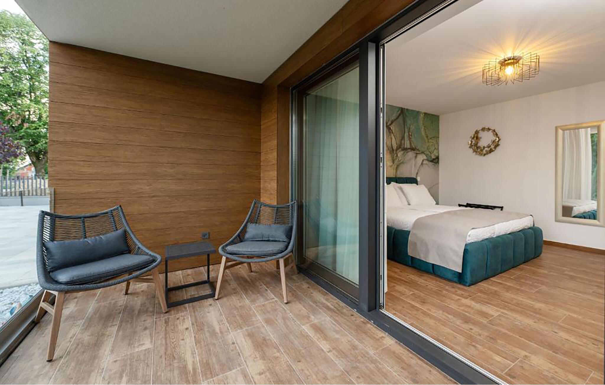 Det rummelige udendørsområde tilbyder en række aktiviteter. Tag en dukkert i den forfriskende pool og svøm et par baner eller test jeres færdigheder i badminton og volleyball. For de yngste gæster er der en gynge, en rutsjebane og udendørsspil.
