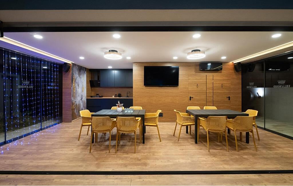 Dette stilfulde hus kombinerer moderne design med underspillet elegance. Lyse farver, materialer af høj kvalitet og masser af naturligt lys skaber en atmosfære af fred og komfort. Her kan I slappe af i den store sofa, nyde et godt glas vin eller tilbringe en aften med at spille spil sammen ved spisebordet. Hvis I leder efter ren afslapning, kan I slappe af i saunaen.