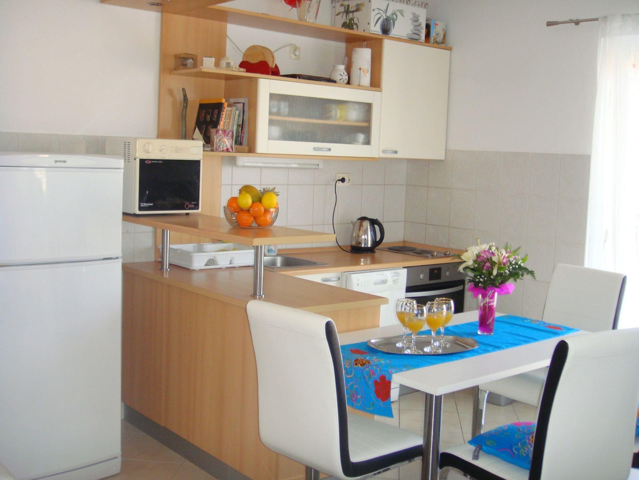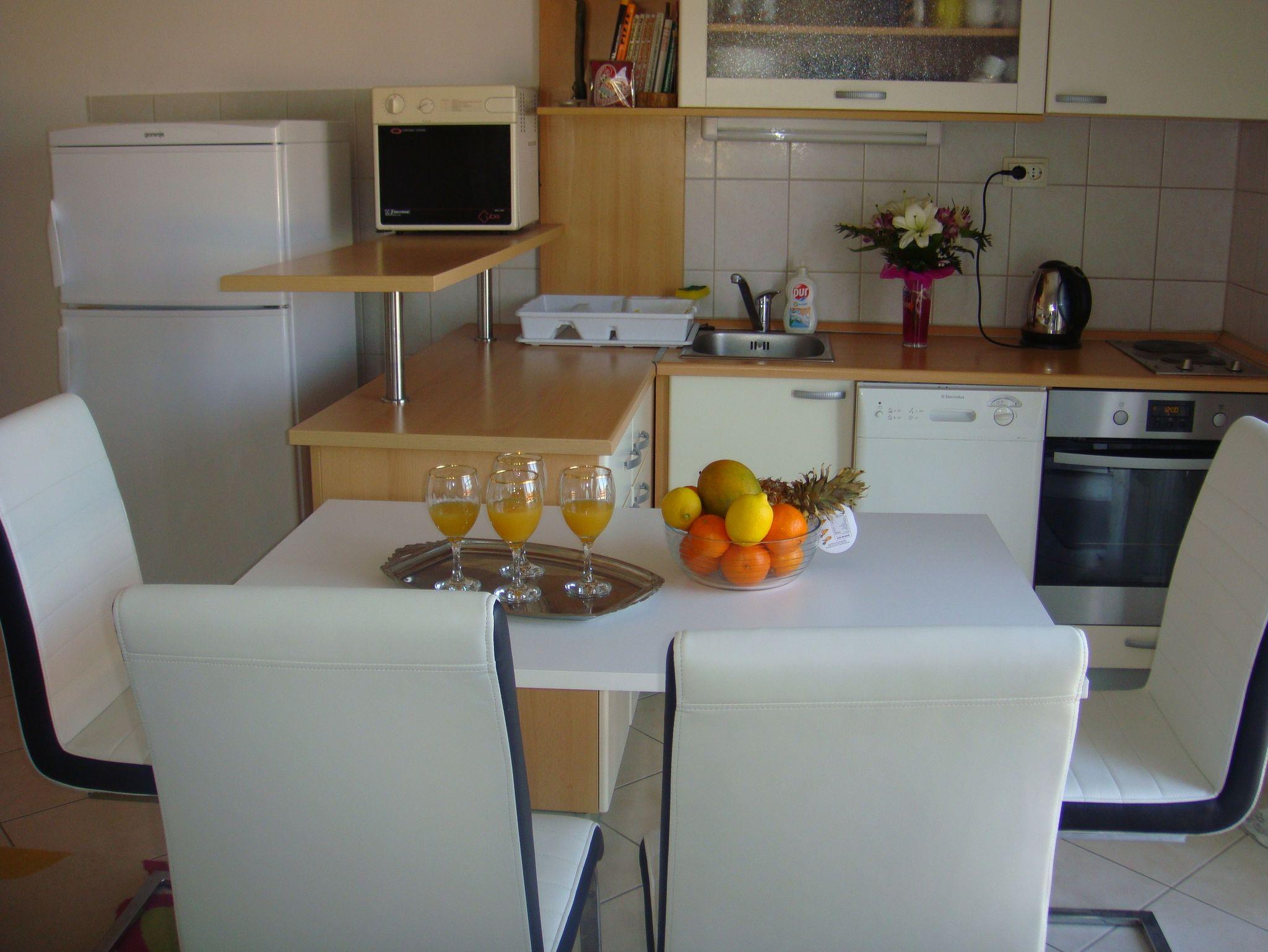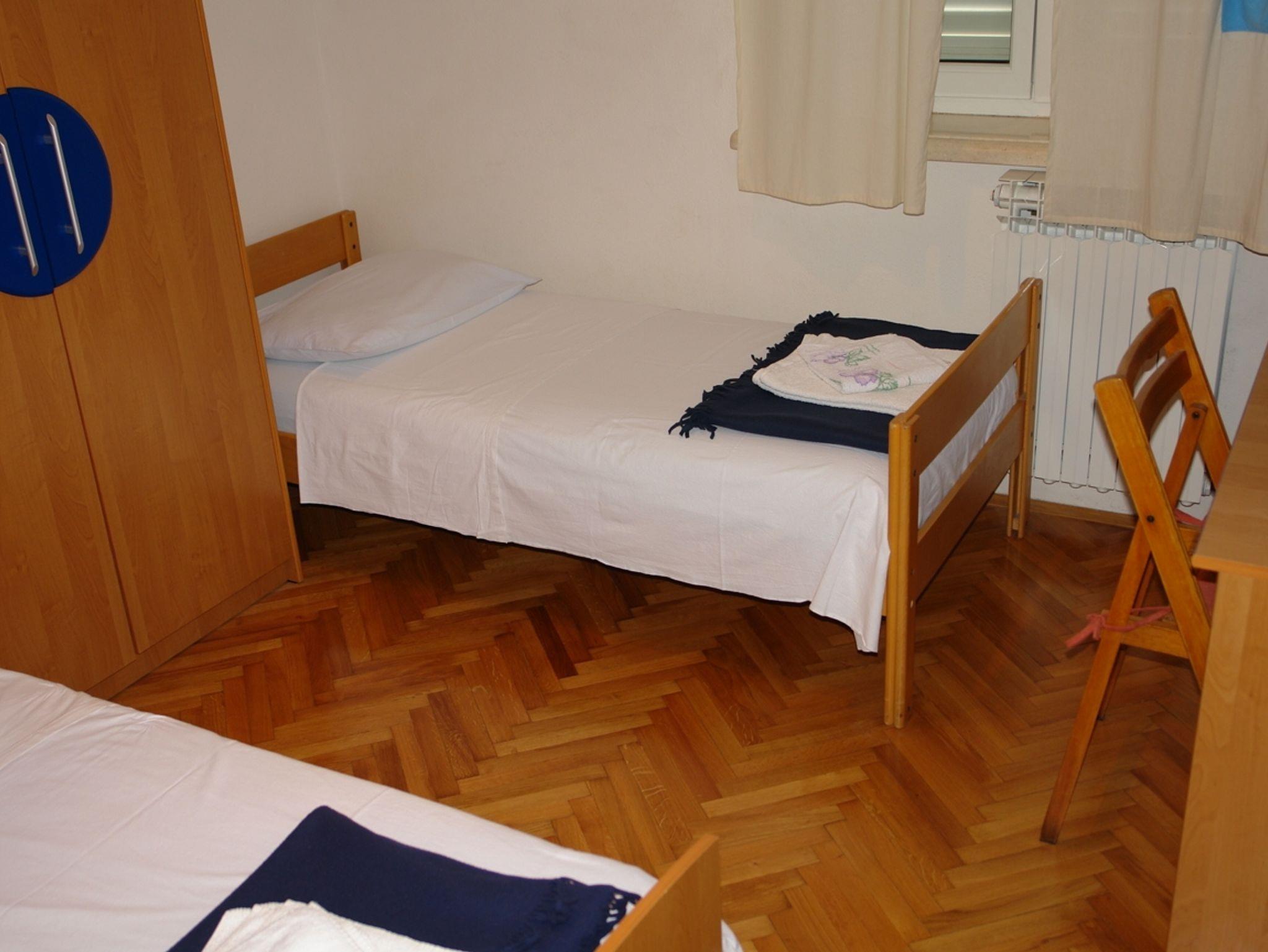 Ferienwohnung bietet Platz für 5 Gäste. Die Betten sind in Schlafzimmern, die es 2 gibt, und in Wohnzimmer, innerhalb einer Gesamtfläche von 50m2, angeordnet. Die Gäste haben einen eigenen Balkon zur Verfügung, auf der sie in warmen Sommernächten genießen können. Das Apartment bietet Meerblick. Es ist erlaubt, Speisen auf dem Gemeinschafts-Grill vorzubereiten. IM PREIS INBEGRIFFEN: Kurtaxe, Endreinigung, Klimatisierung, Parkplatz, Internet, Kinderbett, Bügeleisen, Bügelbrett, Föhn. VERBINDLICHE ZUSÄTZLICHE KOSTEN: Aufzahlung für Kurzaufenthalte (prozentualer Zuschlag pro Nächtigungsanzahl: 30% - 1, 20% - 2, 10% - 3). Die Verfügbarkeit zusätzlicher Dienstleistungen in Ihrem reservierten Termin und die Preise derselben (falls nicht aufgeführt) müssen im Voraus überprüft werden. Zusätzliche Dienstleistungen die in der Zahlungsaufforderung nicht aufgeführt sind werden direkt beim Vermieter bezahlt, angenommen der Gast nutzt auch diese. Ermäßigung auf den Grundpreis: Gratistag 14=13 (bei einem Aufenthalt von 14 Tagen oder mehr erhalten Sie einen Gratistag für den Aufenthalt bis 31.12.26).