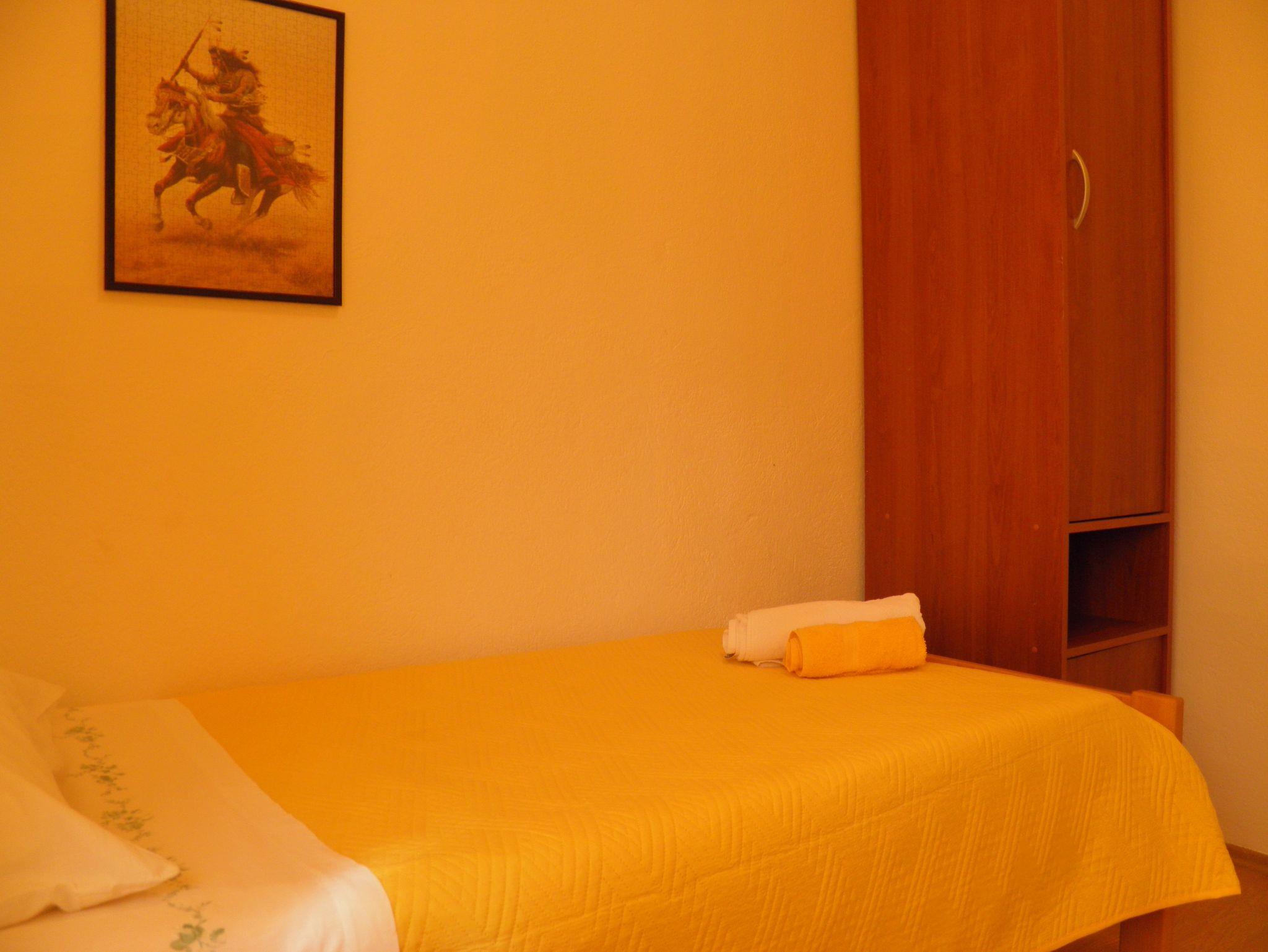 Ferienwohnung bietet Platz für 6 Gäste. Die Betten sind in Schlafzimmern, die es 3 gibt, innerhalb einer Gesamtfläche von 57m2, angeordnet. Die Gäste haben eine eigene Terrasse zur Verfügung, auf der sie in warmen Sommernächten genießen können. Es ist erlaubt, Speisen auf dem Gemeinschafts-Grill vorzubereiten. IM PREIS INBEGRIFFEN: Kurtaxe, Endreinigung, Klimatisierung, Parkplatz, Internet, Kinderbett, Bügeleisen, Bügelbrett, Föhn, tragbarer Grill. VERBINDLICHE ZUSÄTZLICHE KOSTEN: Aufzahlung für Kurzaufenthalte (prozentualer Zuschlag pro Nächtigungsanzahl: 30% - 1, 20% - 2, 10% - 3). Die Verfügbarkeit zusätzlicher Dienstleistungen in Ihrem reservierten Termin und die Preise derselben (falls nicht aufgeführt) müssen im Voraus überprüft werden. Zusätzliche Dienstleistungen die in der Zahlungsaufforderung nicht aufgeführt sind werden direkt beim Vermieter bezahlt, angenommen der Gast nutzt auch diese. Ermäßigung auf den Grundpreis: Gratistag 14=13 (bei einem Aufenthalt von 14 Tagen oder mehr erhalten Sie einen Gratistag für den Aufenthalt bis 31.12.26).