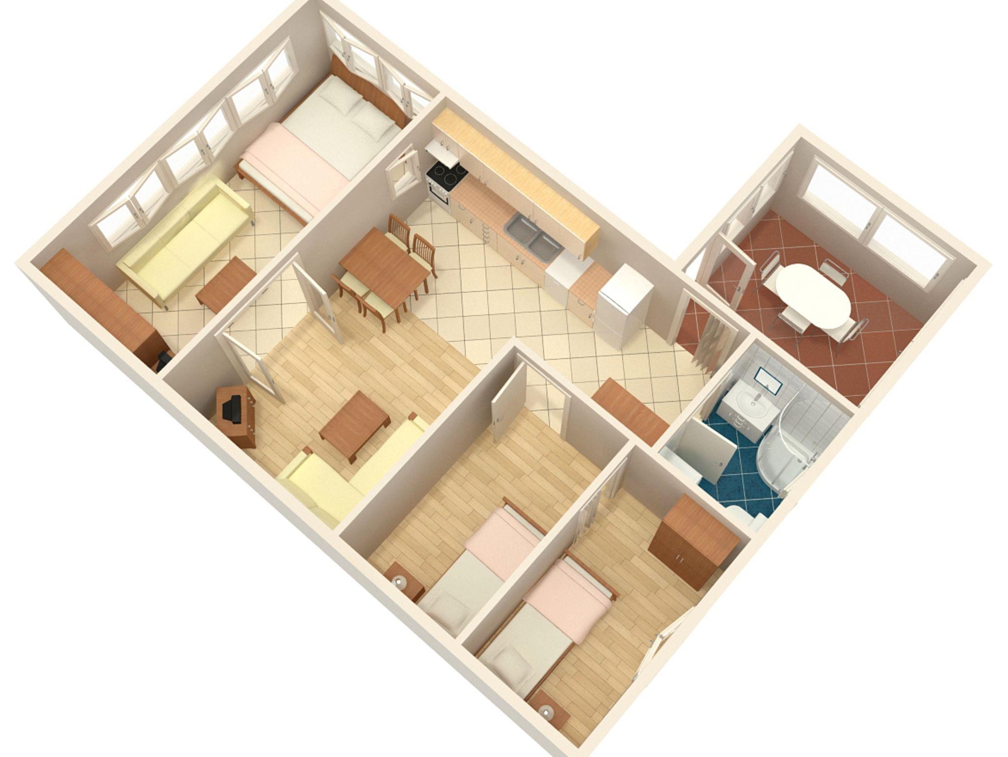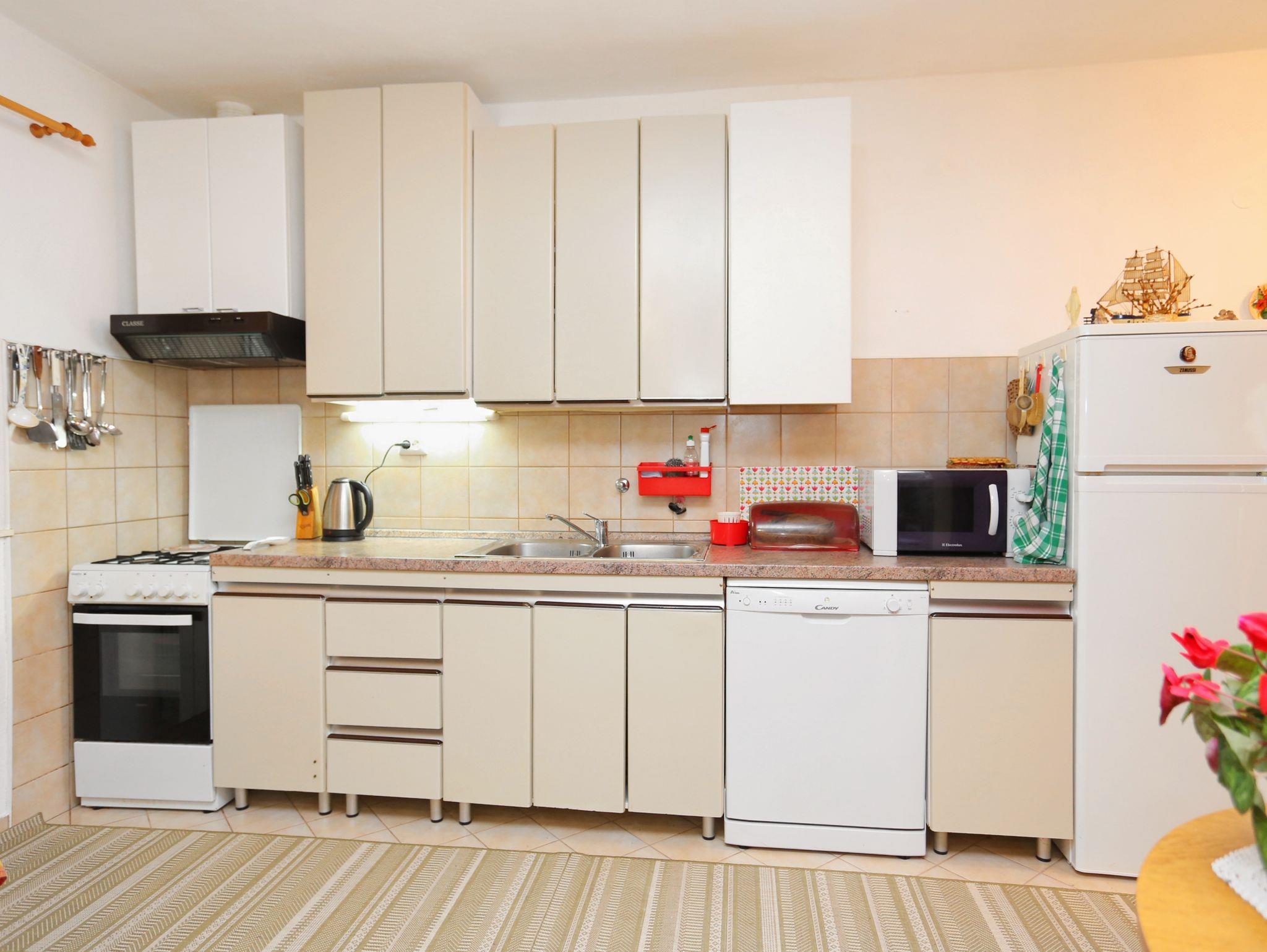 Ferienwohnung bietet Platz für 6 Gäste. Die Betten sind in Schlafzimmern, die es 3 gibt, und in Wohnzimmer, innerhalb einer Gesamtfläche von 48m2, angeordnet. Die Gäste haben eine eigene Terrasse zur Verfügung, auf der sie in warmen Sommernächten genießen können. Für vollen Genuss und Entspannung gibt es einen privaten Grill für Gäste dieser Unterkunft. In der Unterkunftseinheit besteht die Möglichkeit des Mitbringens von Haustieren gegen Aufpreis. Durch das Schlafzimmer der gebuchten Unterkunftseinheit geht man in die andere Räume der Einheit. IM PREIS INBEGRIFFEN: Kurtaxe, Endreinigung, Klimatisierung, Parkplatz, Internet, Bügeleisen, Bügelbrett, Föhn. UNVERBINDLICHE ZUSÄTZLICHE KOSTEN: Haustiere (8,00 € pro Nacht). Die Verfügbarkeit zusätzlicher Dienstleistungen in Ihrem reservierten Termin und die Preise derselben (falls nicht aufgeführt) müssen im Voraus überprüft werden. Zusätzliche Dienstleistungen die in der Zahlungsaufforderung nicht aufgeführt sind werden direkt beim Vermieter bezahlt, angenommen der Gast nutzt auch diese.
