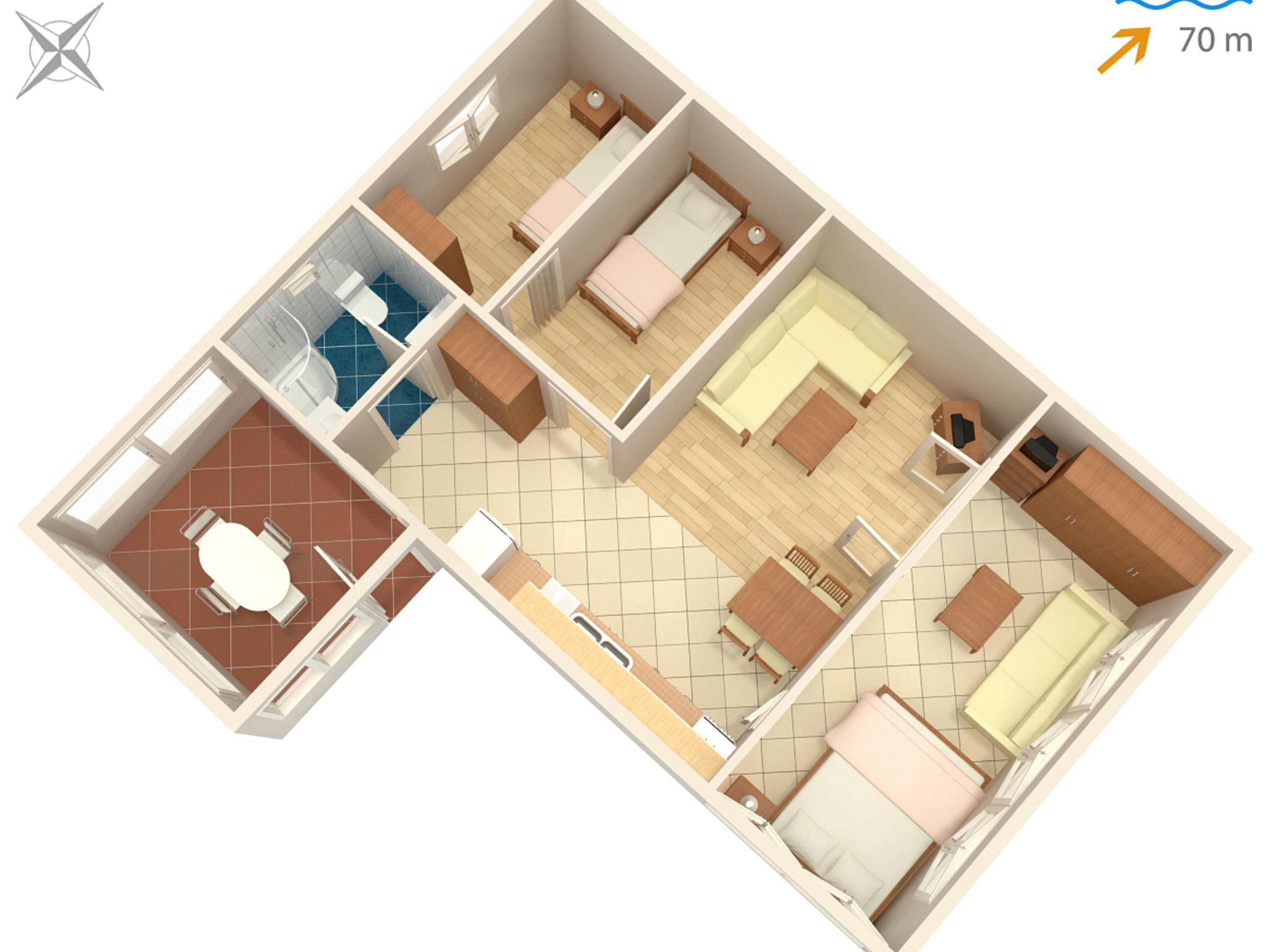 • Meer: 70 m