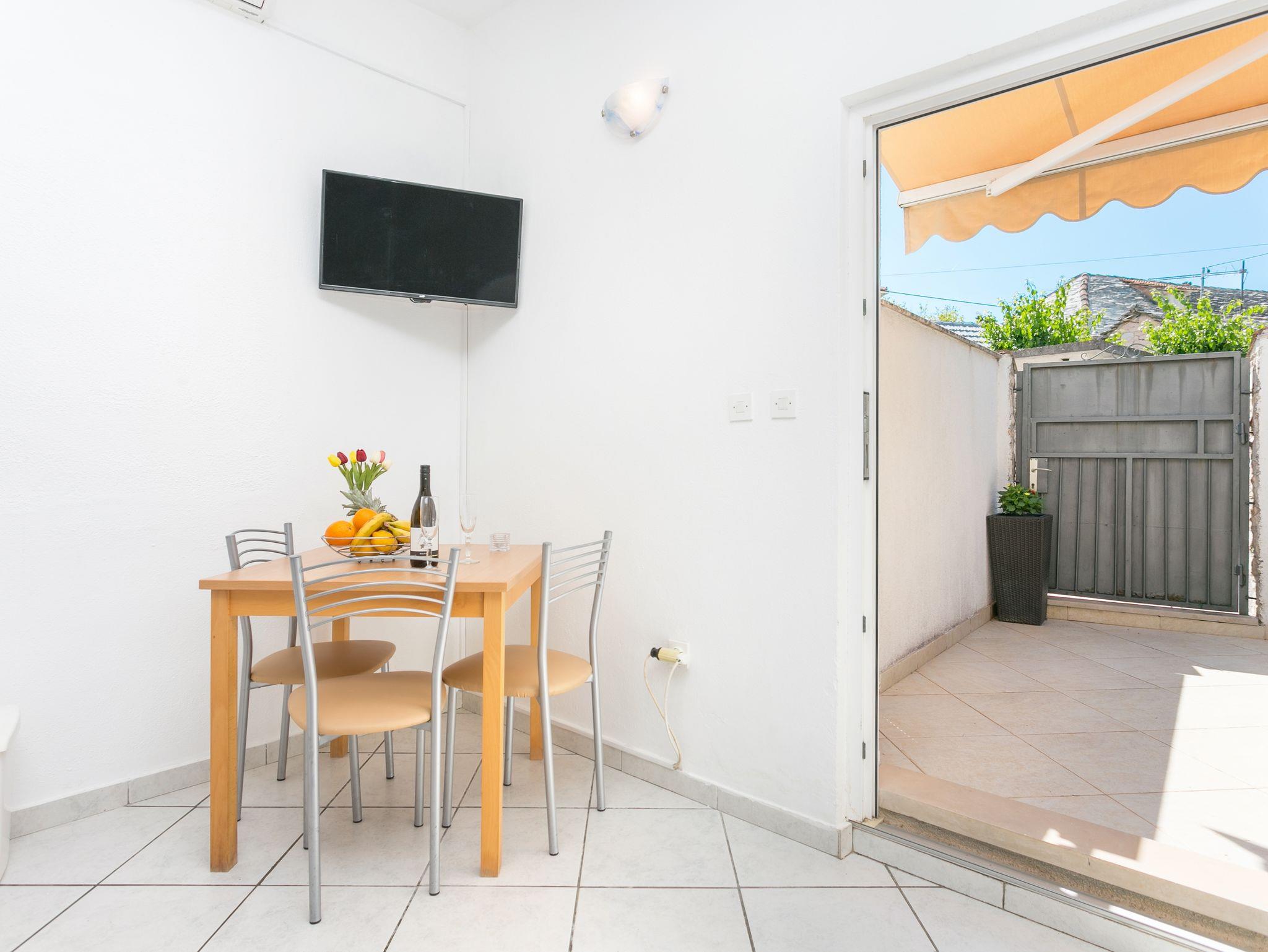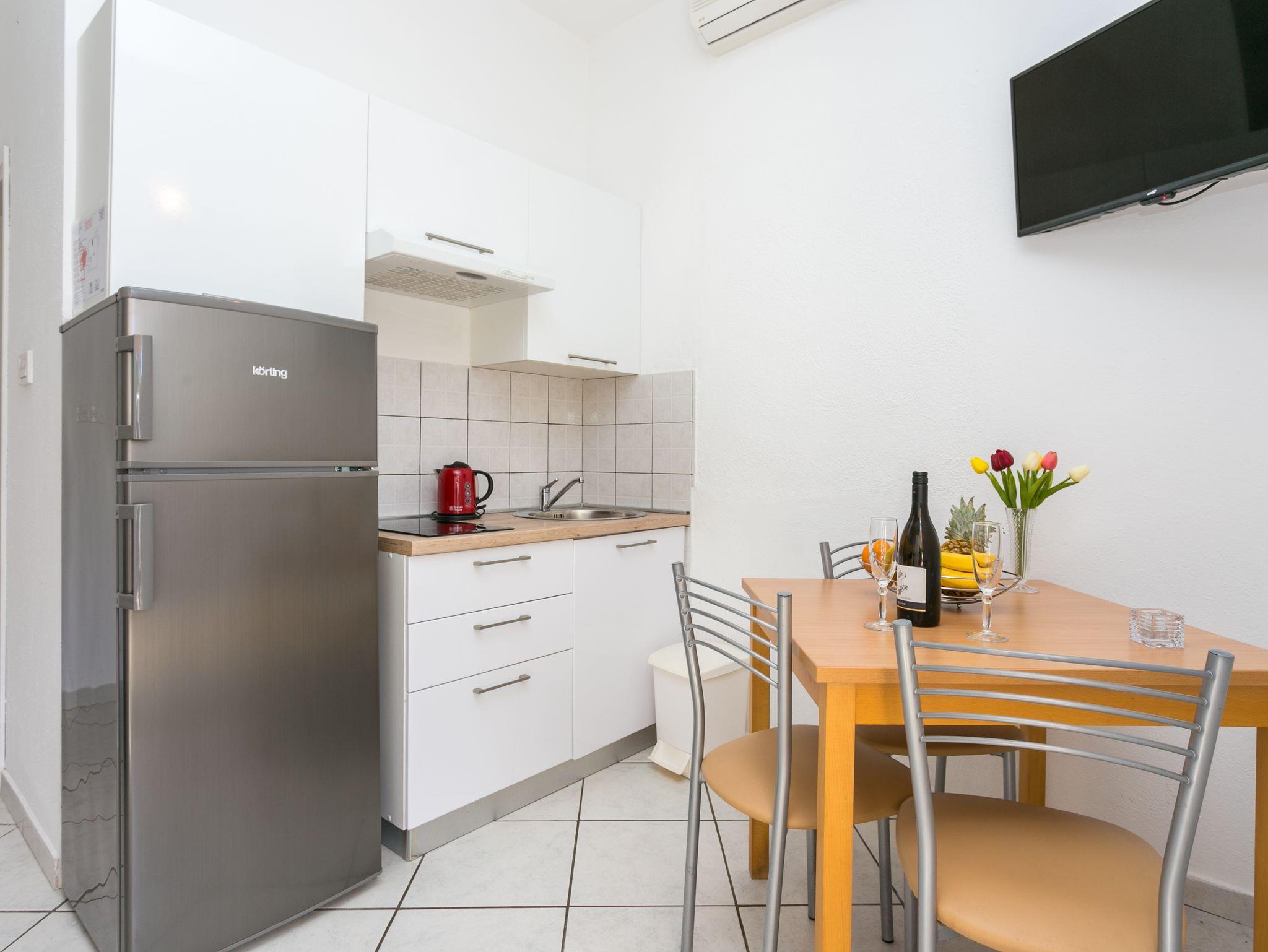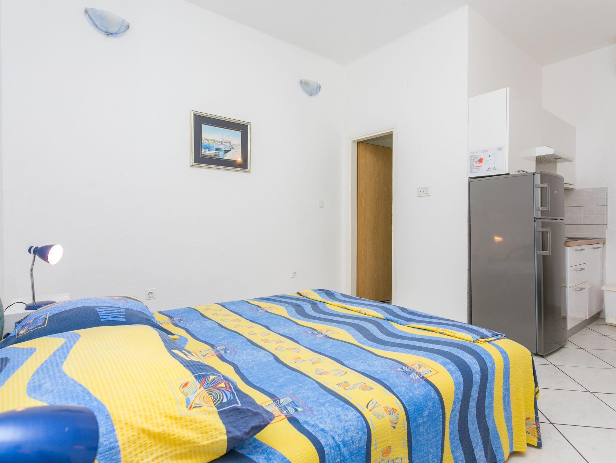 Studio bietet Platz für 2 Gäste. Die Betten sind in Schlafzimmern, die es 1 gibt, innerhalb einer Gesamtfläche von 24m2, angeordnet. Die Gäste haben eine eigene Terrasse zur Verfügung, auf der sie in warmen Sommernächten genießen können. Es ist erlaubt, Speisen auf dem Gemeinschafts-Grill vorzubereiten. IM PREIS INBEGRIFFEN: Kurtaxe, Endreinigung, Klimatisierung, Parkplatz, Internet, Kinderbett, Bügeleisen, Bügelbrett, Föhn, tragbarer Grill. VERBINDLICHE ZUSÄTZLICHE KOSTEN: Aufzahlung für Kurzaufenthalte (prozentualer Zuschlag pro Nächtigungsanzahl: 30% - 1, 20% - 2, 10% - 3). Die Verfügbarkeit zusätzlicher Dienstleistungen in Ihrem reservierten Termin und die Preise derselben (falls nicht aufgeführt) müssen im Voraus überprüft werden. Zusätzliche Dienstleistungen die in der Zahlungsaufforderung nicht aufgeführt sind werden direkt beim Vermieter bezahlt, angenommen der Gast nutzt auch diese.