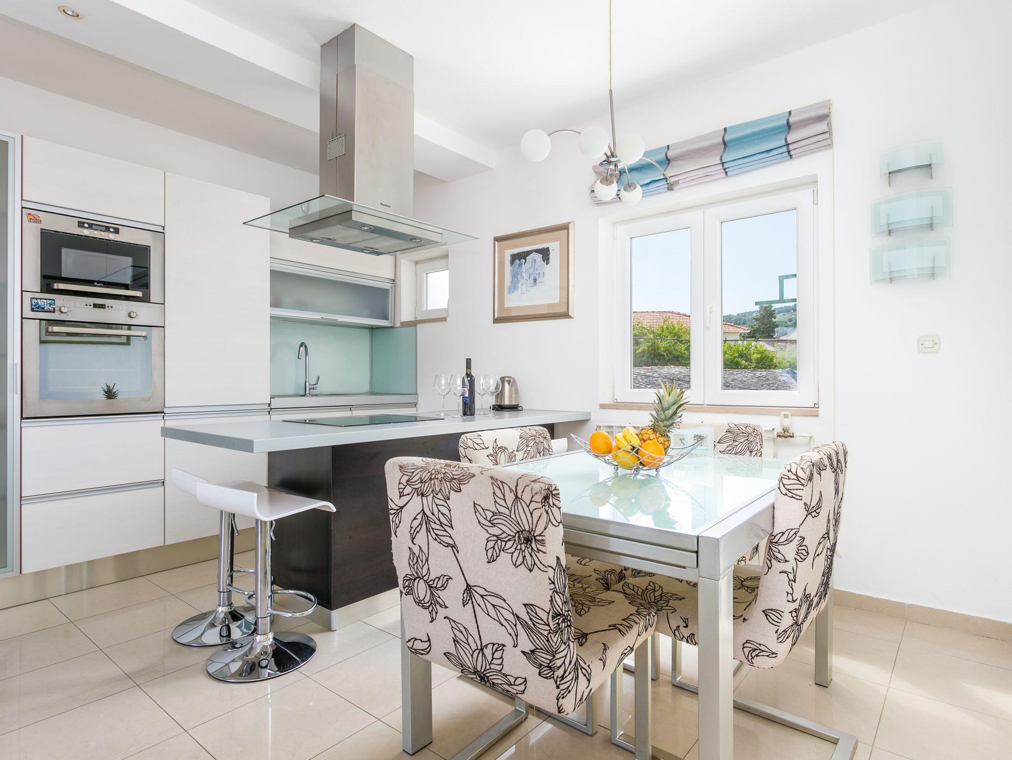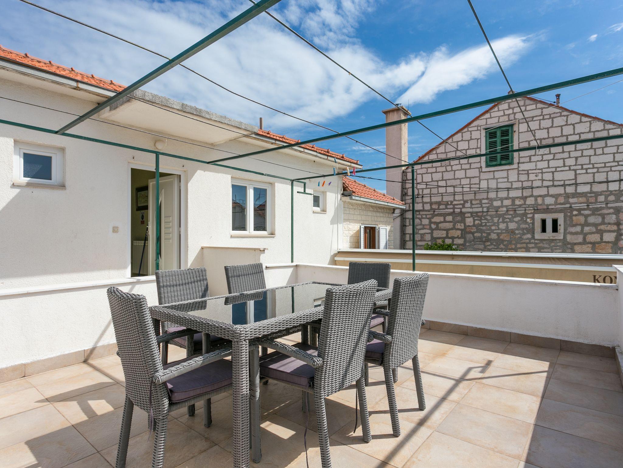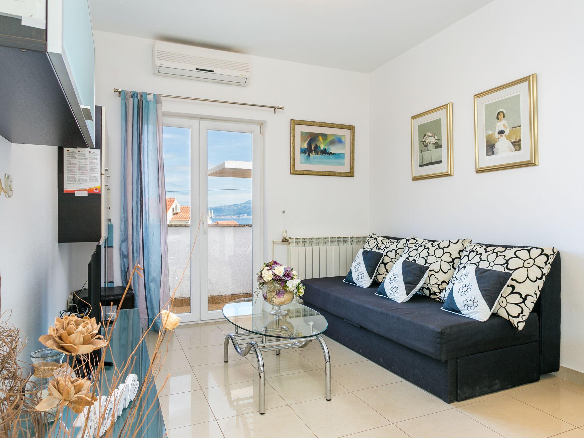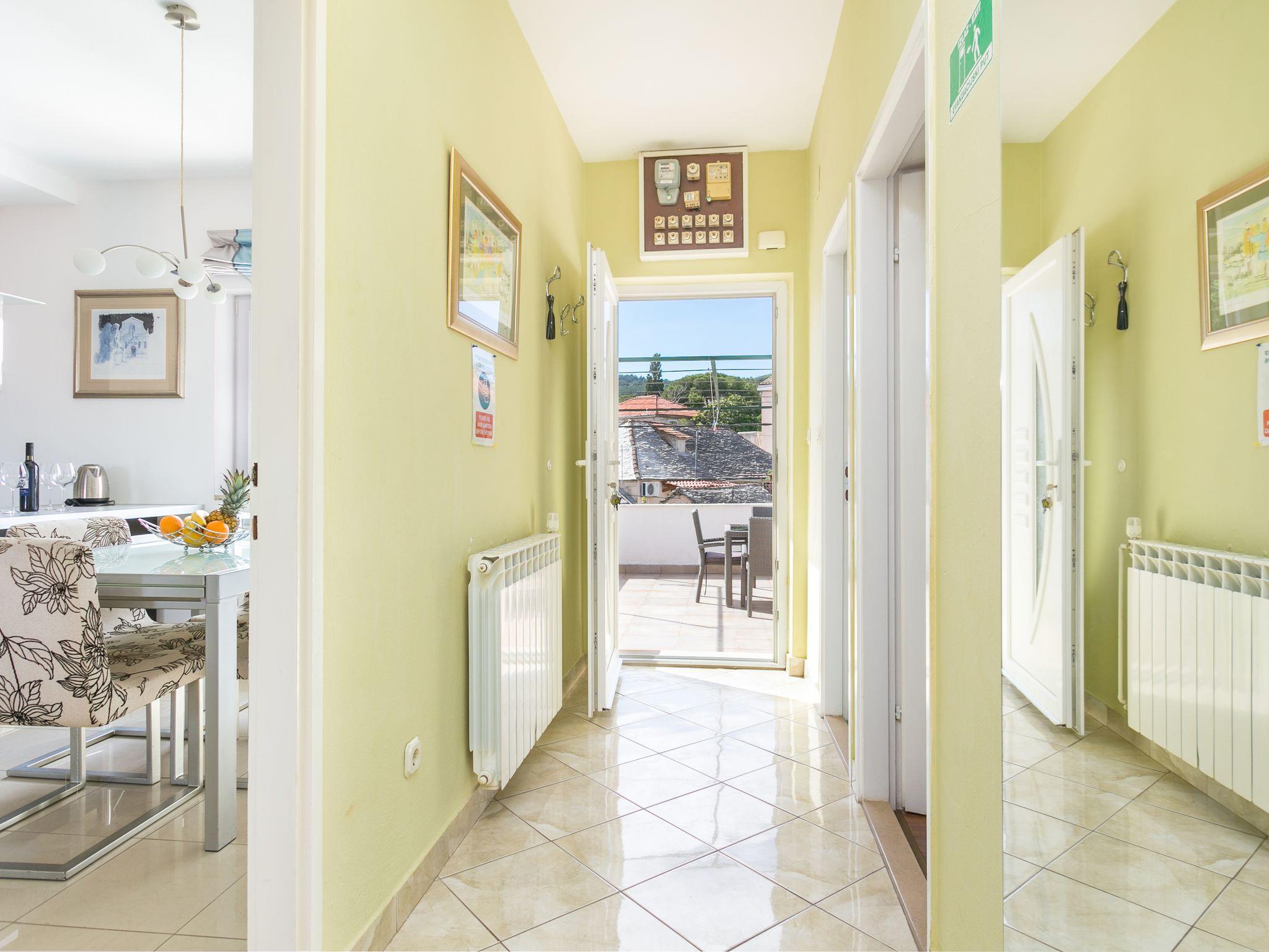 Ferienwohnung bietet Platz für 6 Gäste. Die Betten sind in Schlafzimmern, die es 3 gibt, und in Wohnzimmer, innerhalb einer Gesamtfläche von 74m2, angeordnet. Die Gäste haben eine eigene Terrasse zur Verfügung, auf der sie in warmen Sommernächten genießen können. Das Apartment bietet Meerblick. Es ist erlaubt, Speisen auf dem Gemeinschafts-Grill vorzubereiten. IM PREIS INBEGRIFFEN: Kurtaxe, Endreinigung, Klimatisierung, Parkplatz, Internet, Kinderbett, Bügeleisen, Bügelbrett, Föhn, tragbarer Grill. VERBINDLICHE ZUSÄTZLICHE KOSTEN: Aufzahlung für Kurzaufenthalte (prozentualer Zuschlag pro Nächtigungsanzahl: 30% - 1, 20% - 2, 10% - 3). Die Verfügbarkeit zusätzlicher Dienstleistungen in Ihrem reservierten Termin und die Preise derselben (falls nicht aufgeführt) müssen im Voraus überprüft werden. Zusätzliche Dienstleistungen die in der Zahlungsaufforderung nicht aufgeführt sind werden direkt beim Vermieter bezahlt, angenommen der Gast nutzt auch diese.
