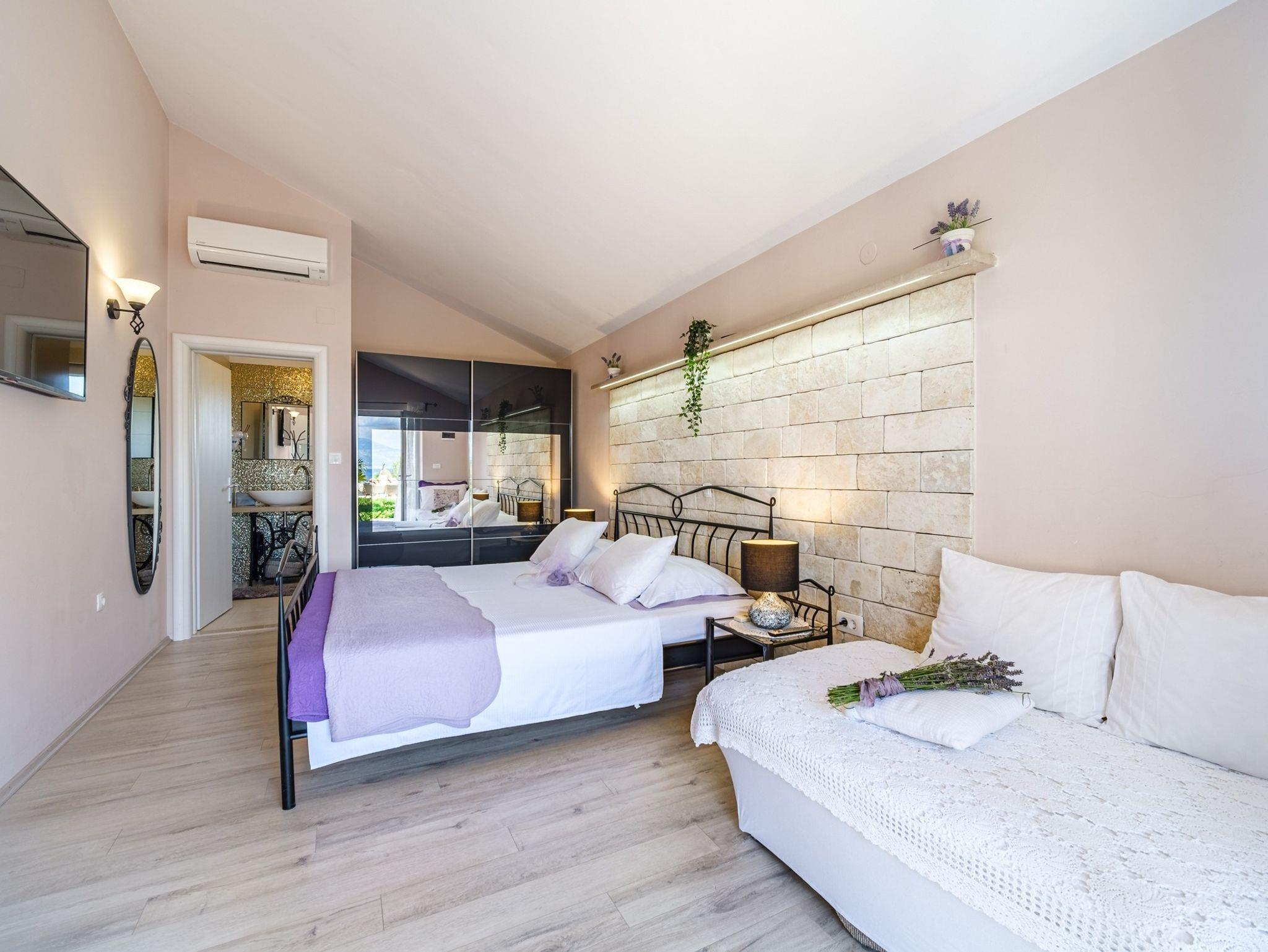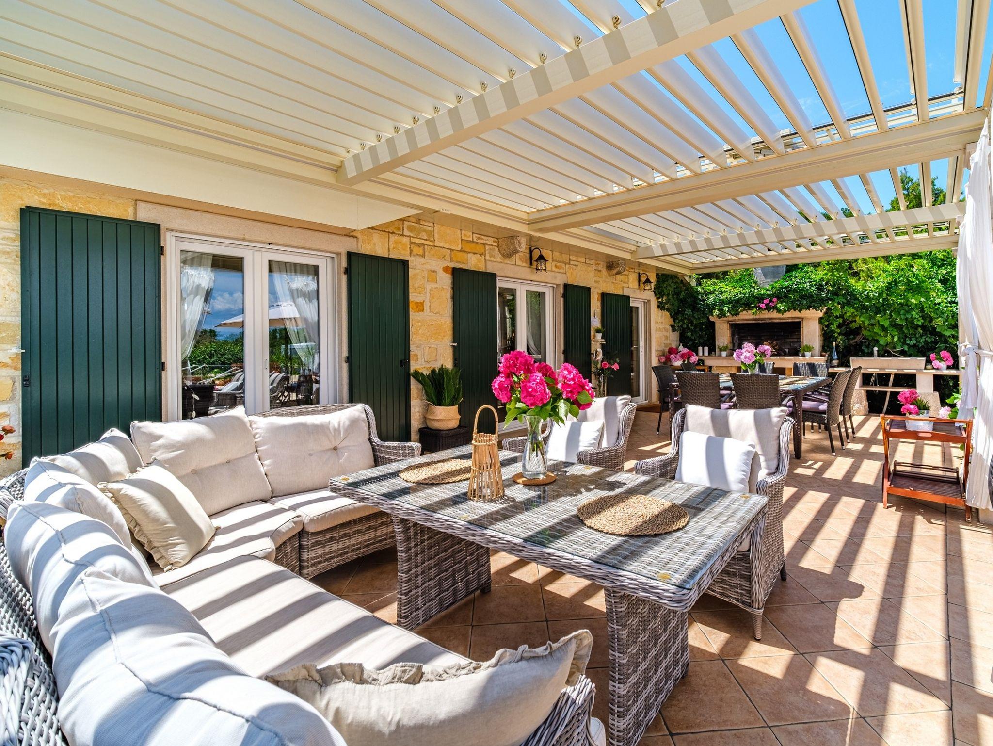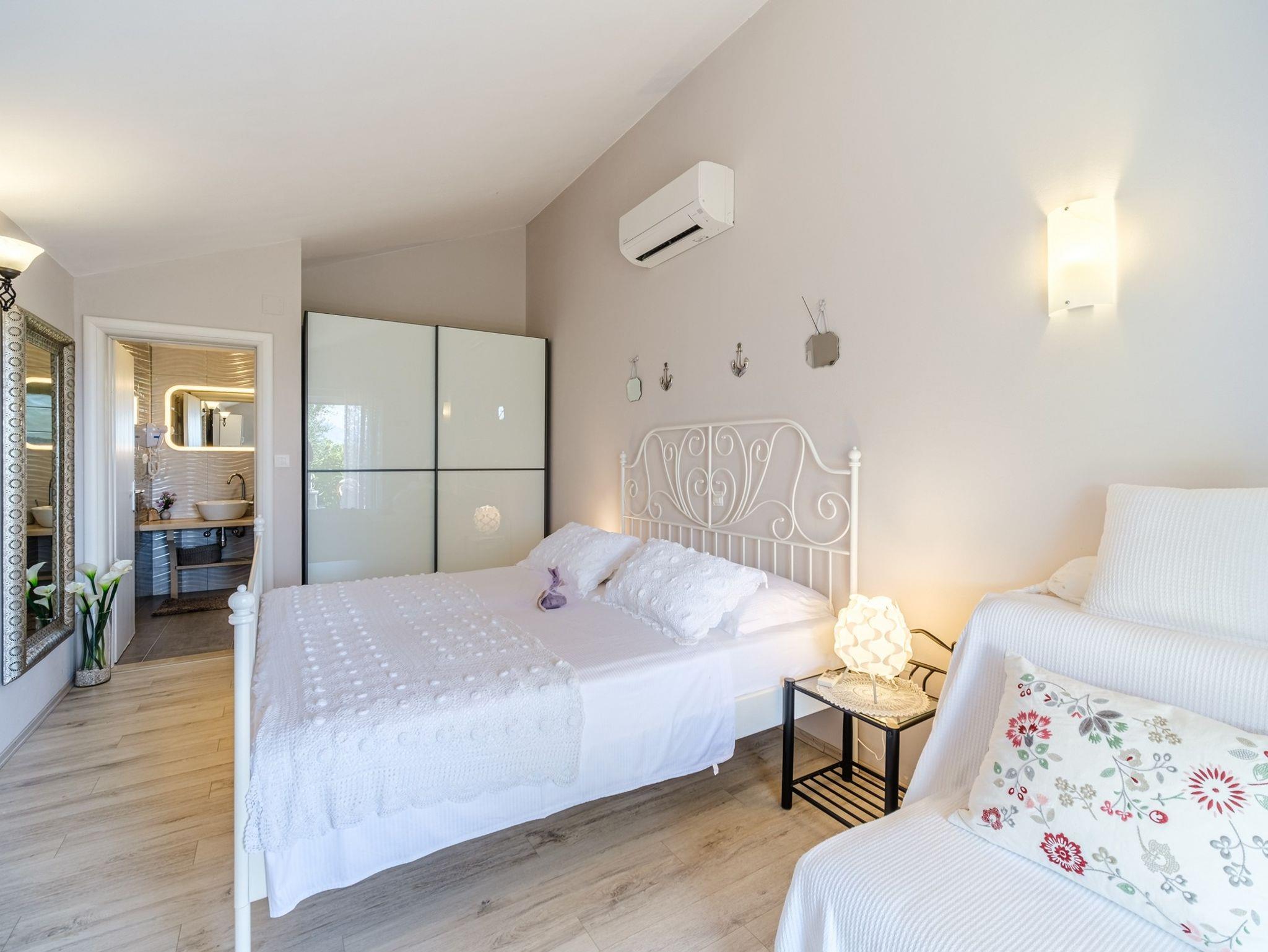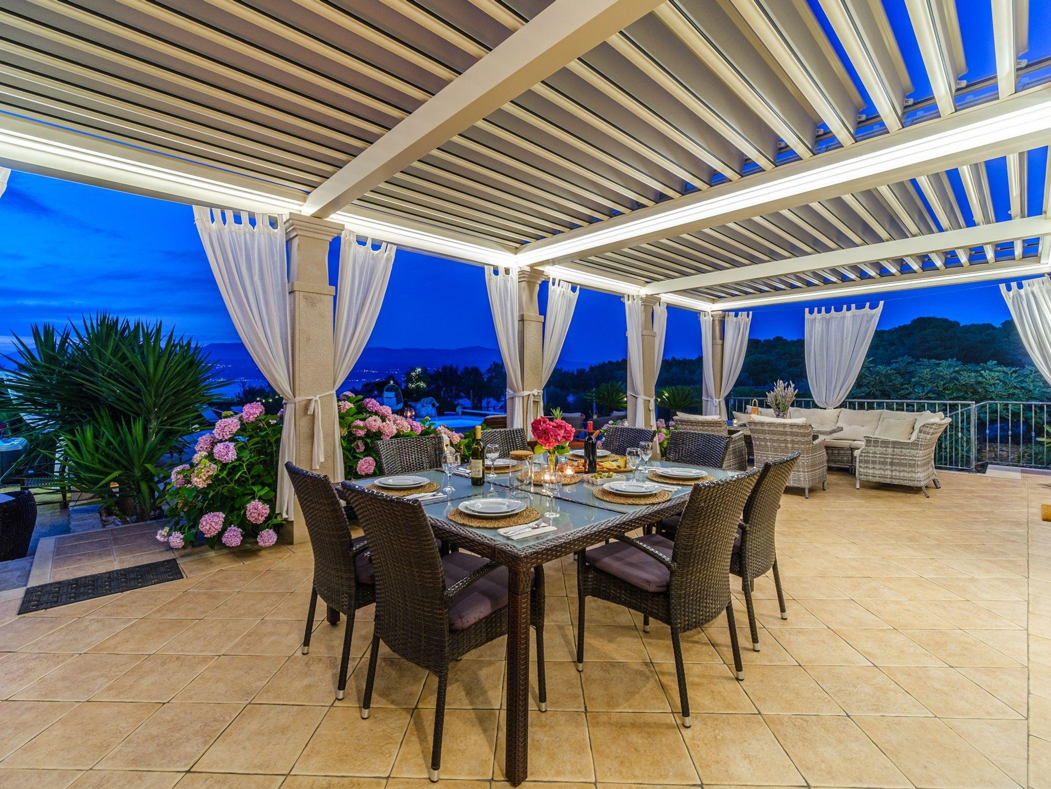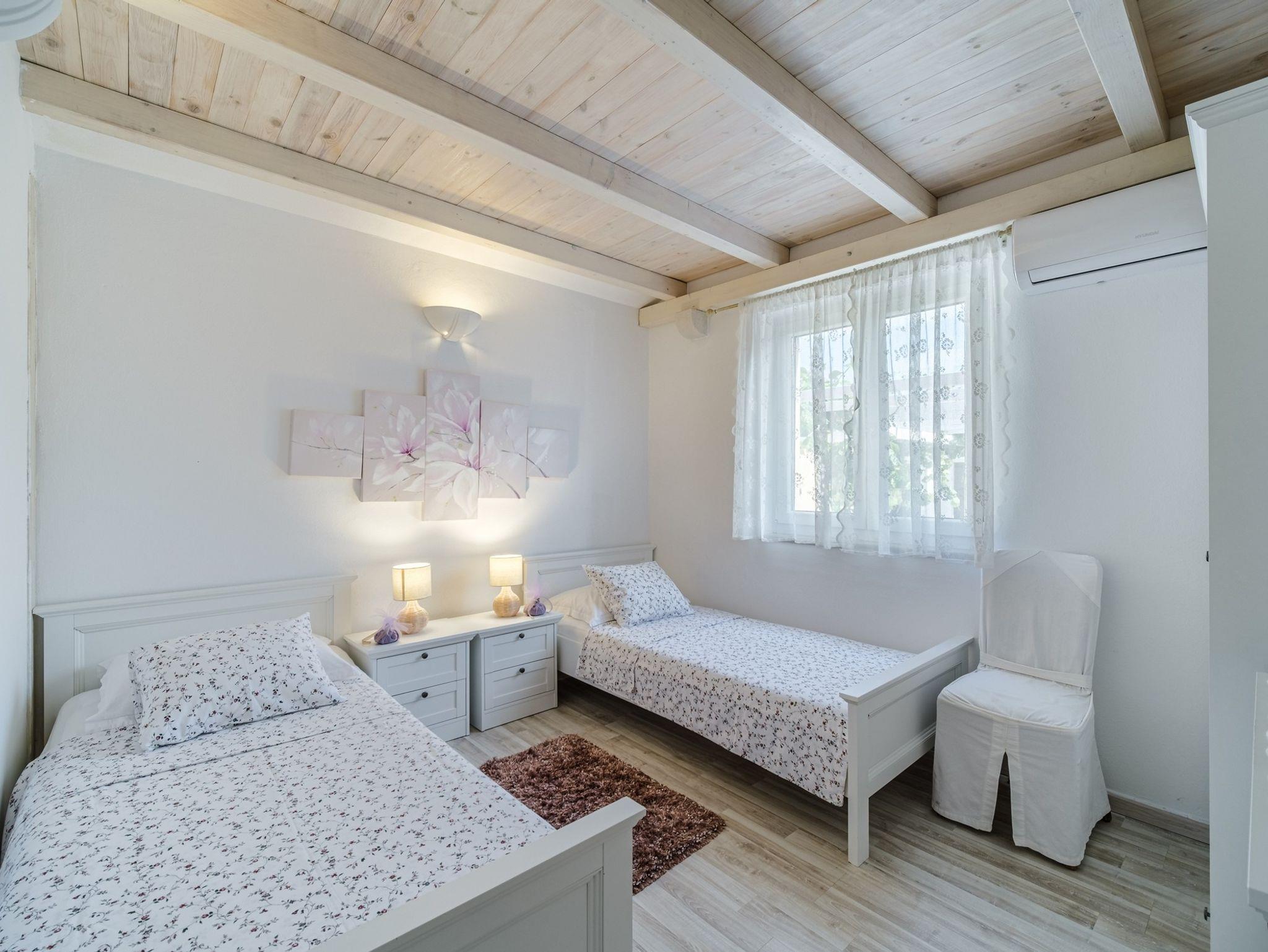 Haus bietet Platz für 10 Gäste. Die Betten sind in Schlafzimmern, die es 4 gibt, innerhalb einer Gesamtfläche von 137m2, angeordnet. Die Gäste haben eine eigene Terrasse zur Verfügung, auf der sie in warmen Sommernächten genießen können. Das Haus bietet Meerblick. Für vollen Genuss und Entspannung gibt es einen privaten Grill für Gäste dieser Unterkunft. Während ihres Aufenthalts können sich Gäste im privaten Schwimmbad entspannen. Räume der gebuchten Unterkunftseinheit werden nicht in eine Ganze verbunden. IM PREIS INBEGRIFFEN: Kurtaxe, Endreinigung, Klimatisierung, Pool, Parkplatz, Internet, Fahrrad, Kinderbett, Bügeleisen, Bügelbrett, Föhn. Die Verfügbarkeit zusätzlicher Dienstleistungen in Ihrem reservierten Termin und die Preise derselben (falls nicht aufgeführt) müssen im Voraus überprüft werden. Zusätzliche Dienstleistungen die in der Zahlungsaufforderung nicht aufgeführt sind werden direkt beim Vermieter bezahlt, angenommen der Gast nutzt auch diese. Ermäßigung auf den Grundpreis: Gratistag 14=13 (bei einem Aufenthalt von 14 Tagen oder mehr erhalten Sie einen Gratistag für den Aufenthalt bis 31.12.26).