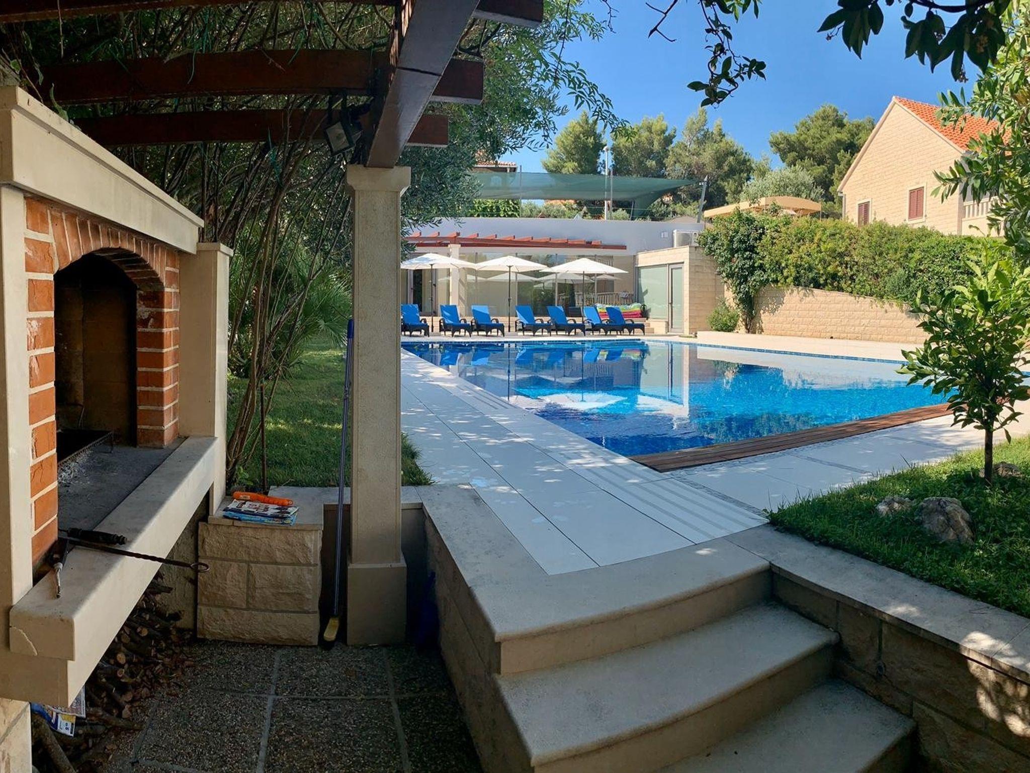 Umgebung des Objekts (Eingerichtet), Hof (600m2, Kinderbereich, Sitzbereich), Parkplatz (Anzahl der Parkplätze: 7, Entfernung vom Objekt: im Hof), Pool: gemeinsam, Dimensionen: 12m x 7m x 1.5m, Wassertyp: Süßwasser, Heizung: Ja, Grill: gemeinsam, WiFi Internet, Föhn, Bügeleisen, Bügelbrett, Kinderbett