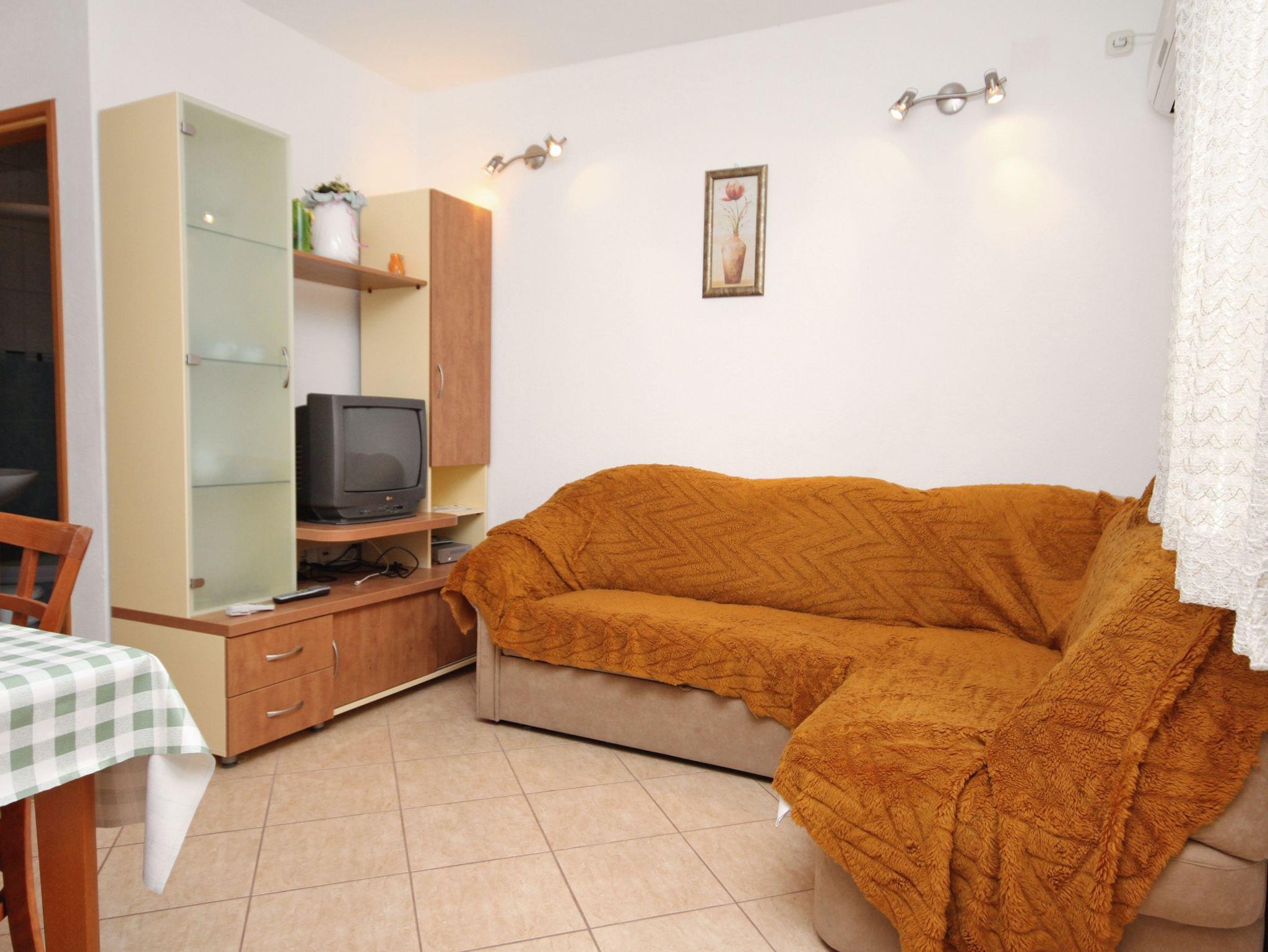 Ferienwohnung bietet Platz für 3 Gäste. Die Betten sind in Schlafzimmern, die es 1 gibt, und in Wohnzimmer, innerhalb einer Gesamtfläche von 31m2, angeordnet. Die Gäste haben eine eigene Terrasse zur Verfügung, auf der sie in warmen Sommernächten genießen können. Es ist erlaubt, Speisen auf dem Gemeinschafts-Grill vorzubereiten. Unterkunftseinheit hat Räume, die von dem Rest der Einheit abgetrennt werden. IM PREIS INBEGRIFFEN: Kurtaxe, Endreinigung, Klimatisierung, Parkplatz, Internet, Wäschewaschen, Bügeleisen, Föhn. VERBINDLICHE ZUSÄTZLICHE KOSTEN: Aufzahlung für Kurzaufenthalte (prozentualer Zuschlag pro Nächtigungsanzahl: 30% - 1, 20% - 2, 10% - 3). Die Verfügbarkeit zusätzlicher Dienstleistungen in Ihrem reservierten Termin und die Preise derselben (falls nicht aufgeführt) müssen im Voraus überprüft werden. Zusätzliche Dienstleistungen die in der Zahlungsaufforderung nicht aufgeführt sind werden direkt beim Vermieter bezahlt, angenommen der Gast nutzt auch diese.
