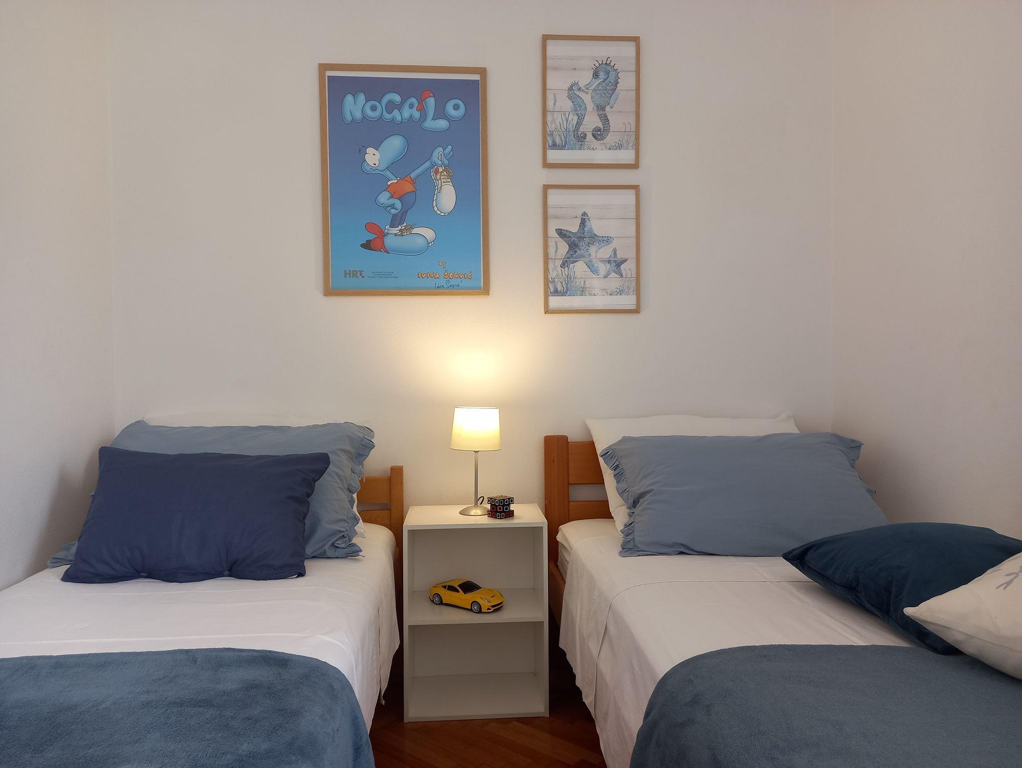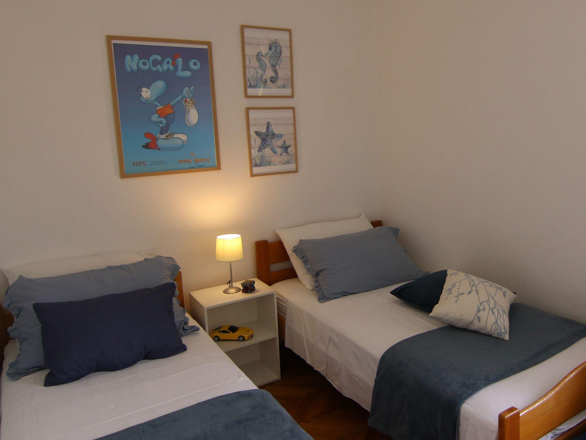 Ferienwohnung bietet Platz für 5 Gäste. Die Betten sind in Schlafzimmern, die es 2 gibt, und in Wohnzimmer, innerhalb einer Gesamtfläche von 46m2, angeordnet. Es ist erlaubt, Speisen auf dem Gemeinschafts-Grill vorzubereiten. Die reservierte Unterkunftseinheit verfügt über einen gemeinsame Terrasse. IM PREIS INBEGRIFFEN: Kurtaxe, Endreinigung, Klimatisierung, Parkplatz, Internet, Kinderbett, Bügeleisen, Bügelbrett, Föhn. VERBINDLICHE ZUSÄTZLICHE KOSTEN: Aufzahlung für Kurzaufenthalte (prozentualer Zuschlag pro Nächtigungsanzahl: 30% - 1, 20% - 2, 10% - 3). UNVERBINDLICHE ZUSÄTZLICHE KOSTEN: Zusatzbett (5,00 € pro Nacht). Die Verfügbarkeit zusätzlicher Dienstleistungen in Ihrem reservierten Termin und die Preise derselben (falls nicht aufgeführt) müssen im Voraus überprüft werden. Zusätzliche Dienstleistungen die in der Zahlungsaufforderung nicht aufgeführt sind werden direkt beim Vermieter bezahlt, angenommen der Gast nutzt auch diese. Ermäßigung auf den Grundpreis: Gratistag 14=13 (bei einem Aufenthalt von 14 Tagen oder mehr erhalten Sie einen Gratistag für den Aufenthalt bis 31.12.26).