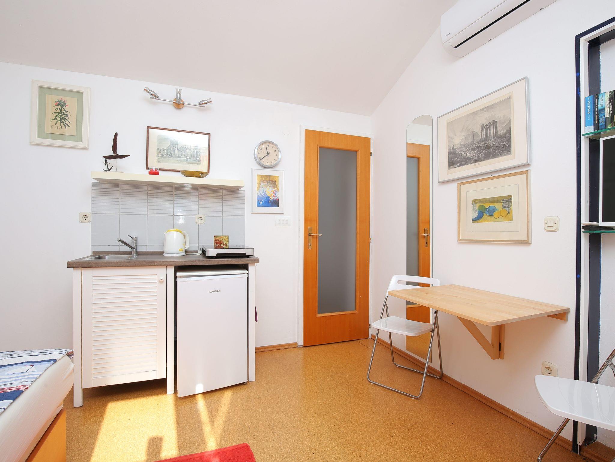 Studio bietet Platz für 2 Gäste. Die Betten sind in Schlafzimmern, die es 1 gibt, innerhalb einer Gesamtfläche von 16m2, angeordnet. Die Gäste haben eine eigene Terrasse zur Verfügung, auf der sie in warmen Sommernächten genießen können. Es ist erlaubt, Speisen auf dem Gemeinschafts-Grill vorzubereiten. IM PREIS INBEGRIFFEN: Kurtaxe, Endreinigung, Klimatisierung, Parkplatz, Internet, Föhn, tragbarer Grill. VERBINDLICHE ZUSÄTZLICHE KOSTEN: Aufzahlung für Kurzaufenthalte (prozentualer Zuschlag pro Nächtigungsanzahl: 30% - 1, 20% - 2, 10% - 3). Die Verfügbarkeit zusätzlicher Dienstleistungen in Ihrem reservierten Termin und die Preise derselben (falls nicht aufgeführt) müssen im Voraus überprüft werden. Zusätzliche Dienstleistungen die in der Zahlungsaufforderung nicht aufgeführt sind werden direkt beim Vermieter bezahlt, angenommen der Gast nutzt auch diese. Ermäßigung auf den Grundpreis: Gratistag 14=13 (bei einem Aufenthalt von 14 Tagen oder mehr erhalten Sie einen Gratistag für den Aufenthalt bis 31.12.26).