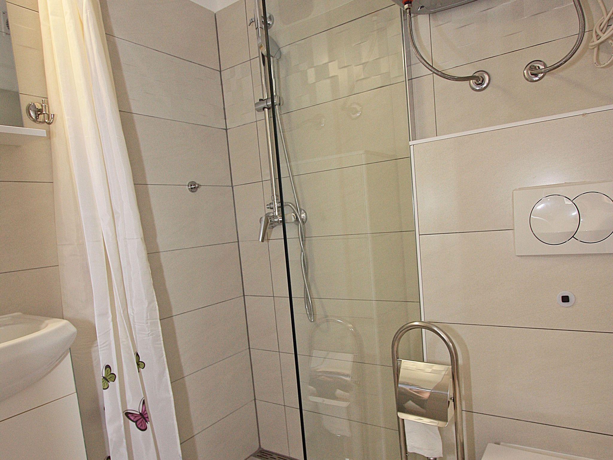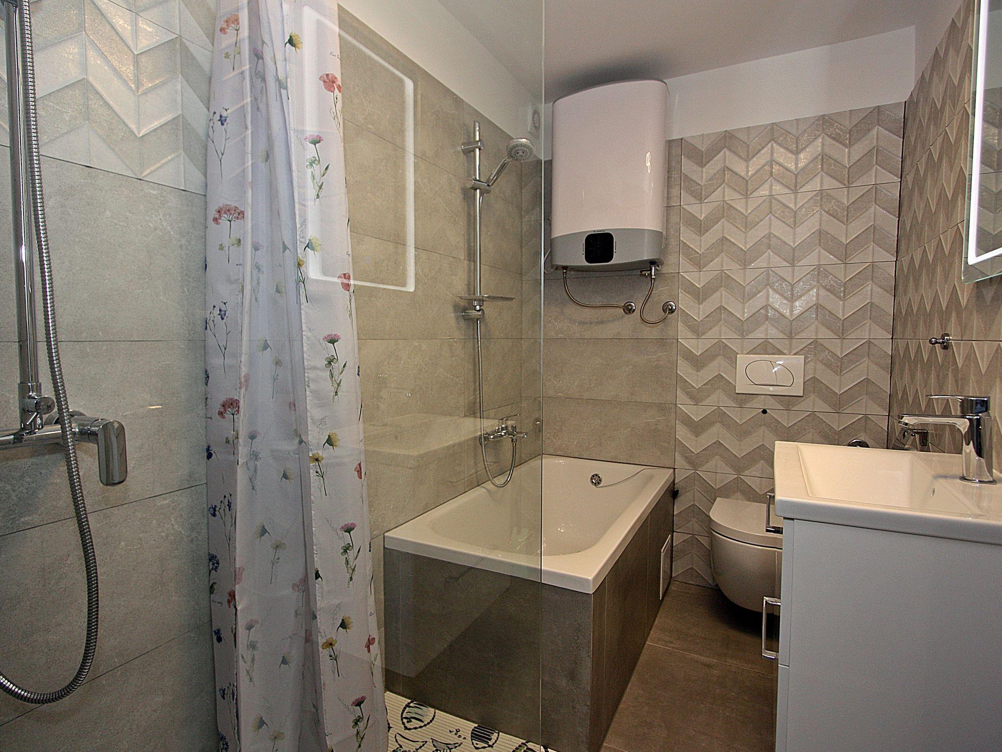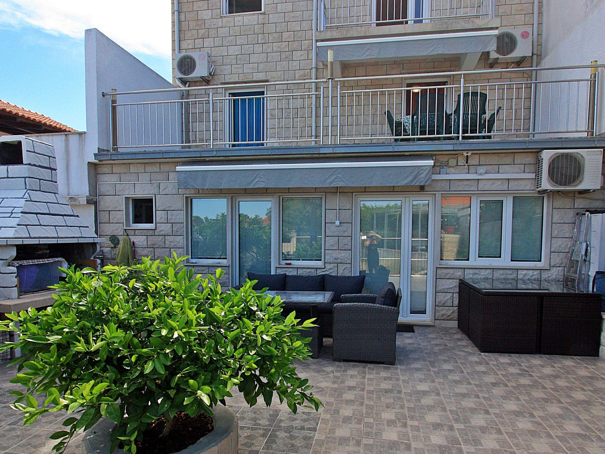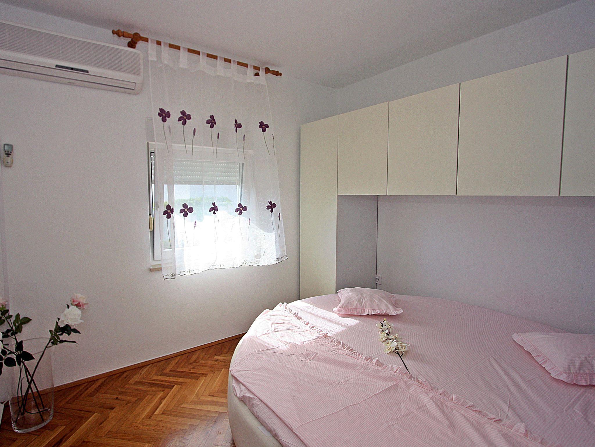 Ferienwohnung bietet Platz für 6 Gäste. Die Betten sind in Schlafzimmern, die es 3 gibt, innerhalb einer Gesamtfläche von 65m2, angeordnet. Die Gäste haben eine eigene Terrasse zur Verfügung, auf der sie in warmen Sommernächten genießen können. Das Apartment bietet Meerblick. Es ist erlaubt, Speisen auf dem Gemeinschafts-Grill vorzubereiten. IM PREIS INBEGRIFFEN: Kurtaxe, Endreinigung, Klimatisierung, Internet, Bügeleisen, Bügelbrett, Föhn, tragbarer Grill. VERBINDLICHE ZUSÄTZLICHE KOSTEN: Aufzahlung für Kurzaufenthalte (prozentualer Zuschlag pro Nächtigungsanzahl: 30% - 1, 20% - 2, 10% - 3). UNVERBINDLICHE ZUSÄTZLICHE KOSTEN: Wäschewaschen (5,00 € Waschen). Die Verfügbarkeit zusätzlicher Dienstleistungen in Ihrem reservierten Termin und die Preise derselben (falls nicht aufgeführt) müssen im Voraus überprüft werden. Zusätzliche Dienstleistungen die in der Zahlungsaufforderung nicht aufgeführt sind werden direkt beim Vermieter bezahlt, angenommen der Gast nutzt auch diese. Ermäßigung auf den Grundpreis: Gratistag 14=13 (bei einem Aufenthalt von 14 Tagen oder mehr erhalten Sie einen Gratistag für den Aufenthalt bis 31.12.26).