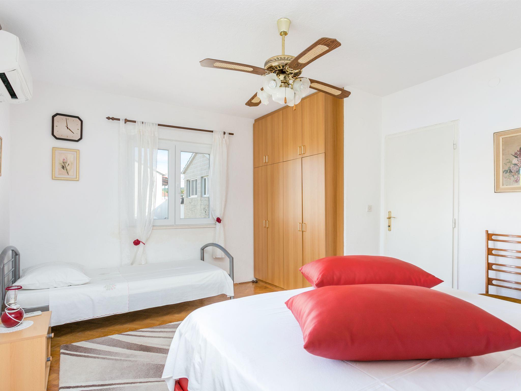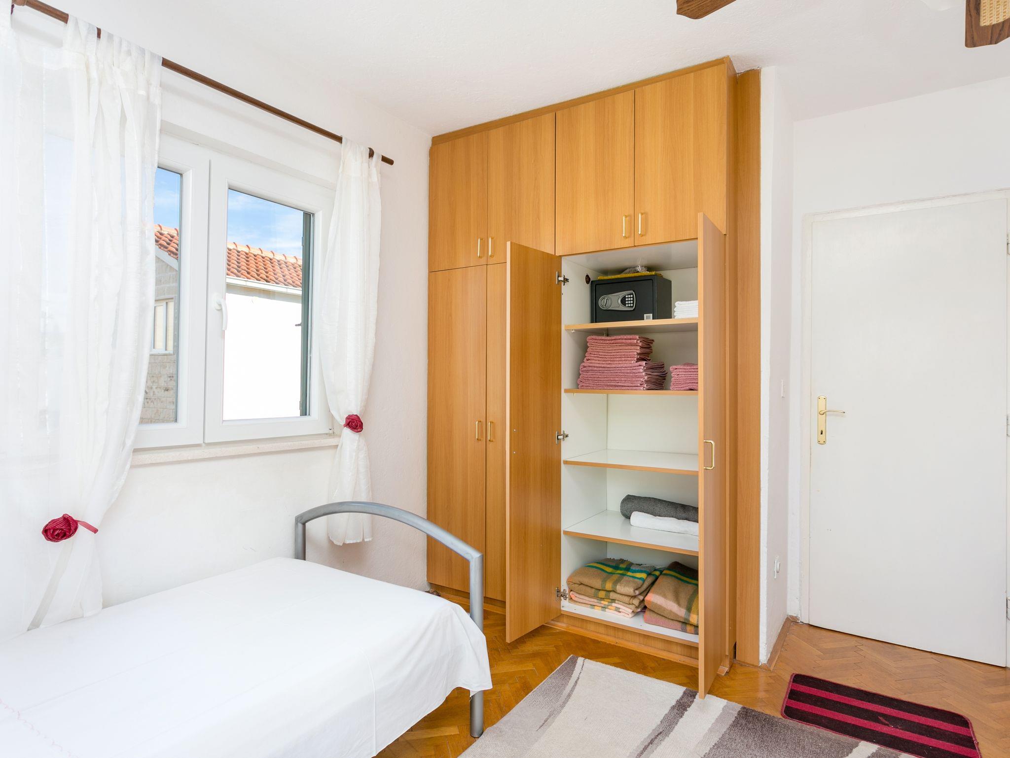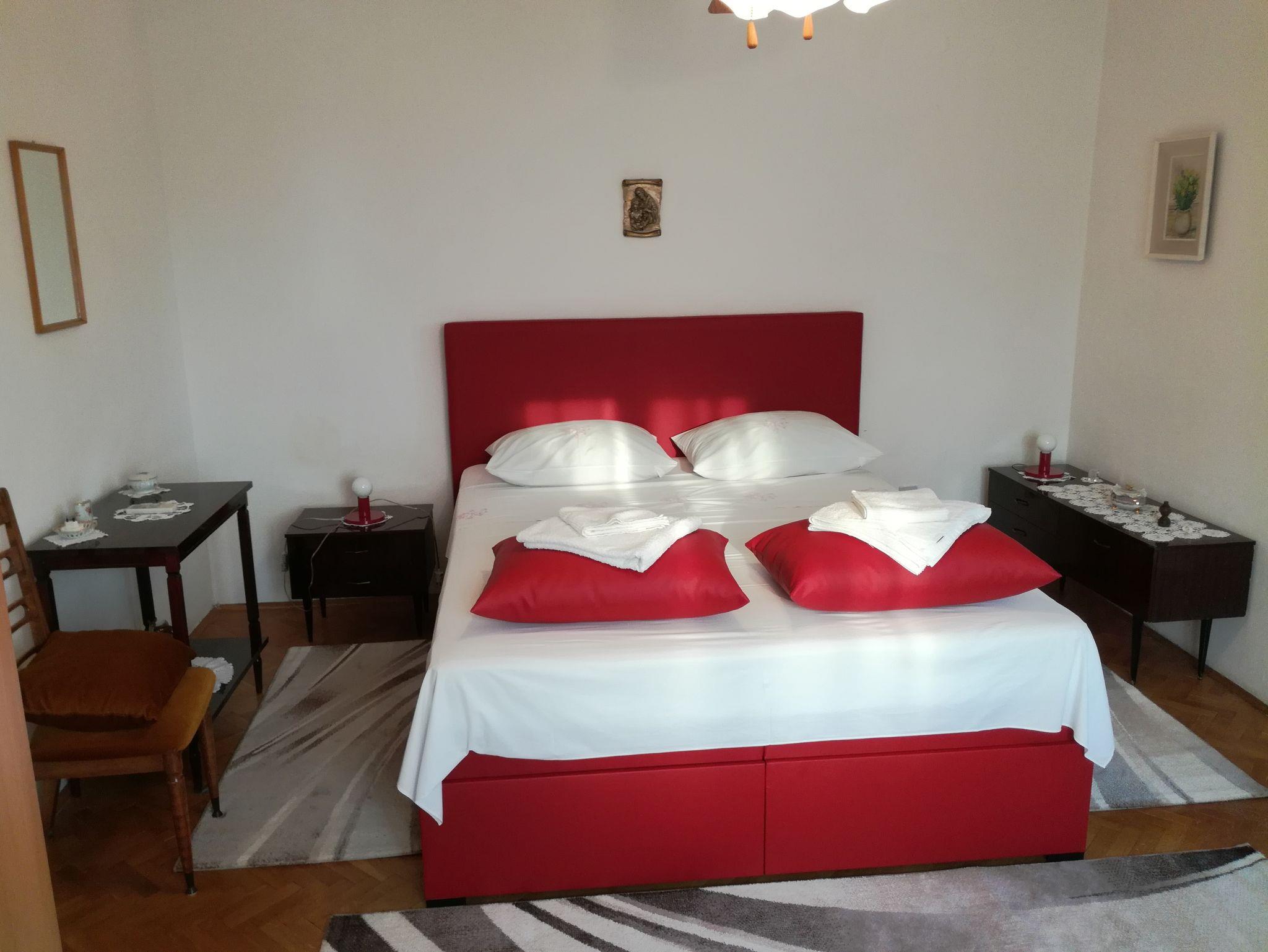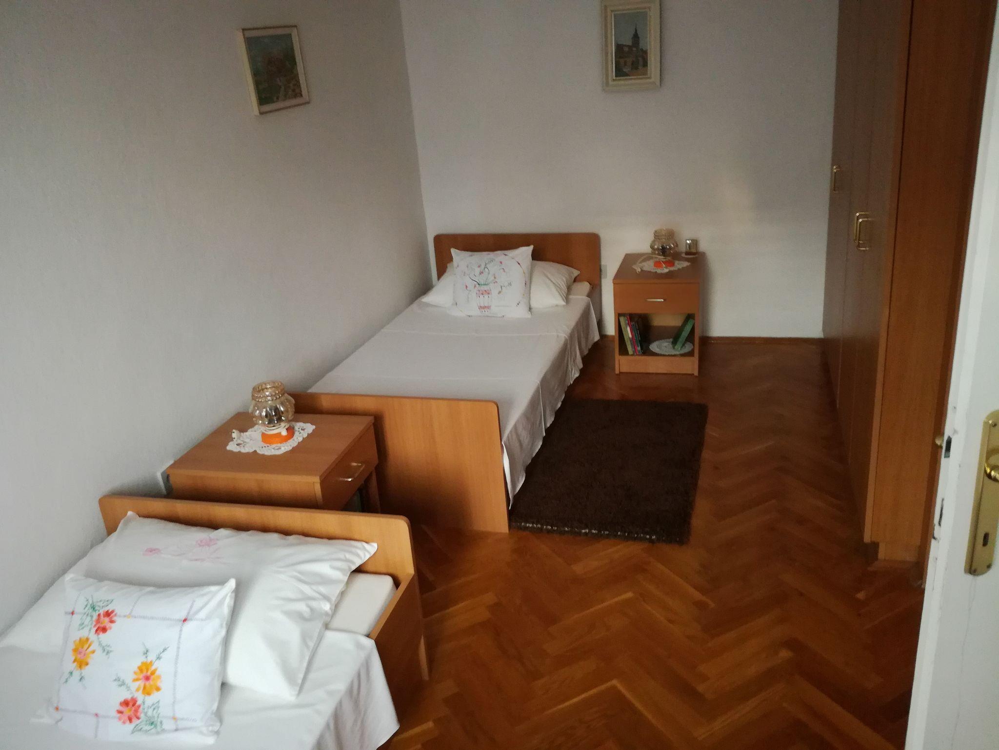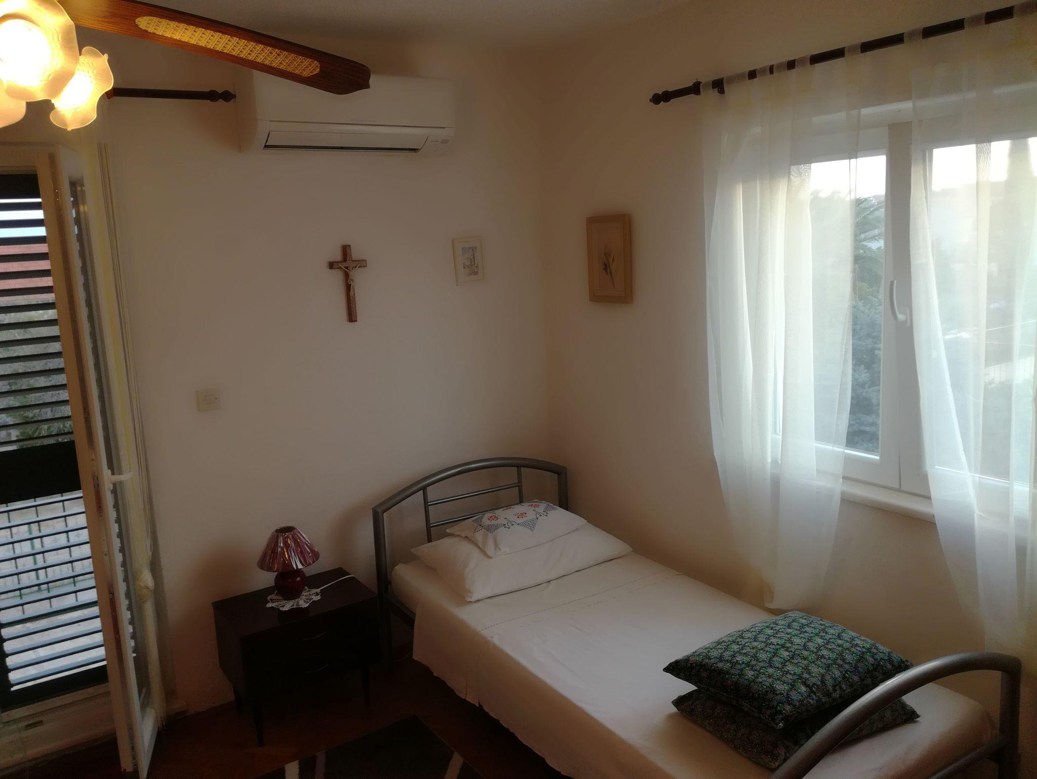 Ferienwohnung bietet Platz für 6 Gäste. Die Betten sind in Schlafzimmern, die es 2 gibt, und in Wohnzimmer, innerhalb einer Gesamtfläche von 76m2, angeordnet. Die Gäste haben eine eigene Terrasse zur Verfügung, auf der sie in warmen Sommernächten genießen können. Das Apartment bietet Meerblick. Es ist erlaubt, Speisen auf dem Gemeinschafts-Grill vorzubereiten. IM PREIS INBEGRIFFEN: Kurtaxe, Endreinigung, Parkplatz, Internet, Bügeleisen, Bügelbrett, Föhn, tragbarer Grill. VERBINDLICHE ZUSÄTZLICHE KOSTEN: Aufzahlung für Kurzaufenthalte (prozentualer Zuschlag pro Nächtigungsanzahl: 30% - 1, 20% - 2, 10% - 3). UNVERBINDLICHE ZUSÄTZLICHE KOSTEN: Klimatisierung (4,00 € pro Nacht). Die Verfügbarkeit zusätzlicher Dienstleistungen in Ihrem reservierten Termin und die Preise derselben (falls nicht aufgeführt) müssen im Voraus überprüft werden. Zusätzliche Dienstleistungen die in der Zahlungsaufforderung nicht aufgeführt sind werden direkt beim Vermieter bezahlt, angenommen der Gast nutzt auch diese. Ermäßigung auf den Grundpreis: Gratistag 28=25 (bei einem Aufenthalt von 28 oder mehr Tagen erhalten Sie 3 kostenlose Tage für den Aufenthalt bis 31.12.26).