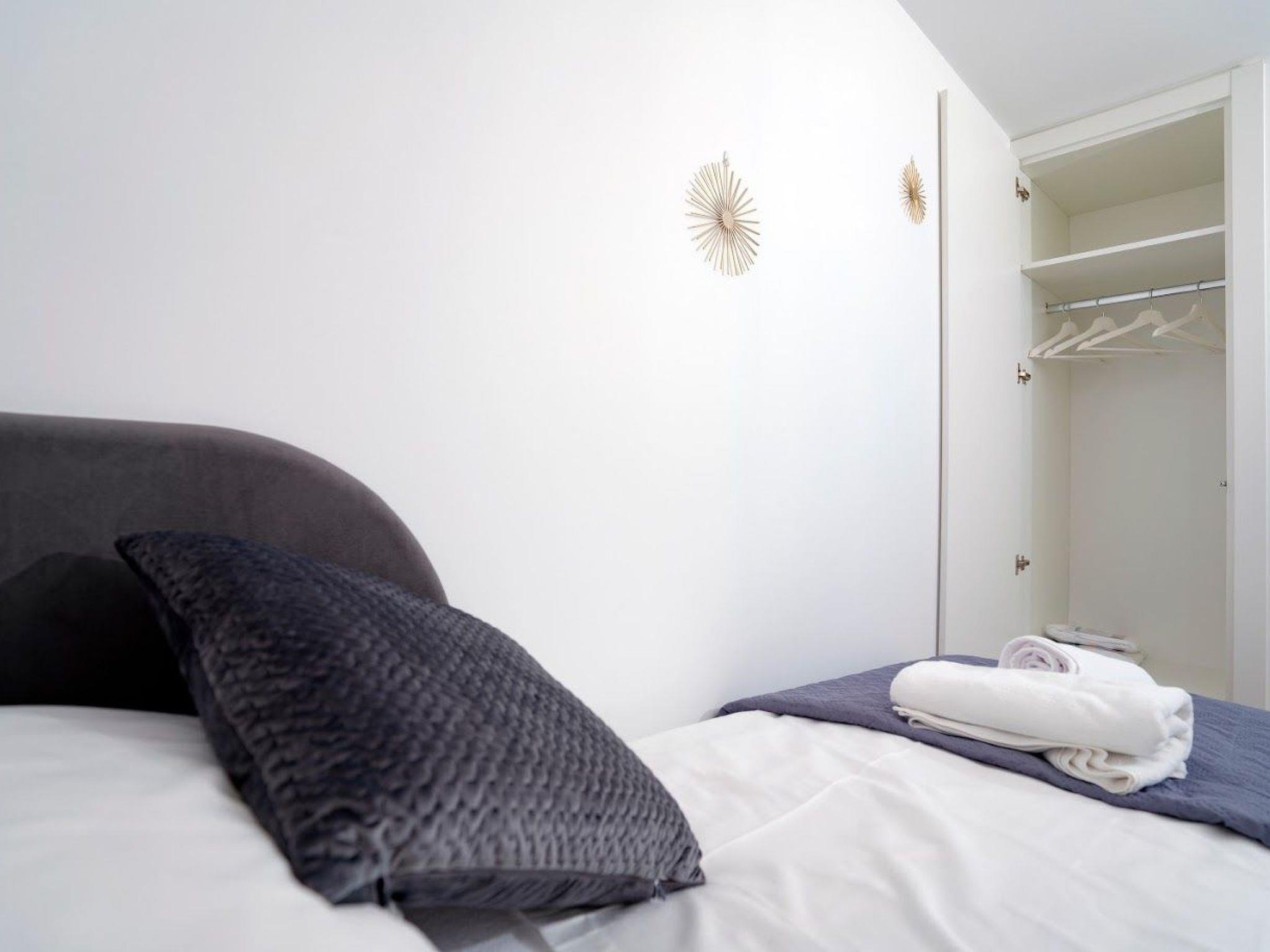On entering the mobile home, you'll find it well-appointed with all the amenities needed for a relaxing stay. The interior boasts two cozy bedrooms - one with a comfortable double bed measuring 160x200 and the other with two single beds of 90x200, making it suitable for families or a group of friends. Each bedroom is complemented by its own bathroom, equipped with a shower, ensuring privacy and convenience for all guests. The living/dining area features a sofa that doubles as an additional bed for two, perfect for lounging during the day or accommodating extra guests at night. The kitchen is fully equipped with a dishwasher, electric stove, fridge, and freezer compartment, catering to all your culinary needs. For entertainment and comfort, the mobile home offers a TV, Wi-Fi, and air conditioning throughout, ensuring a pleasant living environment regardless of the weather outside.