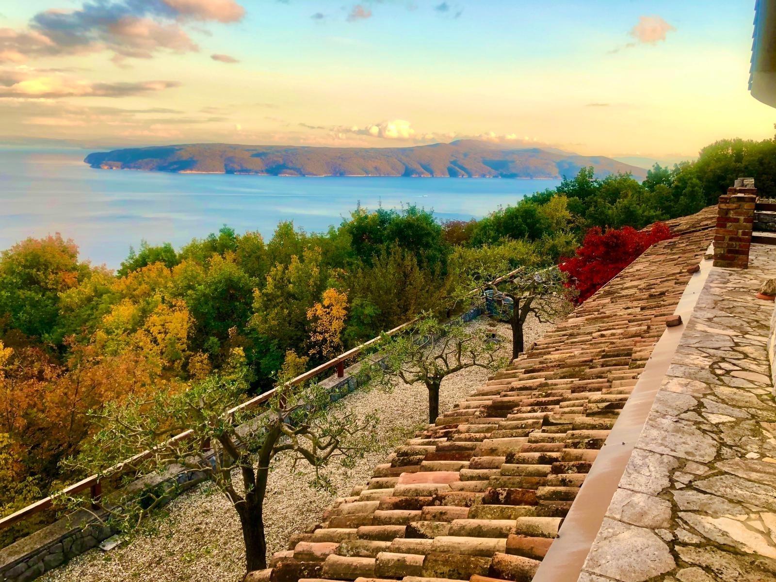 Ca. 10 Autominuten vom Strand entfernt, direkt am Fuß des Wander- & Fahrradparadieses Ucka, liegt eine der schönsten Villen der Riviera von Opatija! Komplett aus Stein erbaut verbindet sich ihr ganz besonderer, traditioneller Charme mit einer zum Meer hin offenen Architektur aus Glas und bietet einen atemberaubenden Rundumblick auf die Kvarner Bucht!